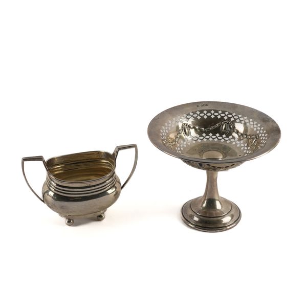 A SILVER PEDESTAL BONBON DISH AND SILVER TWIN HANDLED SUGAR BOWL (2)