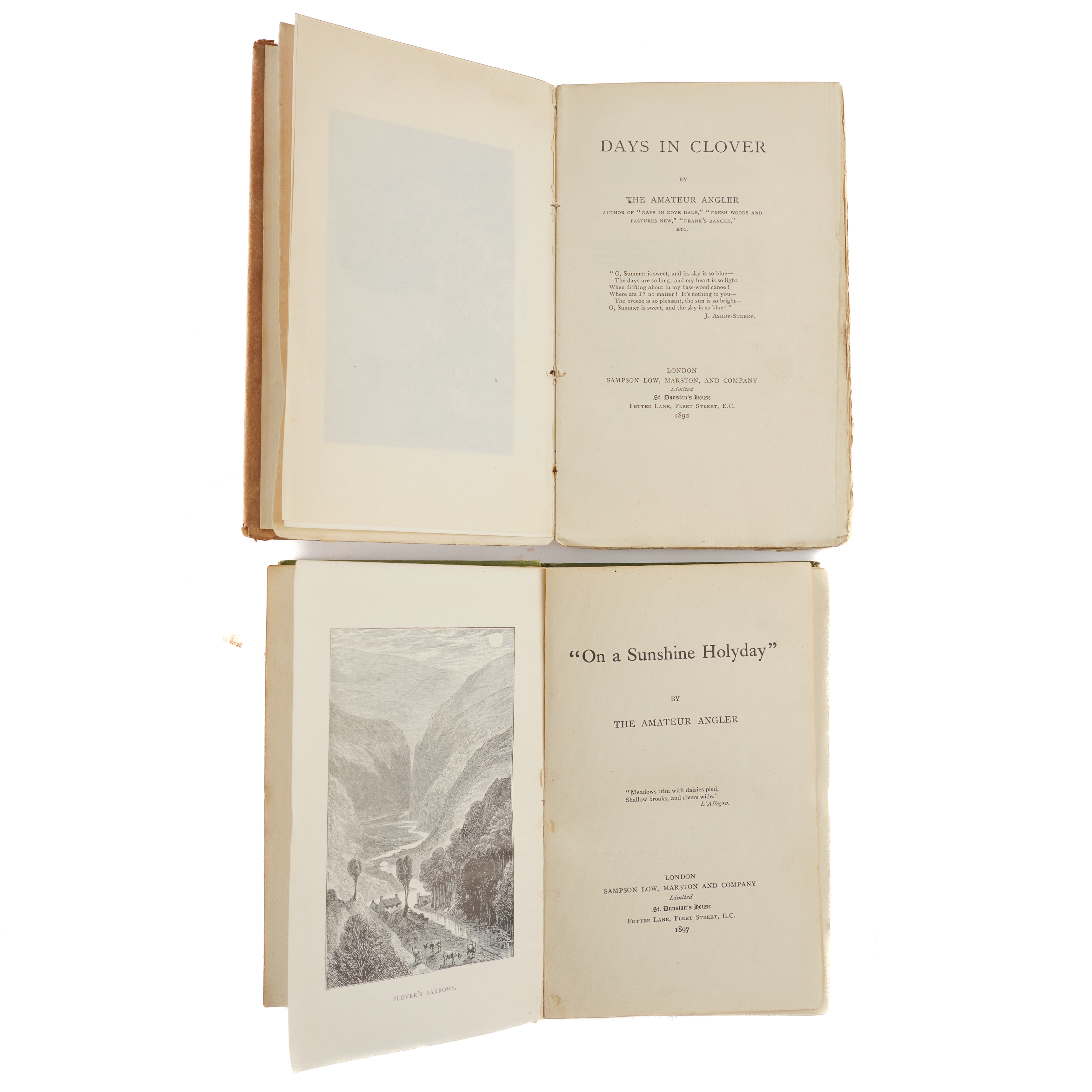 ANGLING - [Edward MARSTON (1825-1914)]. Days in Clover by the Amateur Angler, London, 1892, 8vo, 7 plates, wrappers. FIRST EDITION. NUMBER 71 OF 250 COPIES. RARE. With another. (2) As with all the lots in this sale, please see the full description below.