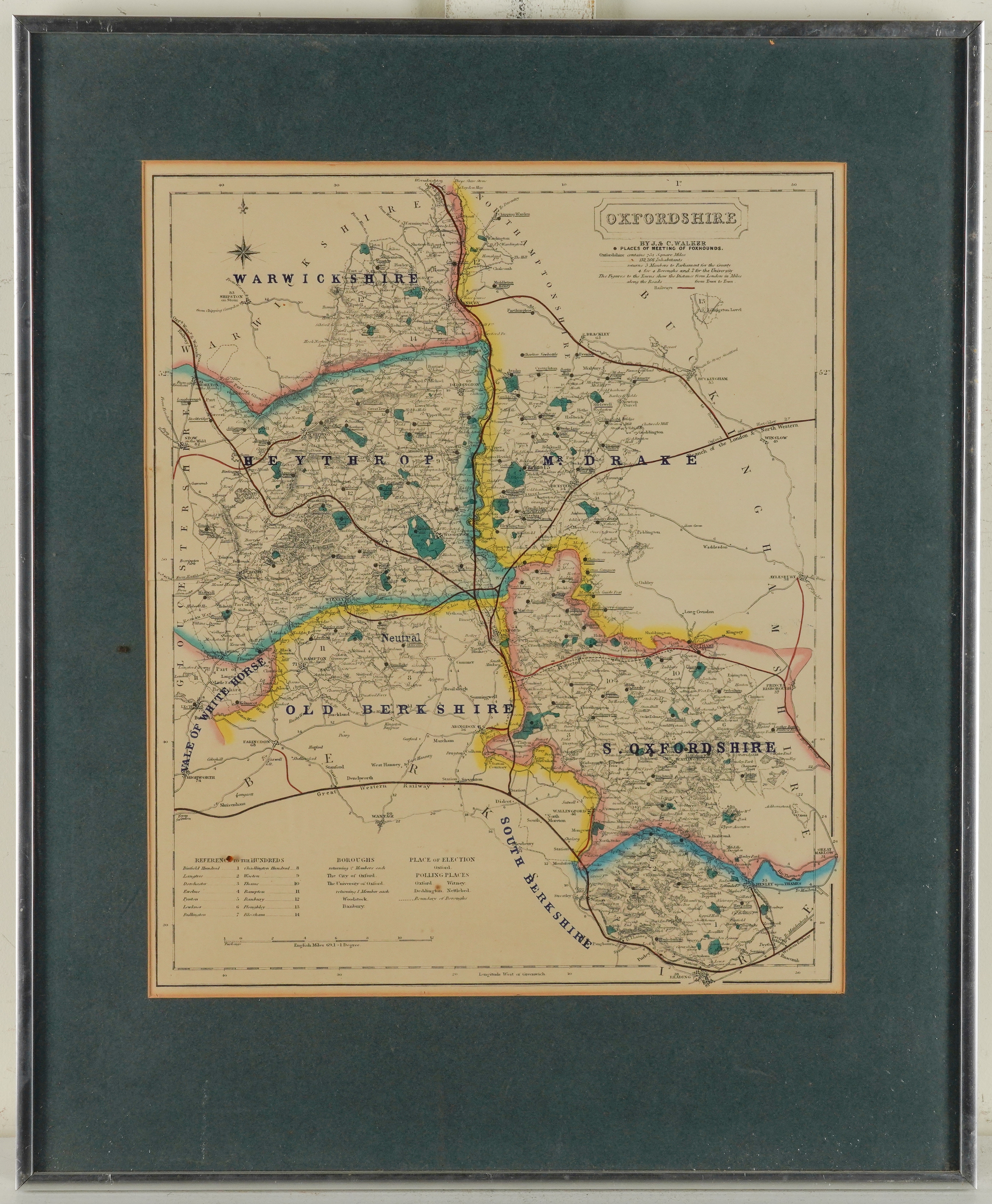 DRAYTON, Michael (1563-1631) & William HOLE (d.1624, engraver). Glocester Shyre ... Worcester Shyre. [London: c.1612]. Engraved map including Gloucestershire and Worcestershire, allegorical figures, 250 x 330mm., framed and glazed. With 3 other maps. (4)