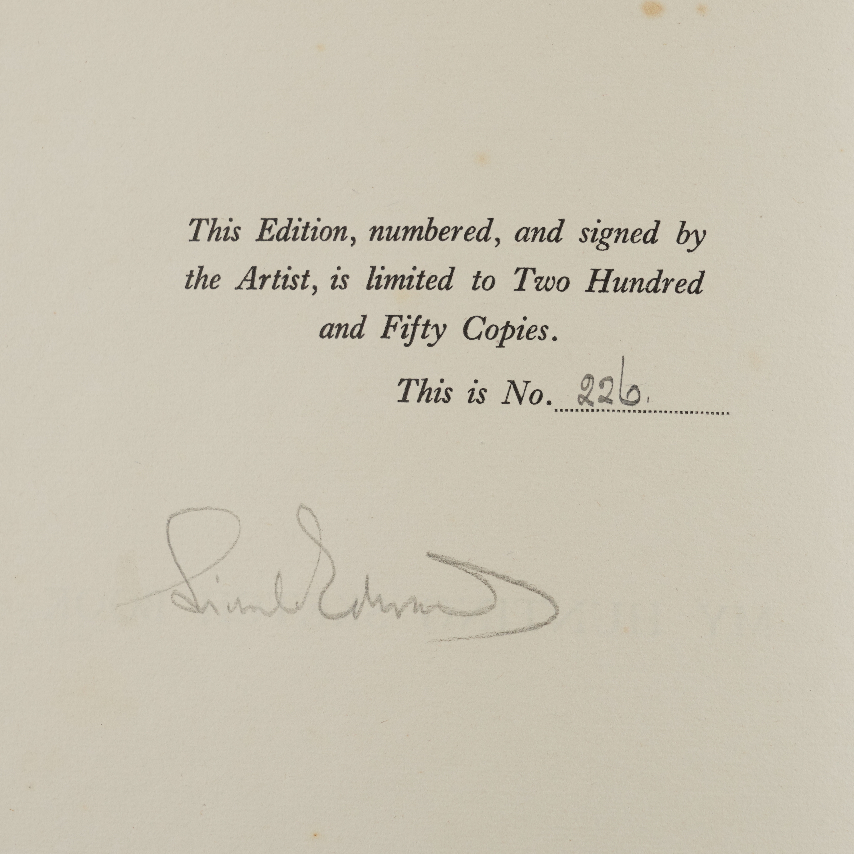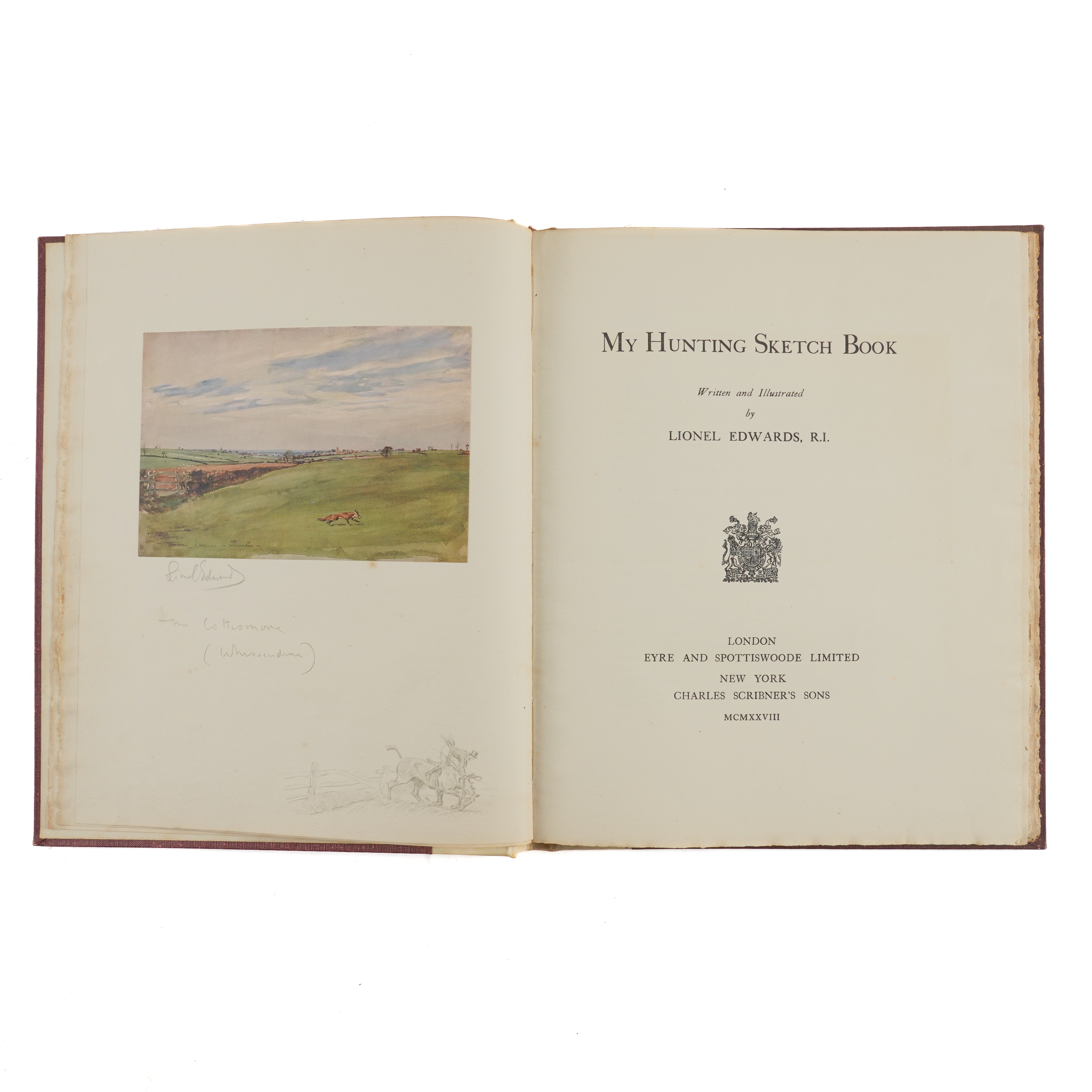 EDWARDS. Lionel (1878-1966, illustrator). My Hunting Sketch Book, London, 1928, 4to, 15 coloured plates, original vellum-backed cloth boards. FIRST EDITION. NUMBER 226 OF 250 COPIES SIGNED BY THE AUTHOR. With another book of related interest. (2)