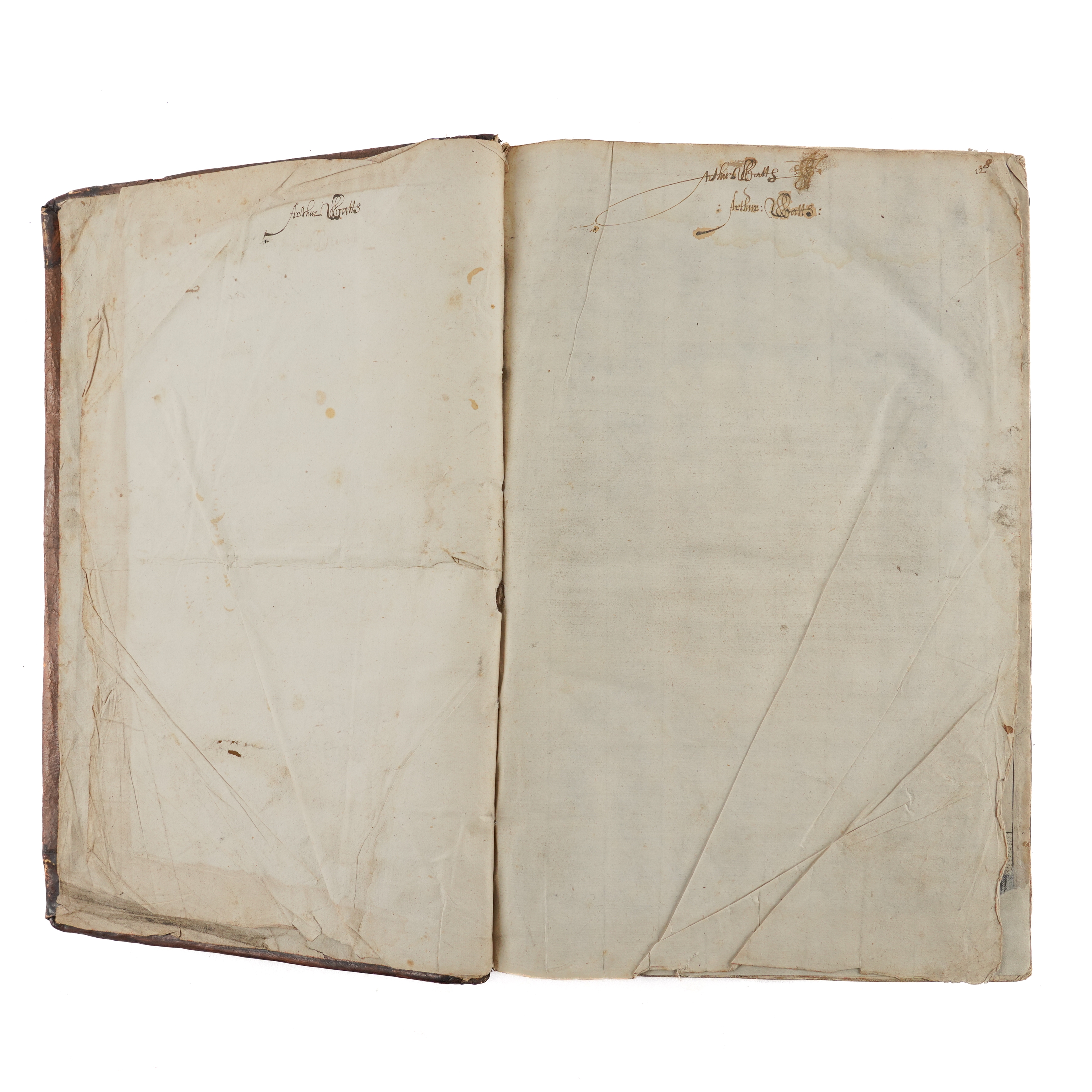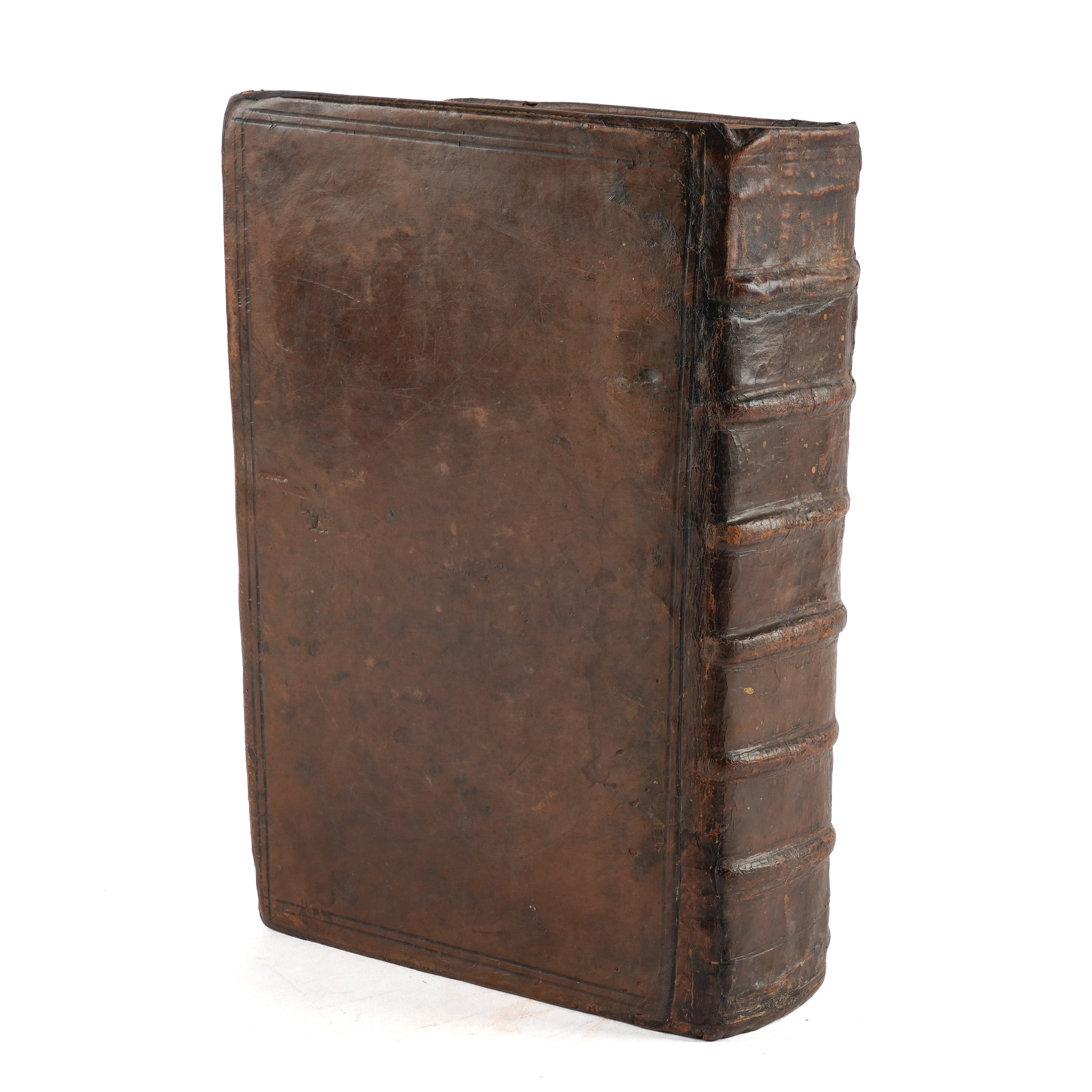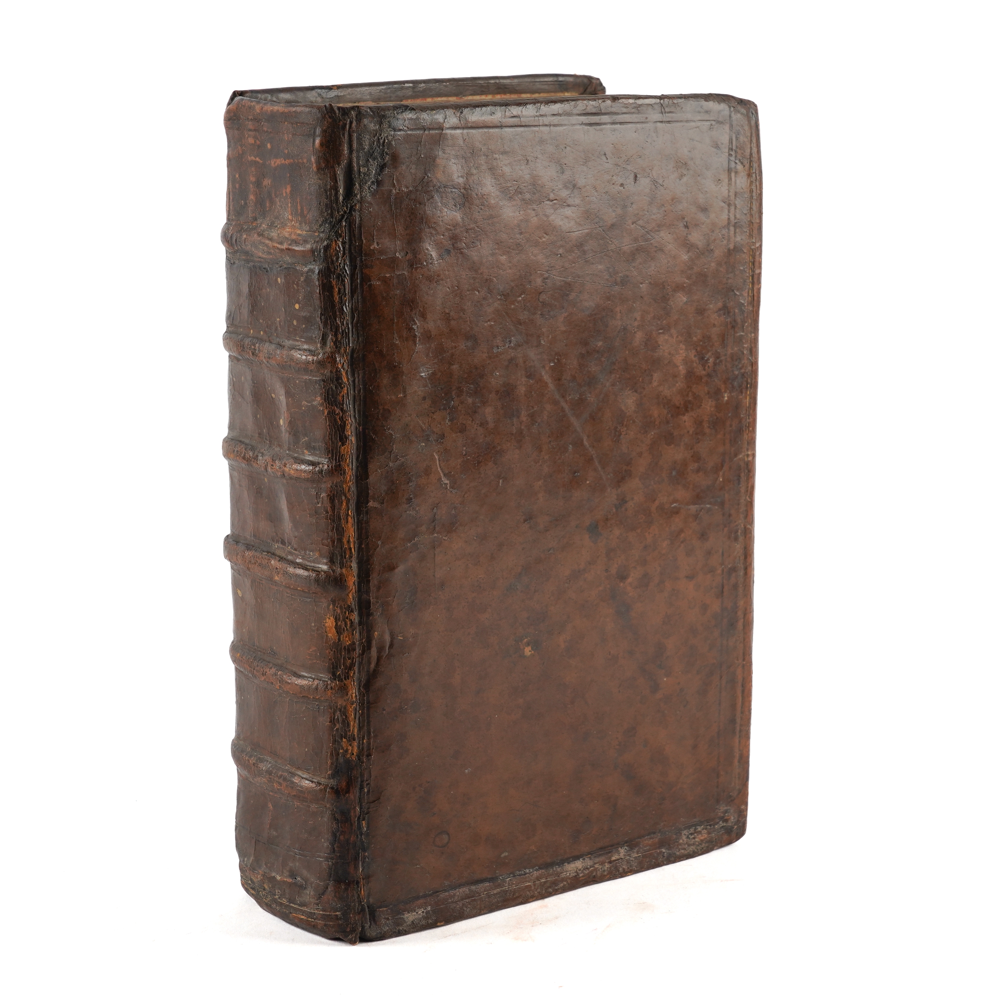 KNOLLES, Richard ([?]1545-1610). The Generall Historie of the Turkes, from the first beginning of that Nation to the rising of the Ottoman Familie: with all the notable expeditions of the Christian Princes against them. Together with the Lives and Conquests of the Othoman Kings and Emperours unto the year 1621 ... The Third Edition. [London:] Adam Islip, 1621 [the second title for "The Lives of the Othoman Kings and Emperors" dated 1620]. Folio (335 x 215mm). Fine highly elaborate architectural engraved title by Laurence Johnson, woodcut initials, headpieces and tailpieces, 28 engraved medallion portraits by Lawrence Johnson in the text, each within a baroque frame, engraved illustration on p.1,076 captioned "... the Bridge made over Danubius by Sinan Bassa, Anno. 1595" with a battle scene in progress, the table at the end printed in triple column (the engraved title repaired at corners with very slight loss, the first leaf after the title signed A3 (dedication "To the High and Mightie Prince James, by the grace of God King of England ..."), blank corner torn away from [Aaa6], short tear to Iiii3 without loss, small hole in upper margin of [Ooo6], corner torn away from [Bbbb5] touching letters, some mainly minor marginal staining, a few darker ink spots more pronounced to one text leaf and the last leaves of the table at the end, some light creasing). Contemporary calf with six raised bands (old repairs to the spine and corners, endpapers heavily creased). Provenance: Arthur Watts (several old signatures on the endpapers); illegible old annotation to a stub at the front; other illegible old inscriptions and/or signatures to the front endpaper; a few old pen trials. "Dr. Johnson lavished somewhat excessive praise on Knolles's style. 'None of our writers,' he asserted in the 'Rambler', No. 122, 'can in my opinion justly contest the superiority of Knolles, who in his 'History of the Turks' has displayed all the excellencies that narration can admit. His style ... is pure, nervous, elevated, and clear. A wonderful multiplicity of events is so artfully and so distinctly explained that each facilitates the knowledge of the next.' ... Hallam confirms Johnson's verdict: 'Knolles's descriptions are vivid and animated - circumstantial, but not to feebleness; his characters are drawn with a strong pencil' ... Byron acknowledged deep indebtedness to Knolles. Shortly before his death at Missolonghi, he wrote: 'Old Knolles was one of the first books that gave me pleasure when a child; and I believe it had much influence on my future wishes to visit the Levant, and gave perhaps the oriental colouring which is observed in my poetry'" (DNB). Baer The Ottomans (2021) pp.106-7; cf. Blackmer 919 (citing the first edition of 1603); not in Atabey or Brunet; STC 15053. A FINE CRISP COPY.