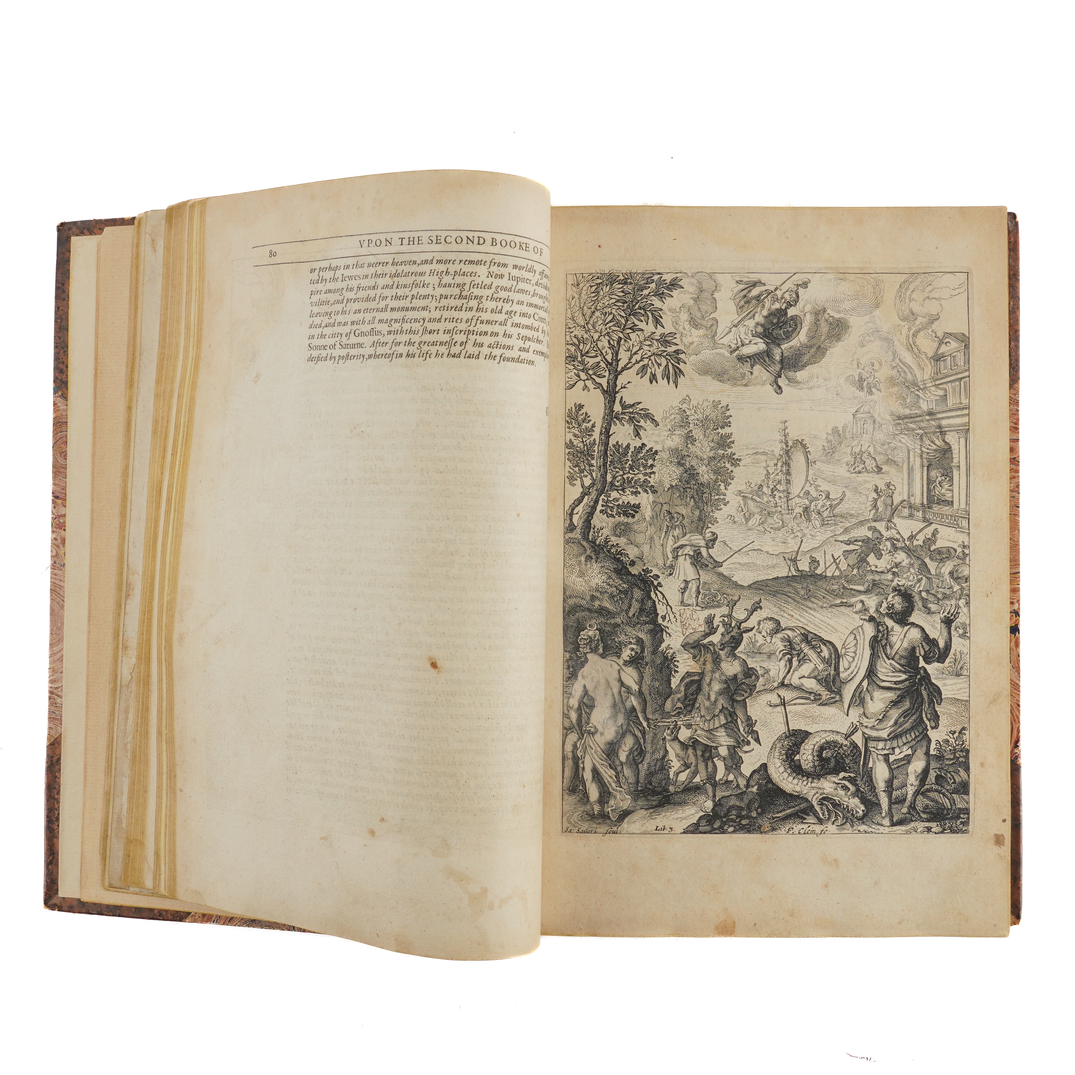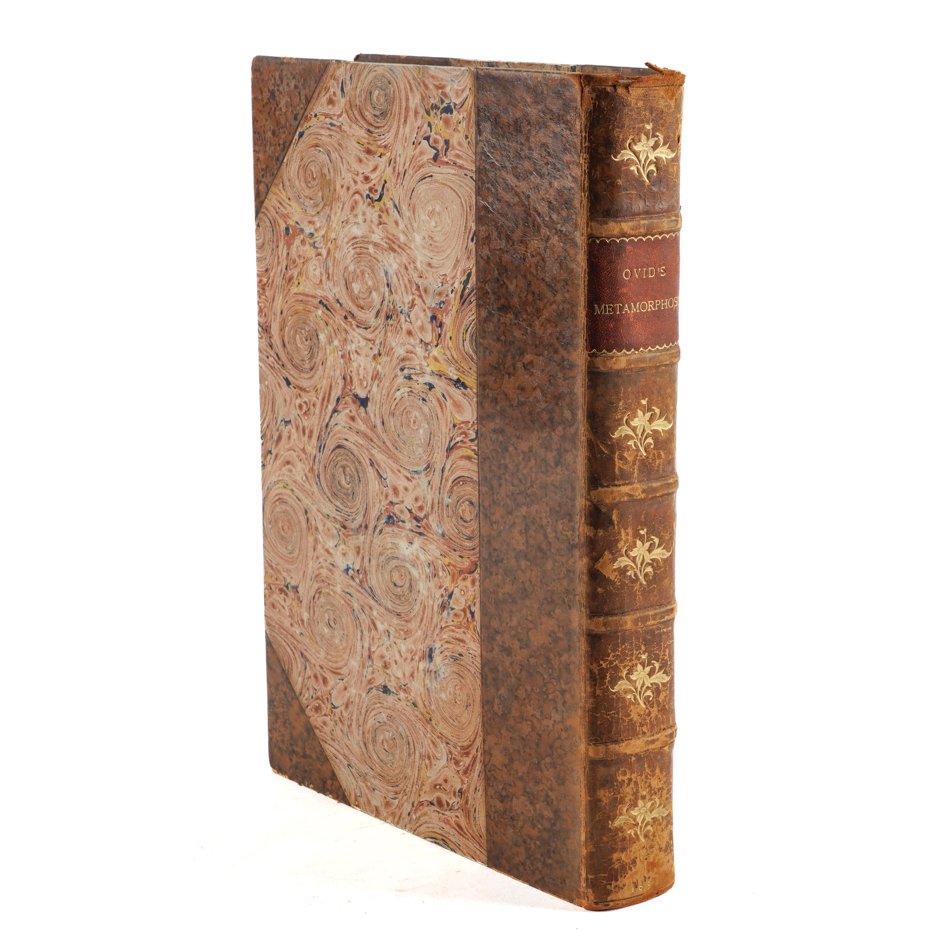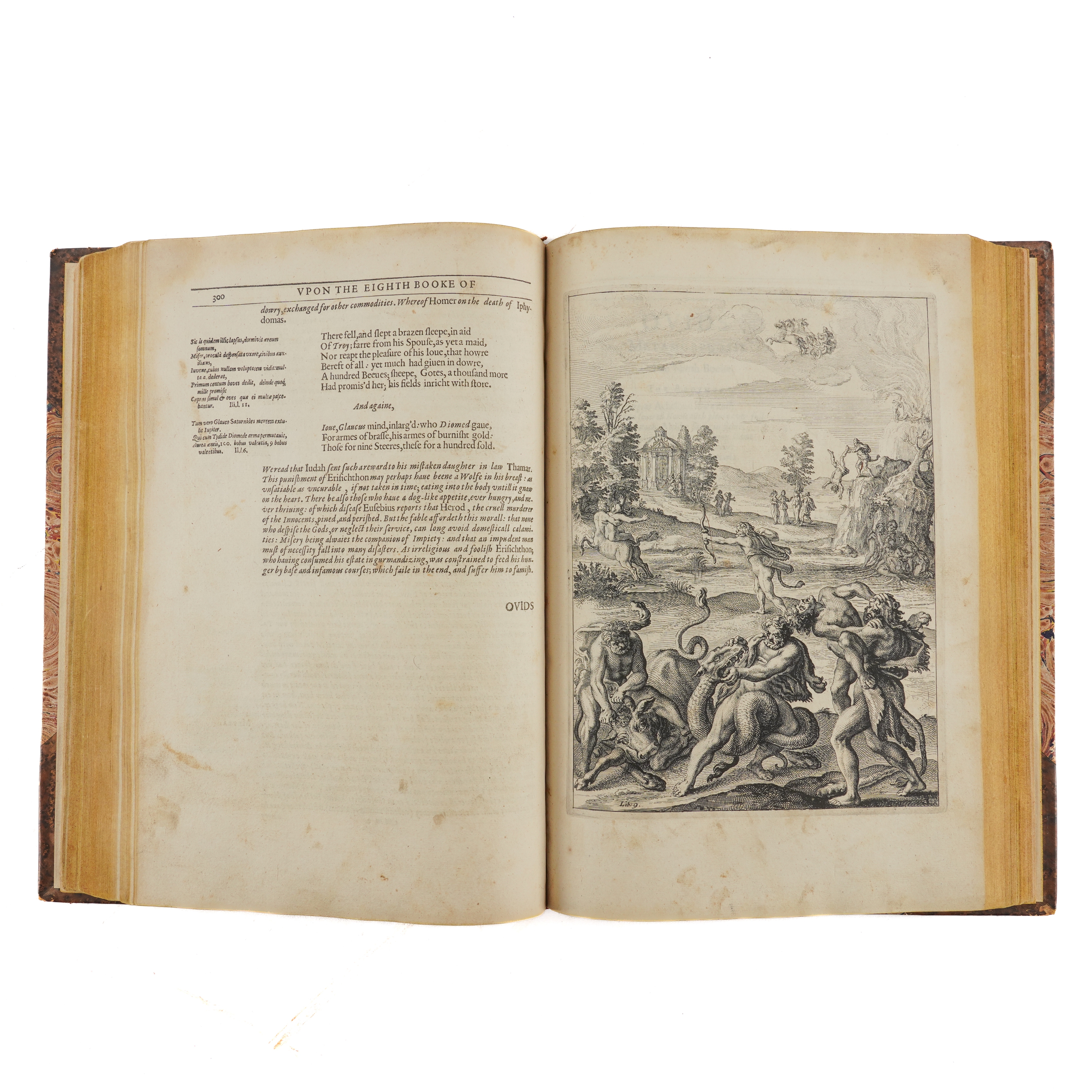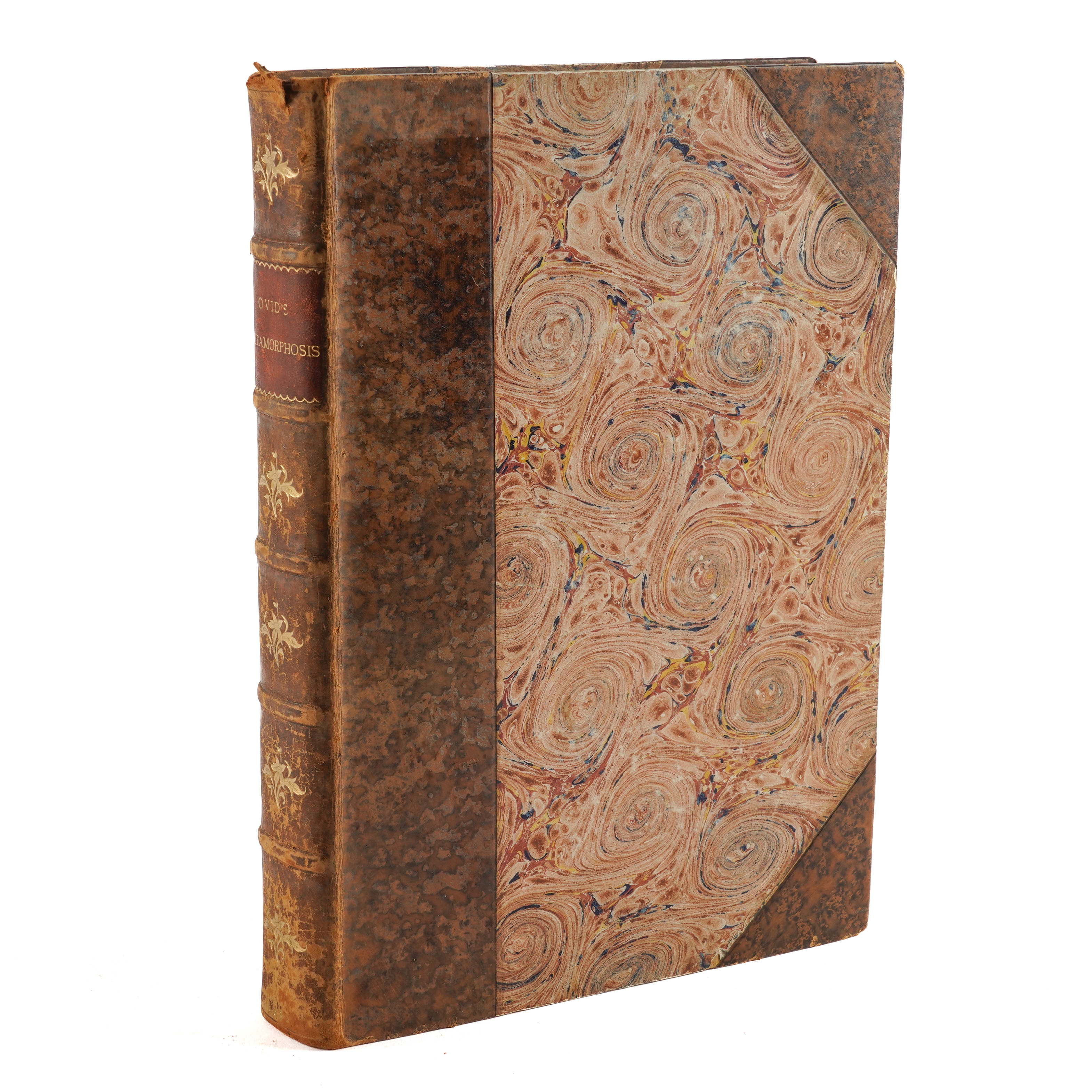 [SANDYS, George (1578-1644), translator]. Ovid's Metamorphosis Englished, Mythologiz'd, and Represented in Figures. An Essay to the Translation of Virgil's Æneis. By G. S. Oxford: John Lichfield, 1632. Folio (316 x 220mm). Additional engraved allegorical title, engraved portrait of Ovid, 15 engraved plates by Salomon Savery after Francis Clien, one-page of errata at the end (lacks text leaves G3-4 (i.e. pp.57-60), replaced by 4 later blank leaves; also lacks text leaves Mm1-2 (i.e. pp.481-484), replaced by 4 later blank leaves, part of the blank corner of the additional engraved title torn away without loss, the engraved title spotted and stained, the letterpress title stained, some mainly marginal spotting and staining throughout, a few darker spots or short ink lines, with several faults in the pagination, but complete apart from the missing leaves itemized above). 19th-century half mottled calf, spine gilt with red morocco lettering-piece (extremities and spine rubbed, later endpapers). Provenance: B. & J. F. Meehan, Export Booksellers, 32, Gay Street, Bath (small label on front pastedown). The second folio edition of Sandy's verse translation of Ovid's "Metamorphoses", and the first to include the engraved plates; the translation can also lay claim to being, at least in part, the first poetry written in English in the New World. "While in America Sandys completed a verse translation of Ovid's 'Metamorphoses,' which he had begun in England ... An elaborate edition in folio appeared at Oxford in 1632, under the title 'Ovid's Metamorphosis Englished, mythologized, and represented in Figures' ... In an address to the reader Sandys refers to this as the 'second edition carefully revised.' The engraved title-page, although resembling in design that of 1626, is new; it was the work of Francis Clein, and was engraved by Salomon Savery. Each of the fifteen books, as well as the 'Life of Ovid', is preceded by a full-page engraving. The first book of the 'Æneid' is alone attempted. The copy in the Bodleian Library, which lacks the engraved title, was the gift of Sandys ... Sandys' rendering of Ovid's 'Metamorphoses' has chiefly preserved his name in literary circles ..." (DNB). Please also see DNB for a full account of the work's complicated publishing history. A later printed catalogue description slip is inserted at the letterpress title in the present copy, stating, "The work is of peculiar interest, as the first elaborate poetical composition of America. Sandys was Treasurer of the English Colony of Virginia, and on the banks of the James River completed his excellent translation of the Metamorphosis of Ovid. A copy of this edition sold recently [date unspecified] in London for £31." Sabin 76458; STC 18966; not in Brunet.
