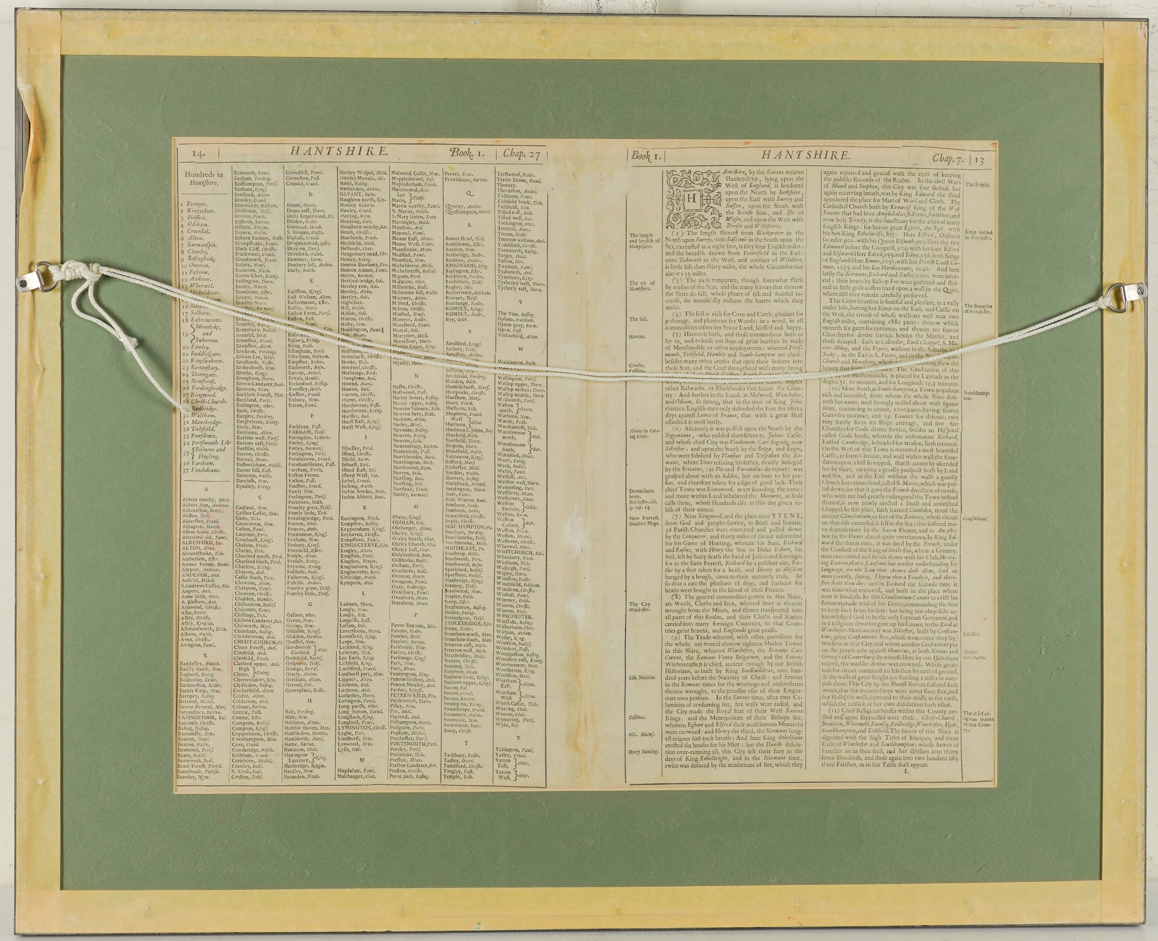 SPEED, John (1552-1629). Hantshire described and devided. [London:] "Are to be Sold by Thomas Bassett in Fleet Street and Richard Chiswell in St. Paul's Churchyard," [1676]. Hand-coloured engraved map of Hampshire, inset bird's-eye-view of Winchester, coats-of-arms, English text on the verso, 380 x 510mm., framed and glazed. A FINE COPY. With Robert Morden's Hampshire ([London, c. 1695, hand-coloured engraved map, 365 x 420mm., framed and glazed). (2)