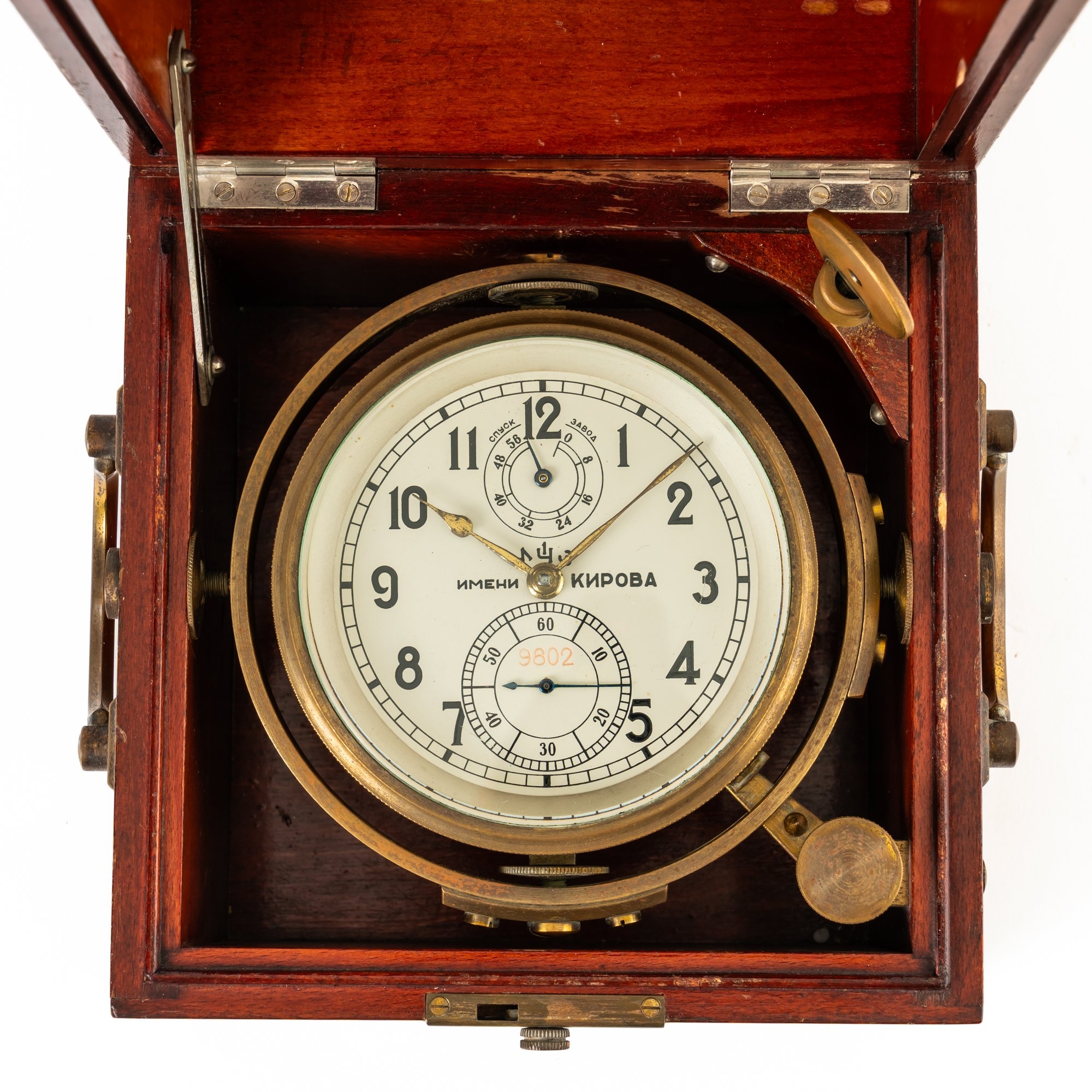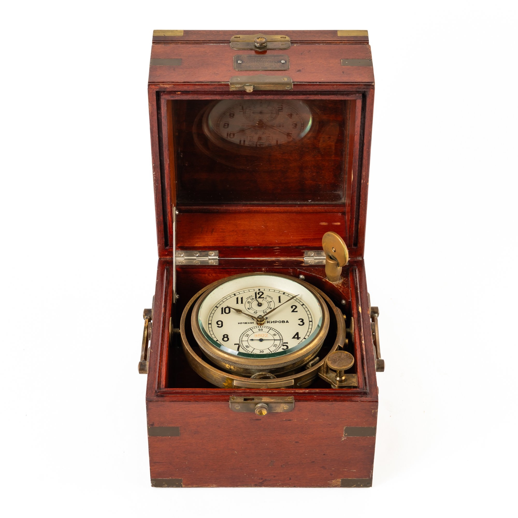 A RUSSIAN BRASS-MOUNTED MAHOGANY SHIP’S CHRONOMETER