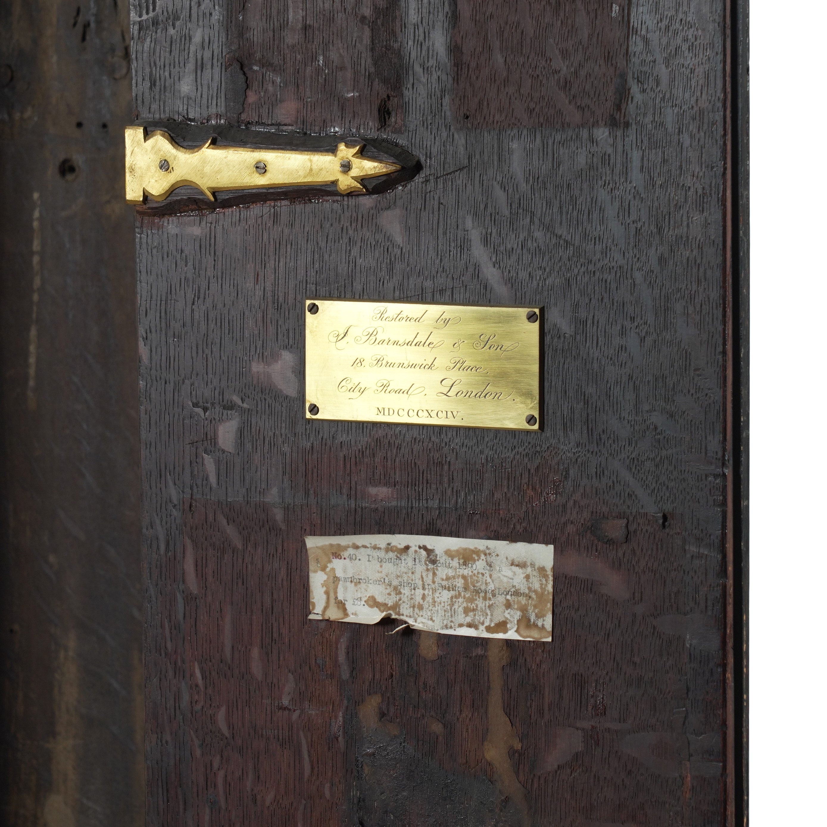 The City of London hold the archive for the Barnsdales at the Guildhall. They were watch and clockmakers during the 19th century. William Barnsdale was elected Master of the Clockmakers in 1906. Amongst the archive are the workshop's day and repair books, which may reveal more details about the clock and its history.