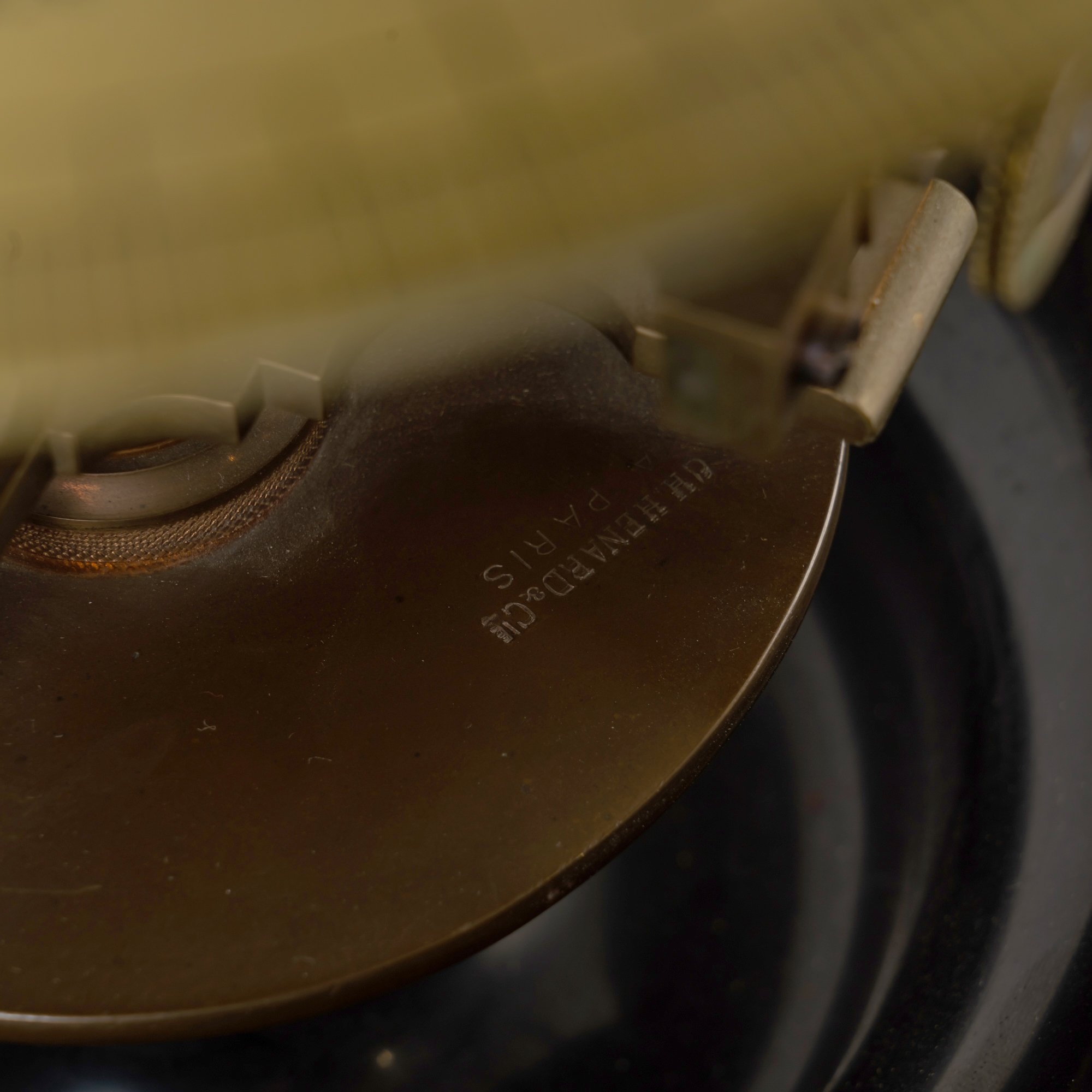 The design of this clock was conceived by Louis-Jérôme-Napoléon Mouret (b. 1810), who in 1876 submitted a patent for his invention. Mouret was a civil engineer, based at 13 rue Gaillon, Paris. His energy for this theme is demonstrated by the constant submissions of patents. In 1874 he submitted one for improvements in the arrangement and construction of model globes driven by clockwork for the purpose of demonstrating at all times all the astronomical phases of the earth with reference to the sun (The Commission of Patents Journal, 1874, p. 2483, patent no. 2699, of which an earlier patent for a similar mechanism was filed in August 1871). His patent for the present clock was submitted in June 1876 and published in detail in a number of learned publications, including a review by in L’Année Scientifique et Industrielle 1878, pp. 160-1 and also La Nature Revue des Sciences et leurs Applications aux Arts et à l’Industrie, 1877, where on p. 45 an almost identical clock is illustrated.