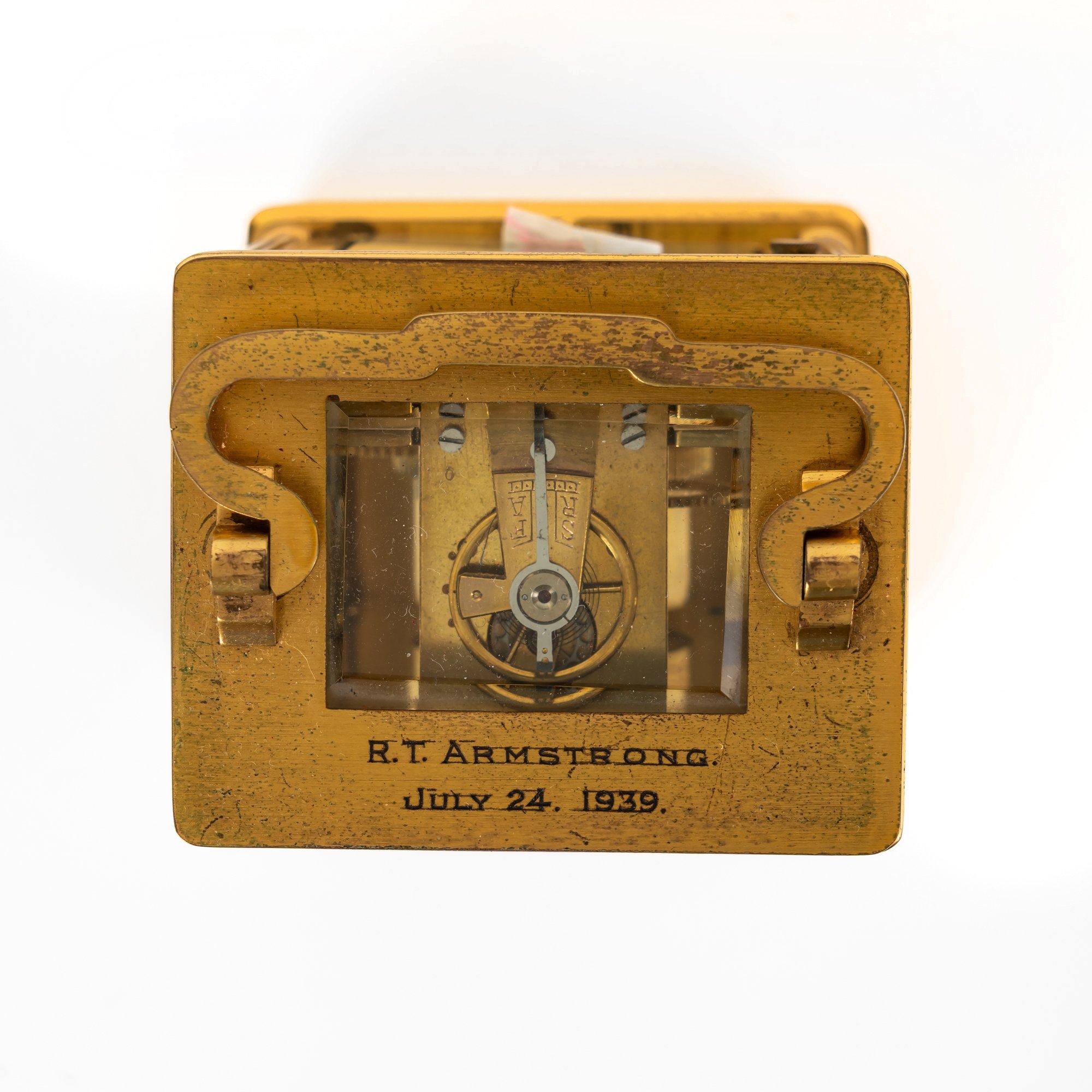 With carrying case and key. The clock is in good condition, the movement ticks.