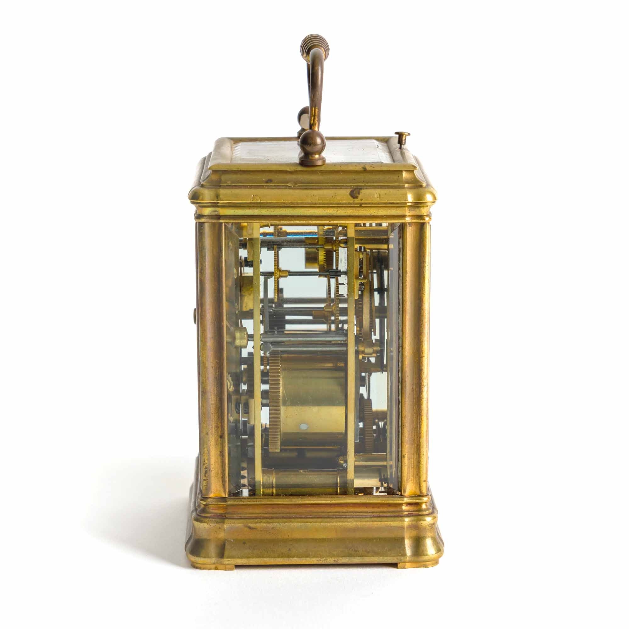 A FRENCH GORGE CASED STRIKING AND REPEATING CARRIAGE CLOCK