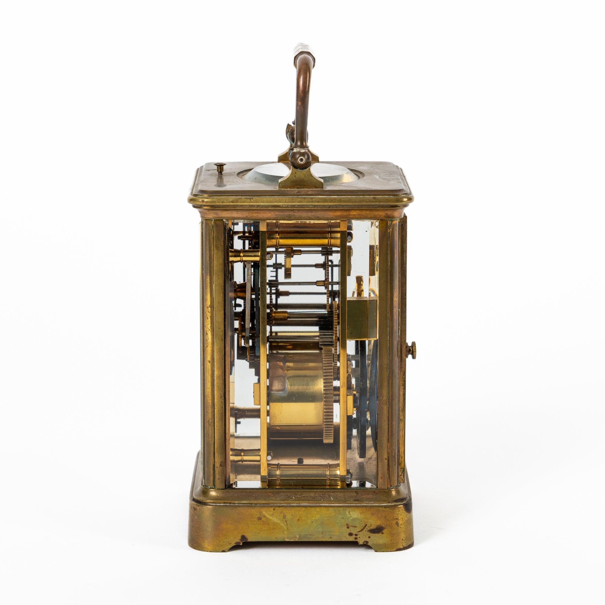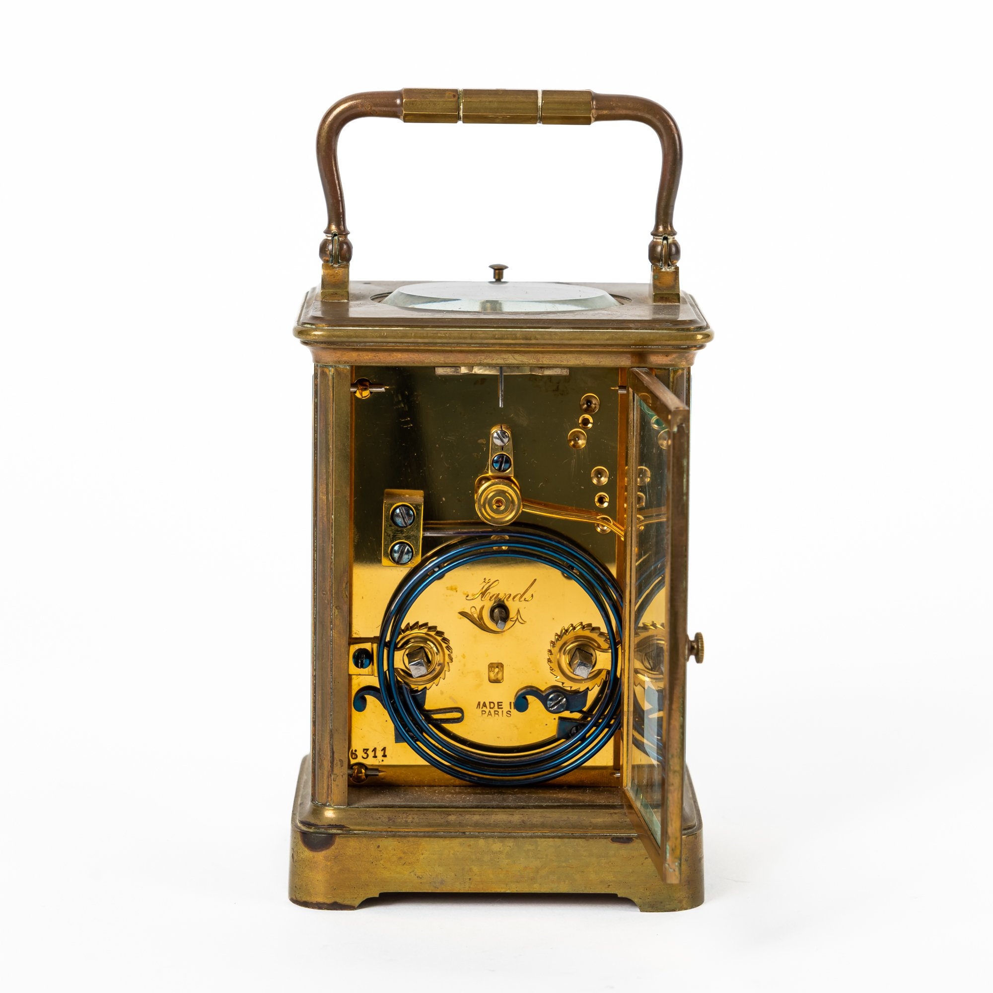 A FRENCH BRASS STRIKING AND REPEATING CARRIAGE CLOCK