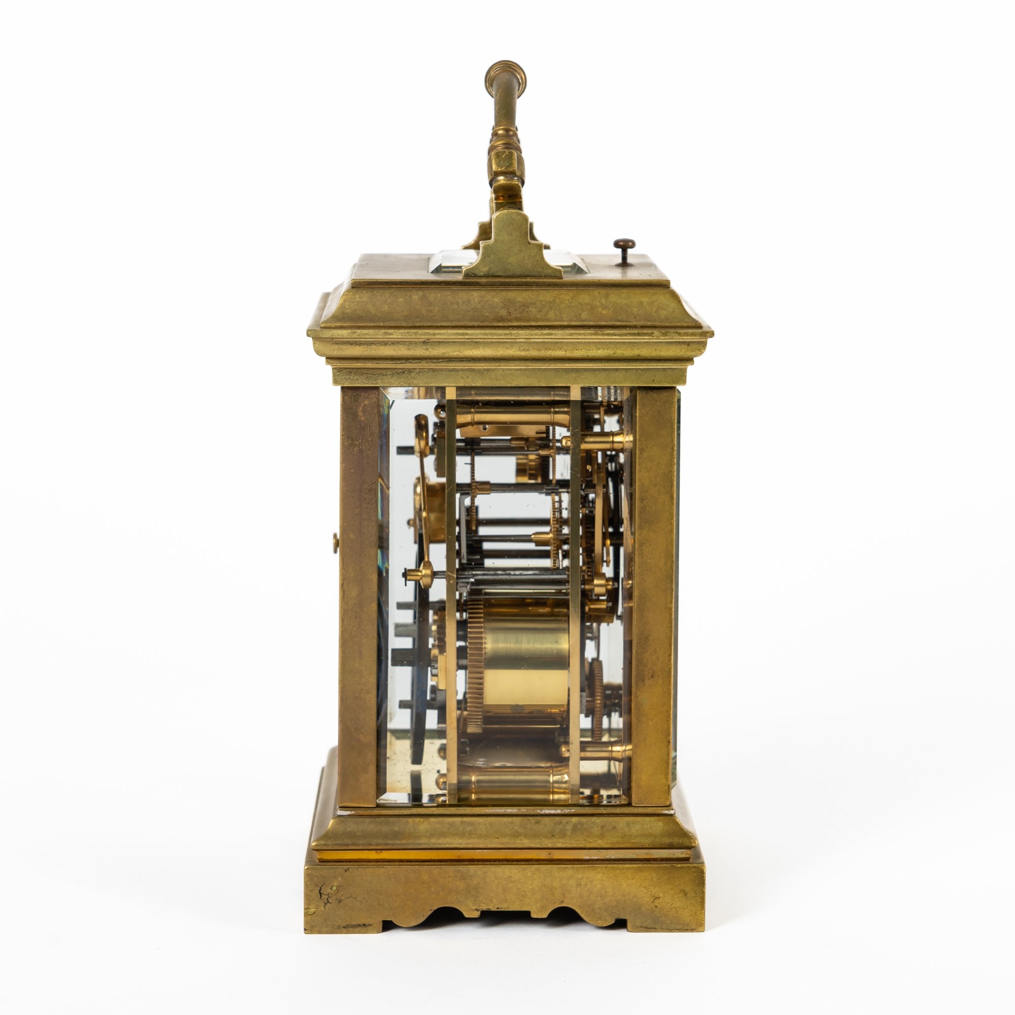 A FRENCH BRASS STRIKING AND REPEATING CARRIAGE CLOCK