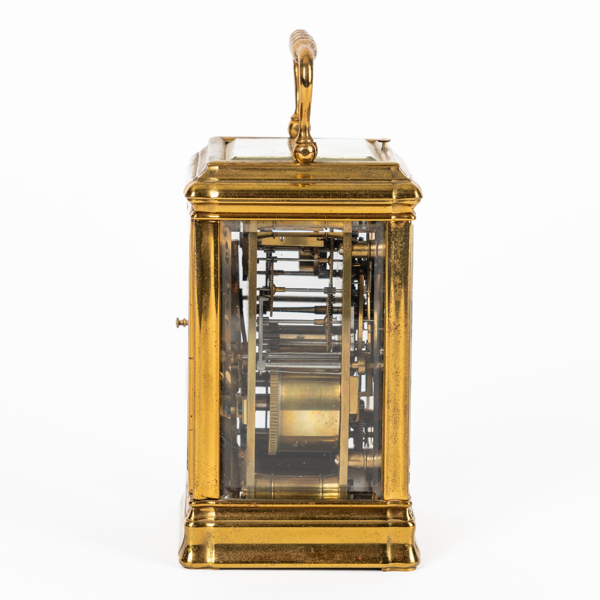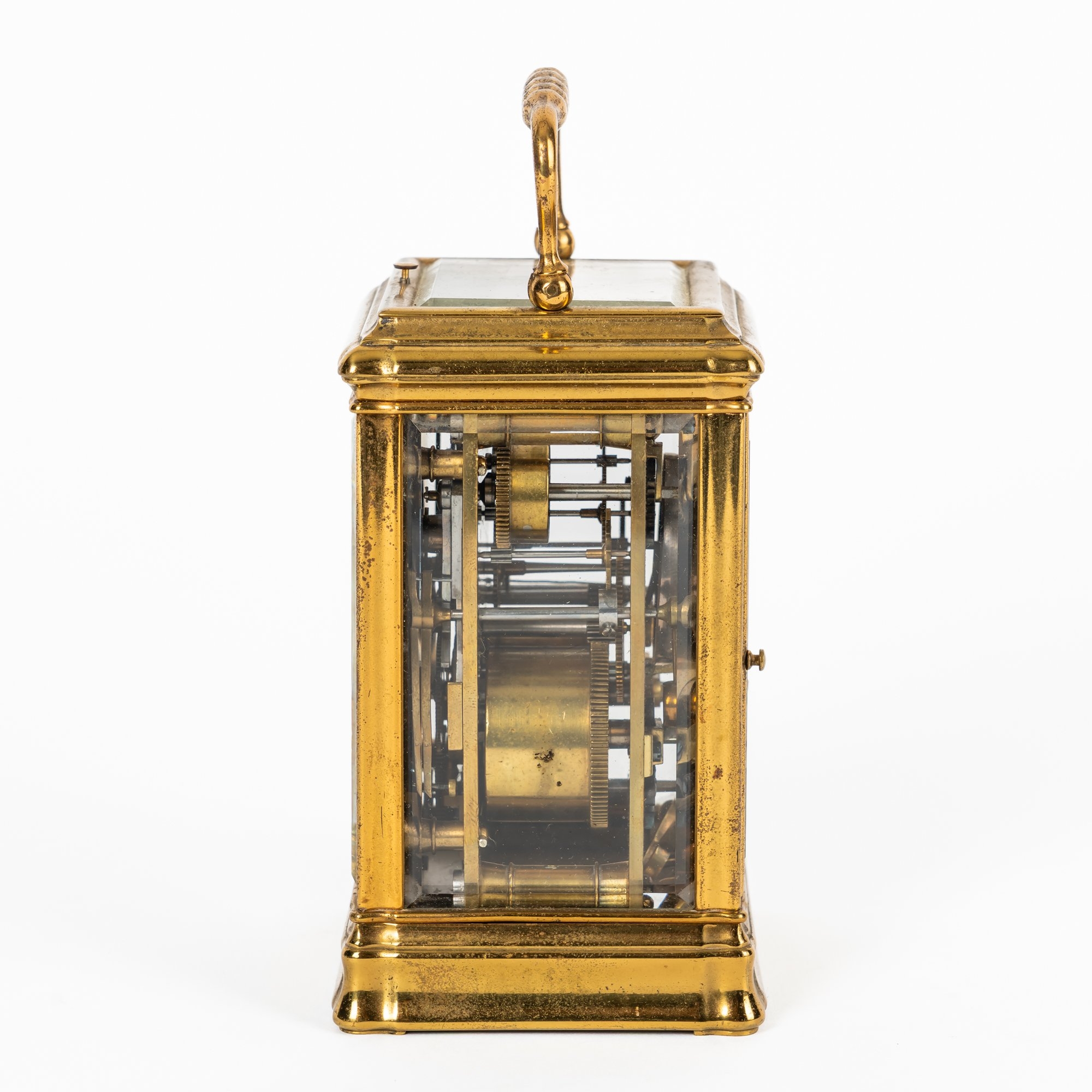 A FRENCH GILT BRASS GORGE CASED STRIKING AND REPEATING CARRIAGE CLOCK