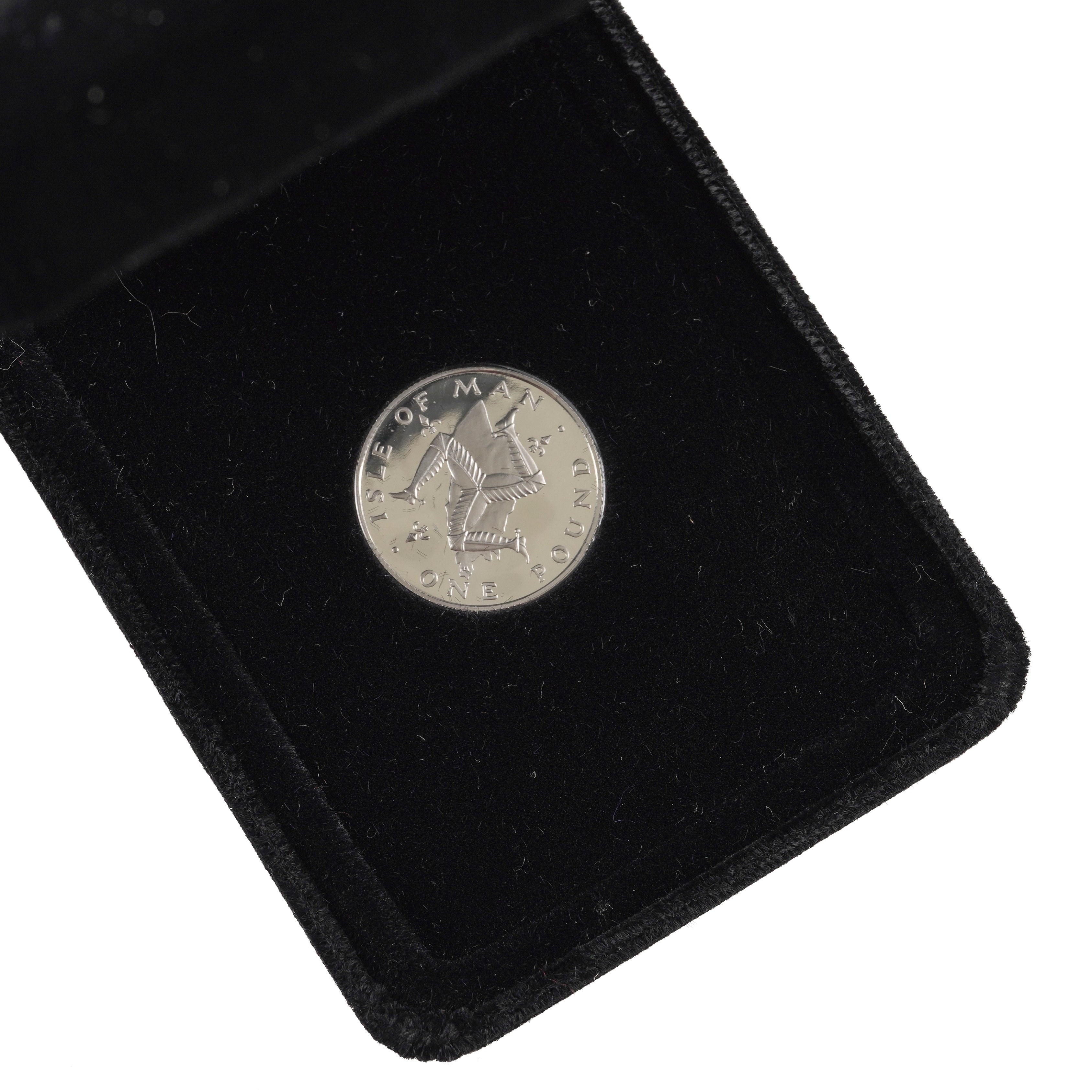 Information from the internet: The weight of an Isle of Man platinum proof one pound coin is 9 grams, with a pure platinum content of 8.55 grams. The coin is made of .950 fine platinum and has a diameter of 22mm.