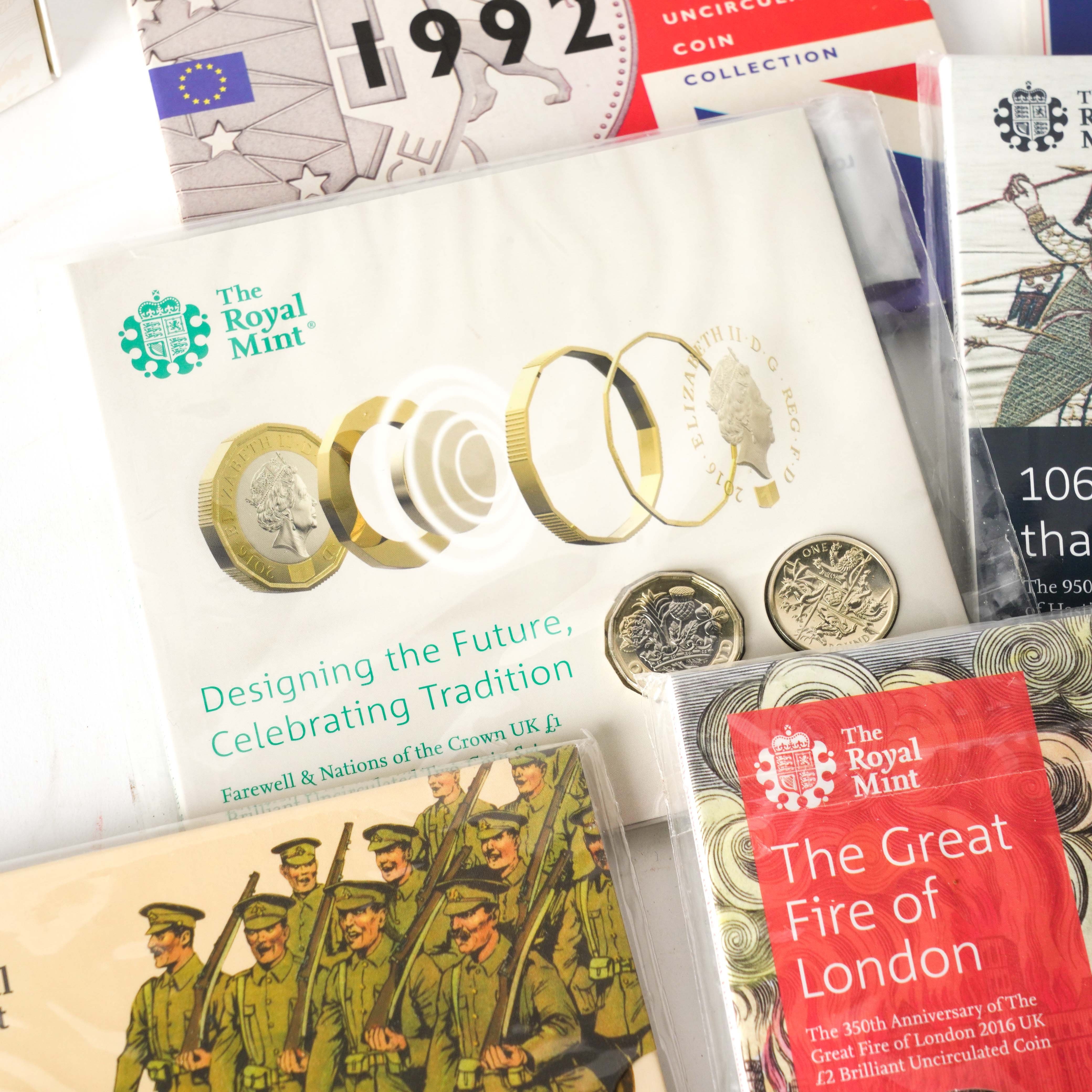 A GROUP OF BRITISH MOSTLY ROYAL MINT COLLECTOR'S COINS