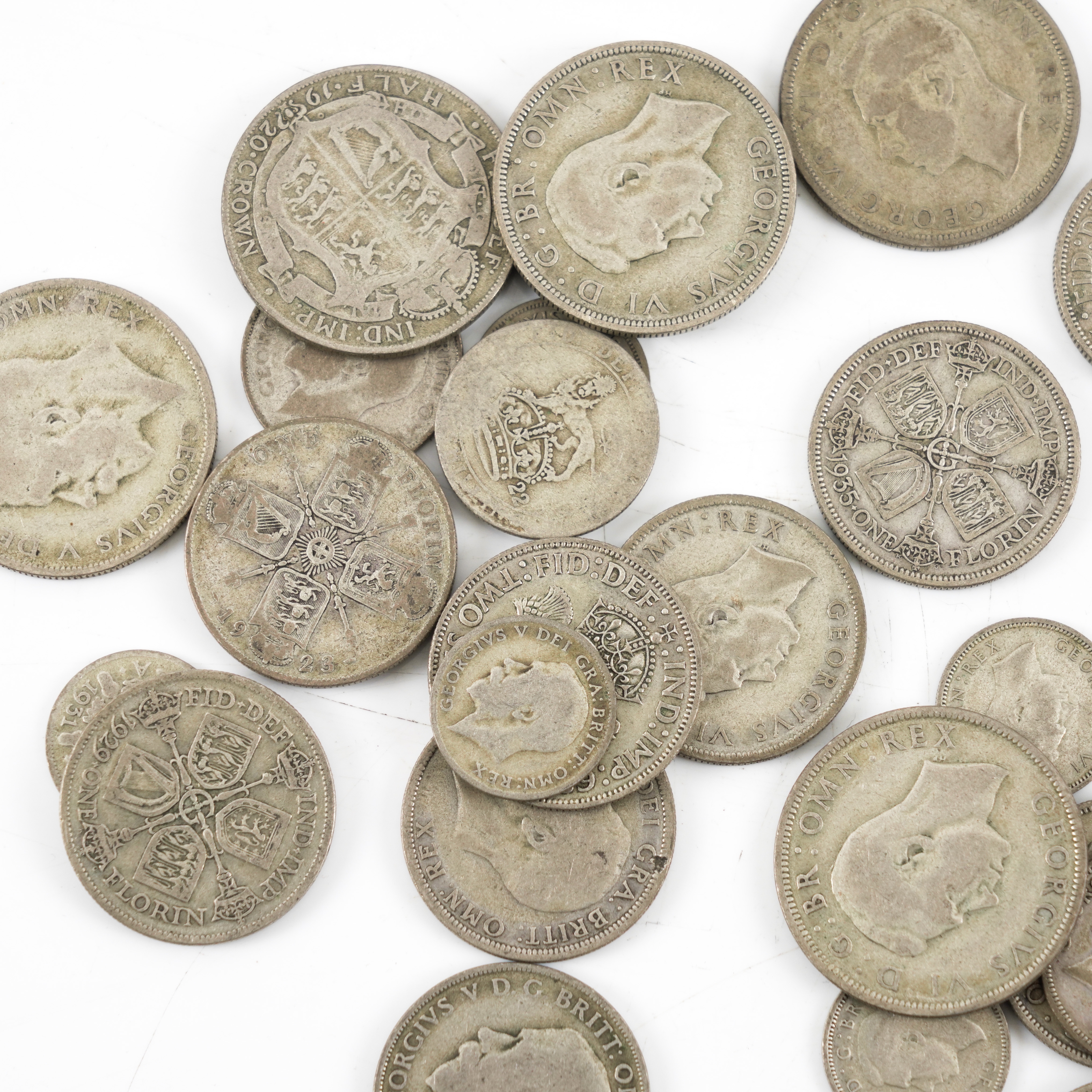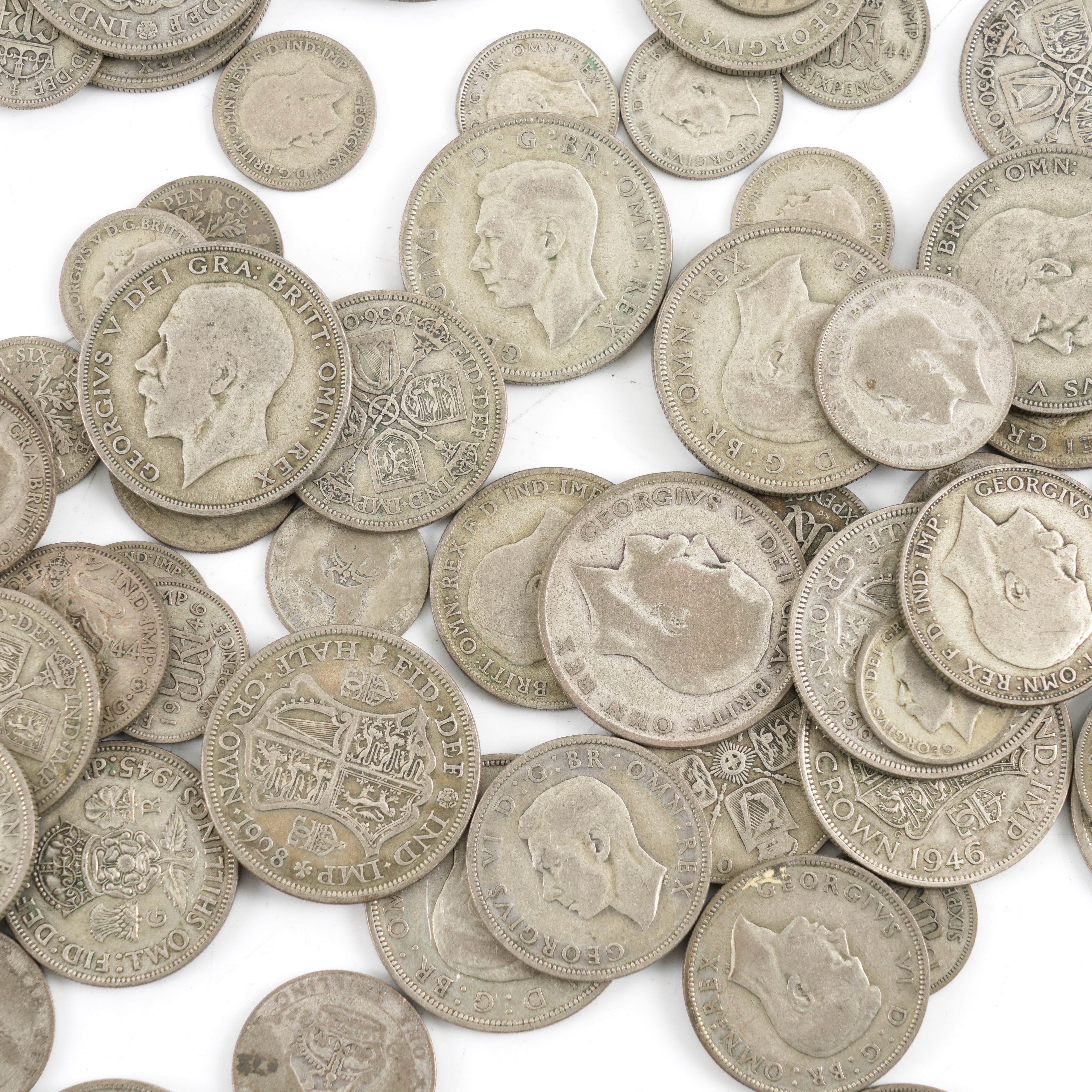 Comprising; half crowns, florins, shillings and sixpences, combined weight 994 grams