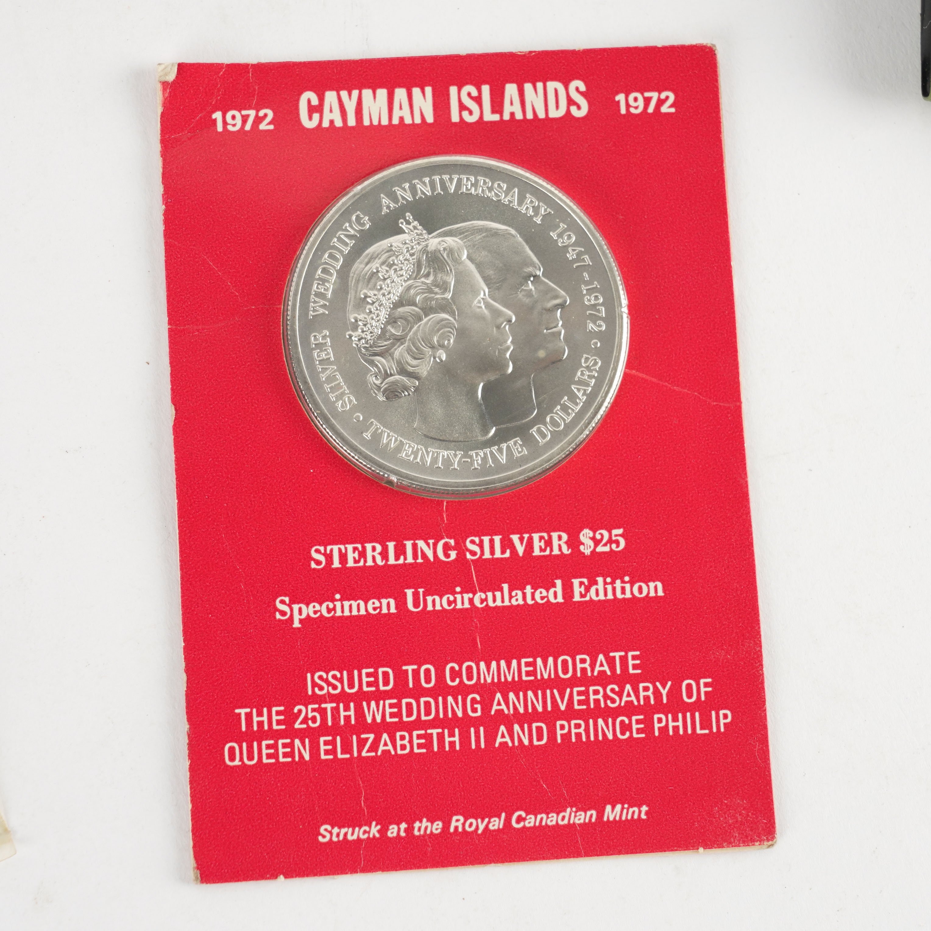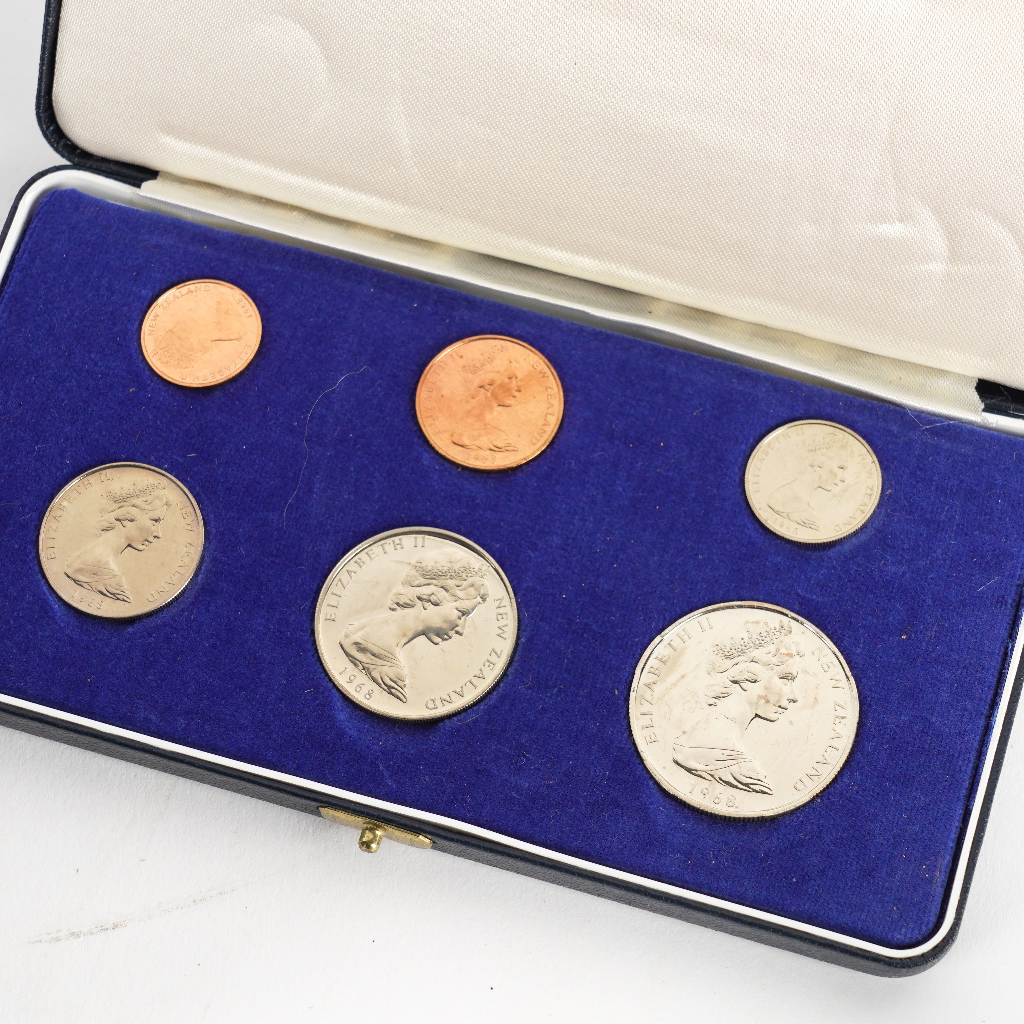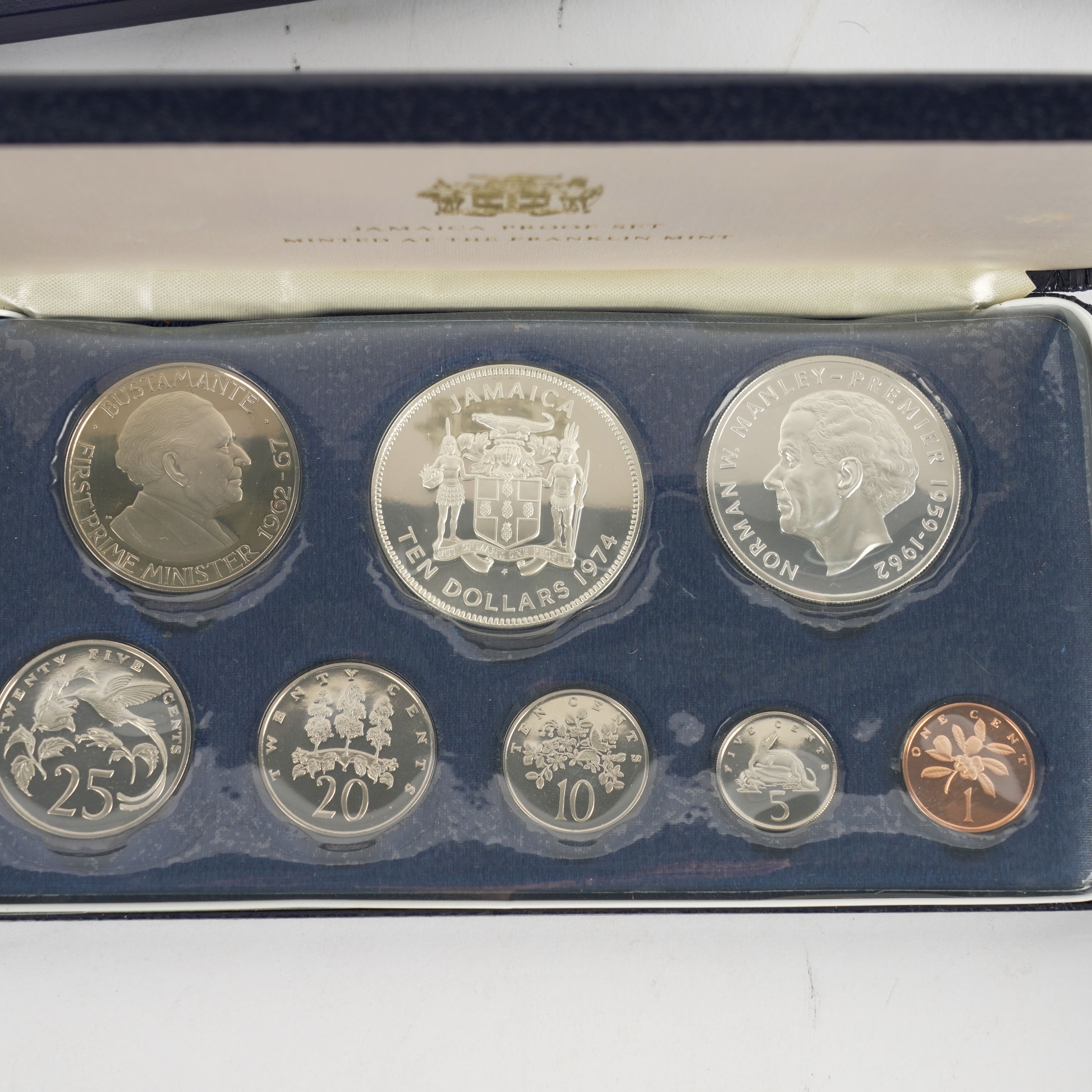 To include a Jamaica eight coin proof set 1974, a South Africa seven coin proof set 1967, a Haiti three coin set, a New Zealand six coin proof set 1968, a Bahama Islands nine coin set, a Jamaica five shillings 1966, a Bermuda crown 1964 and further items