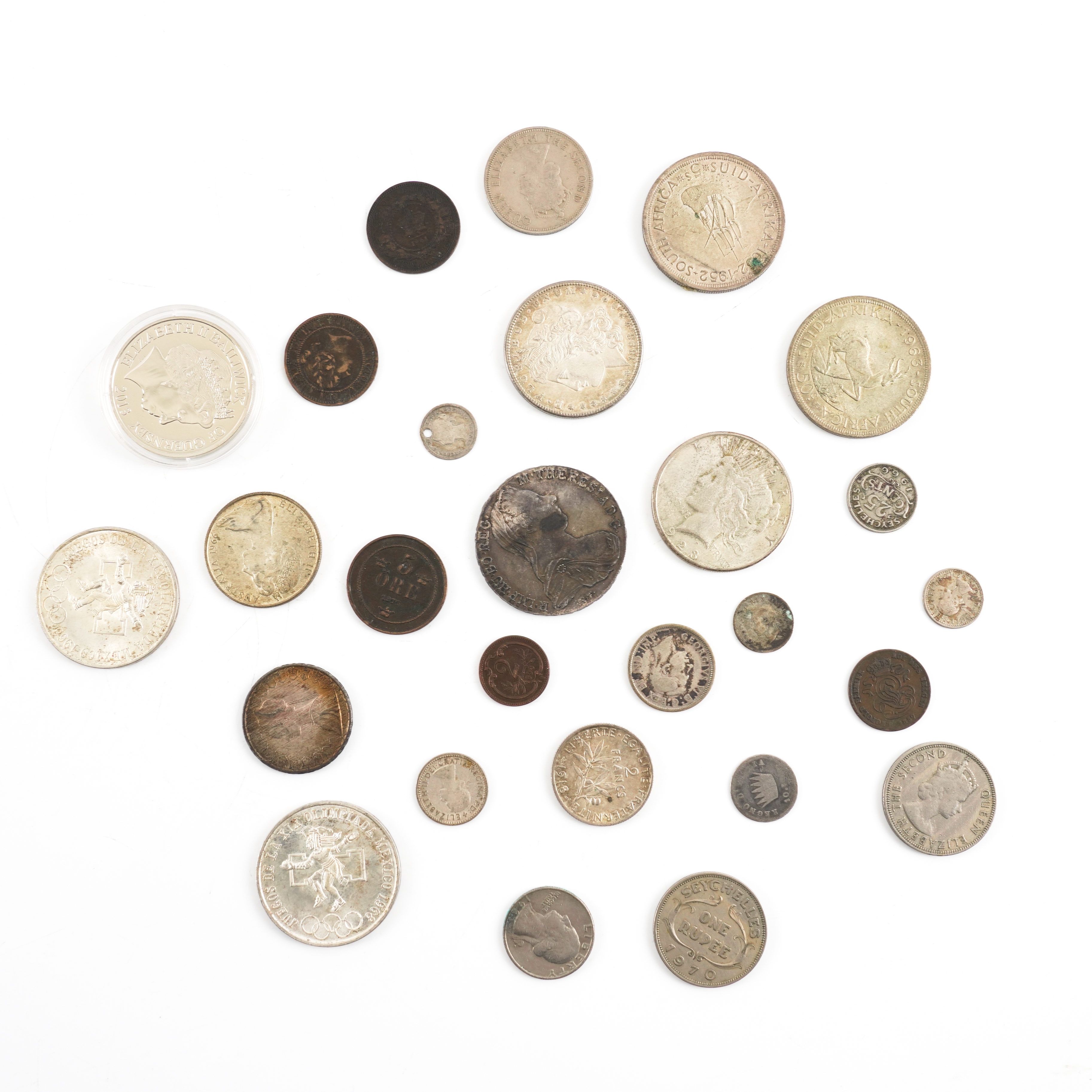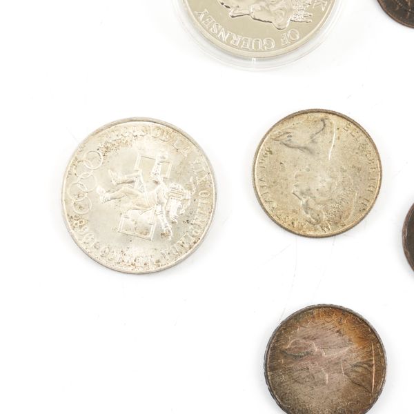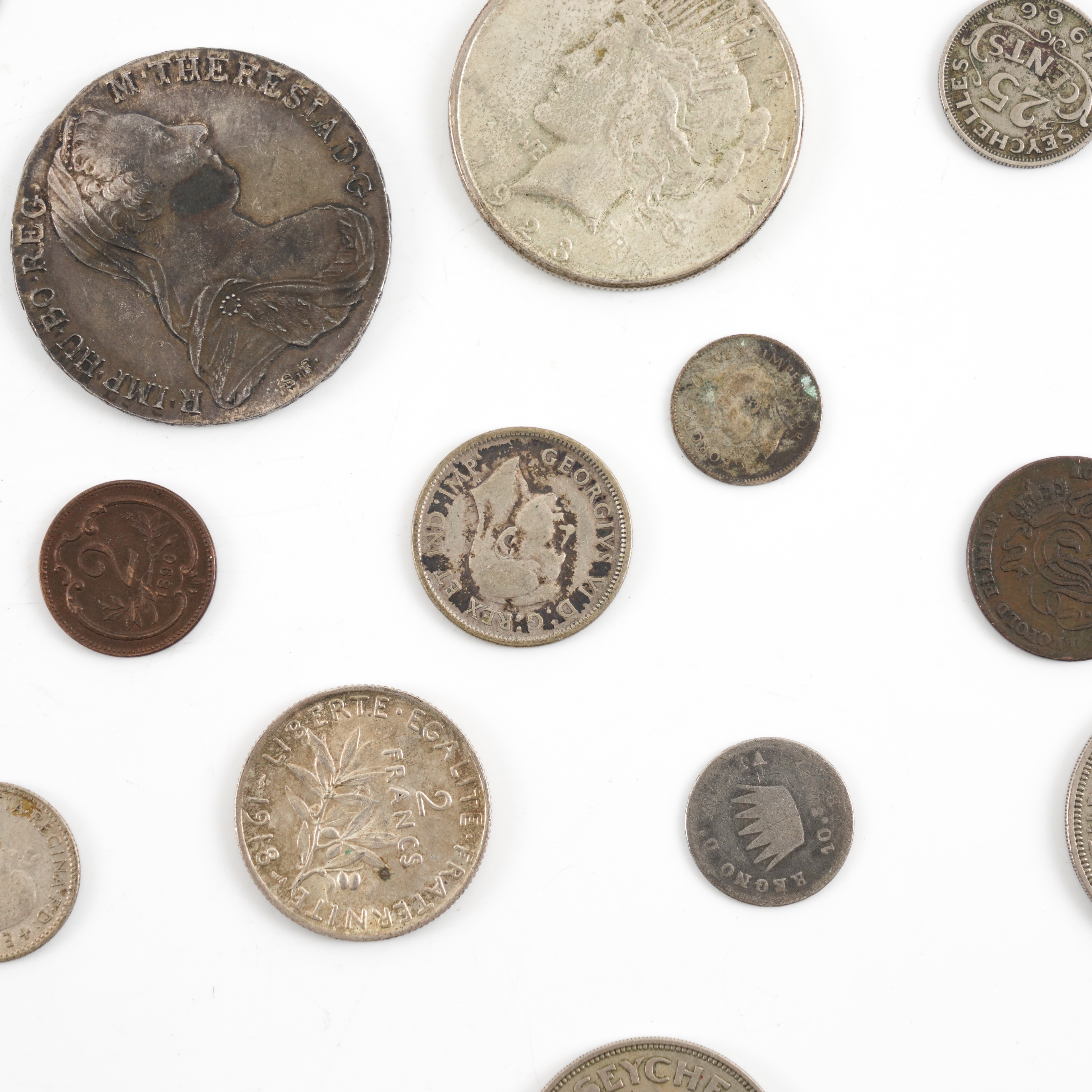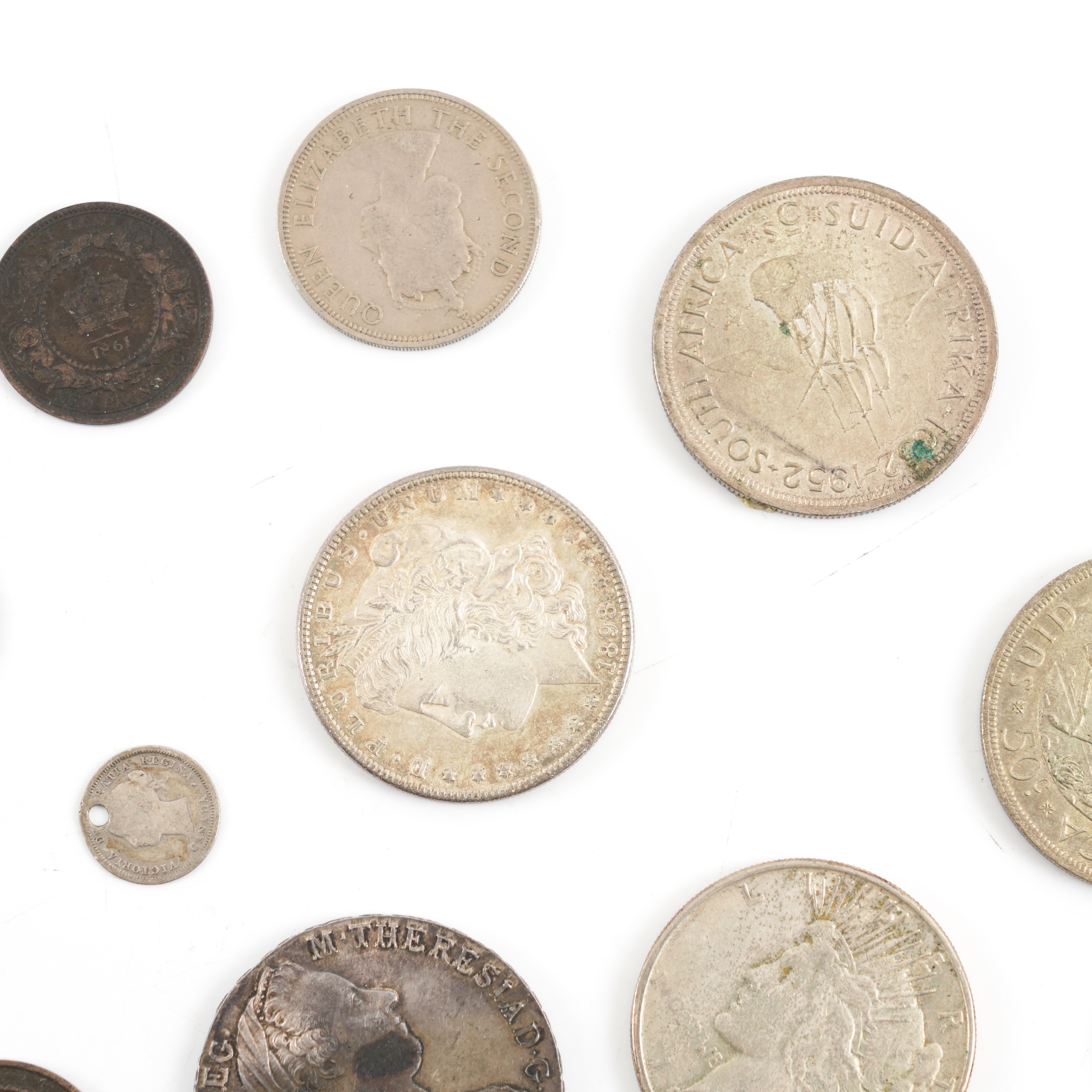 To include; two USA dollars, 1898 and 1923, two South Africa crowns, 1952 and 1963, a restruck Maria Theresa dollar, two Mexican coins, and twenty further coins