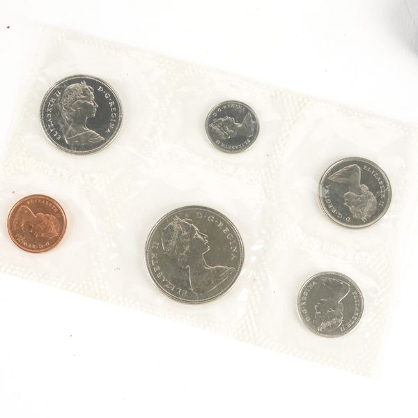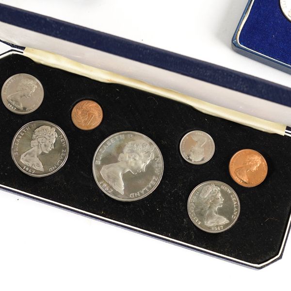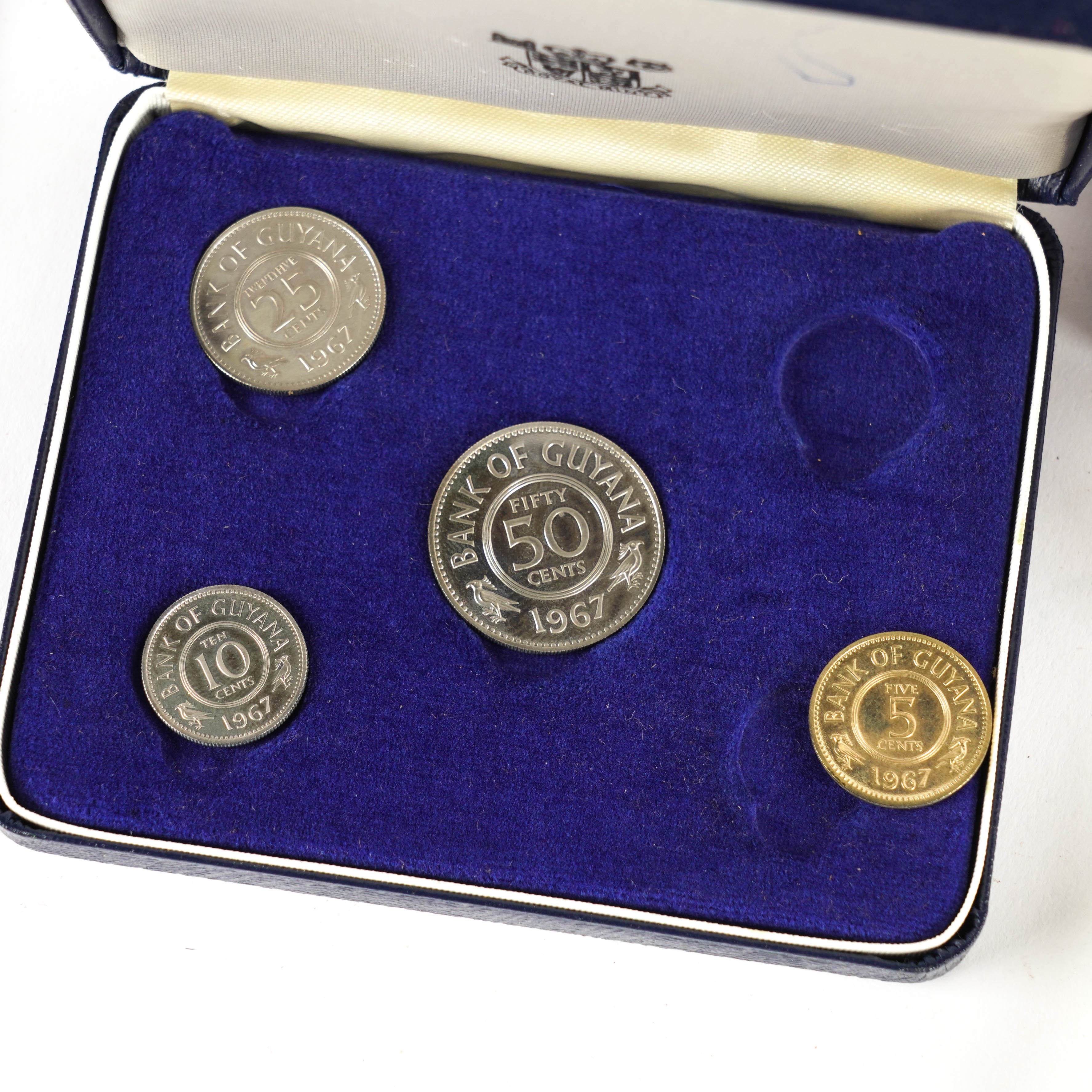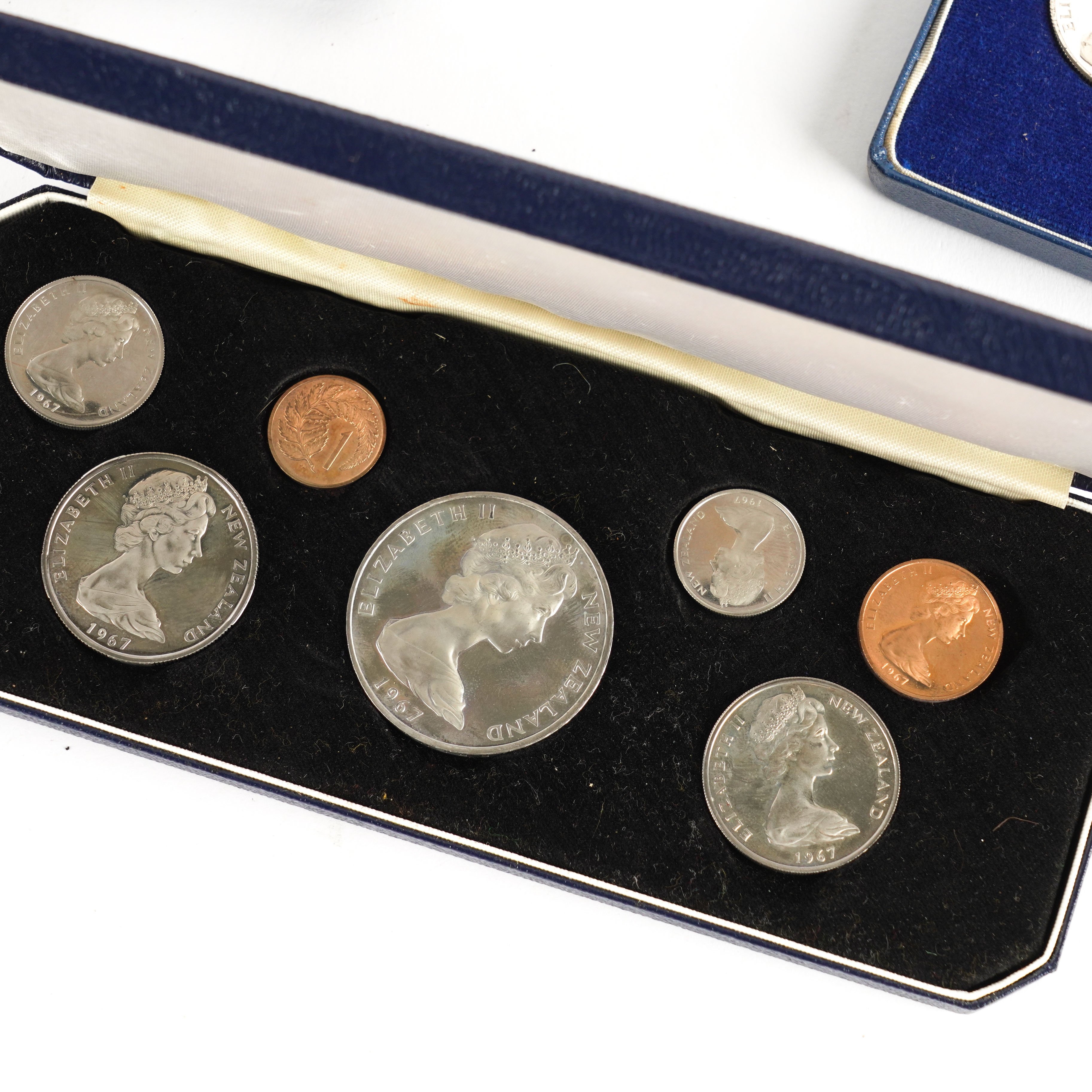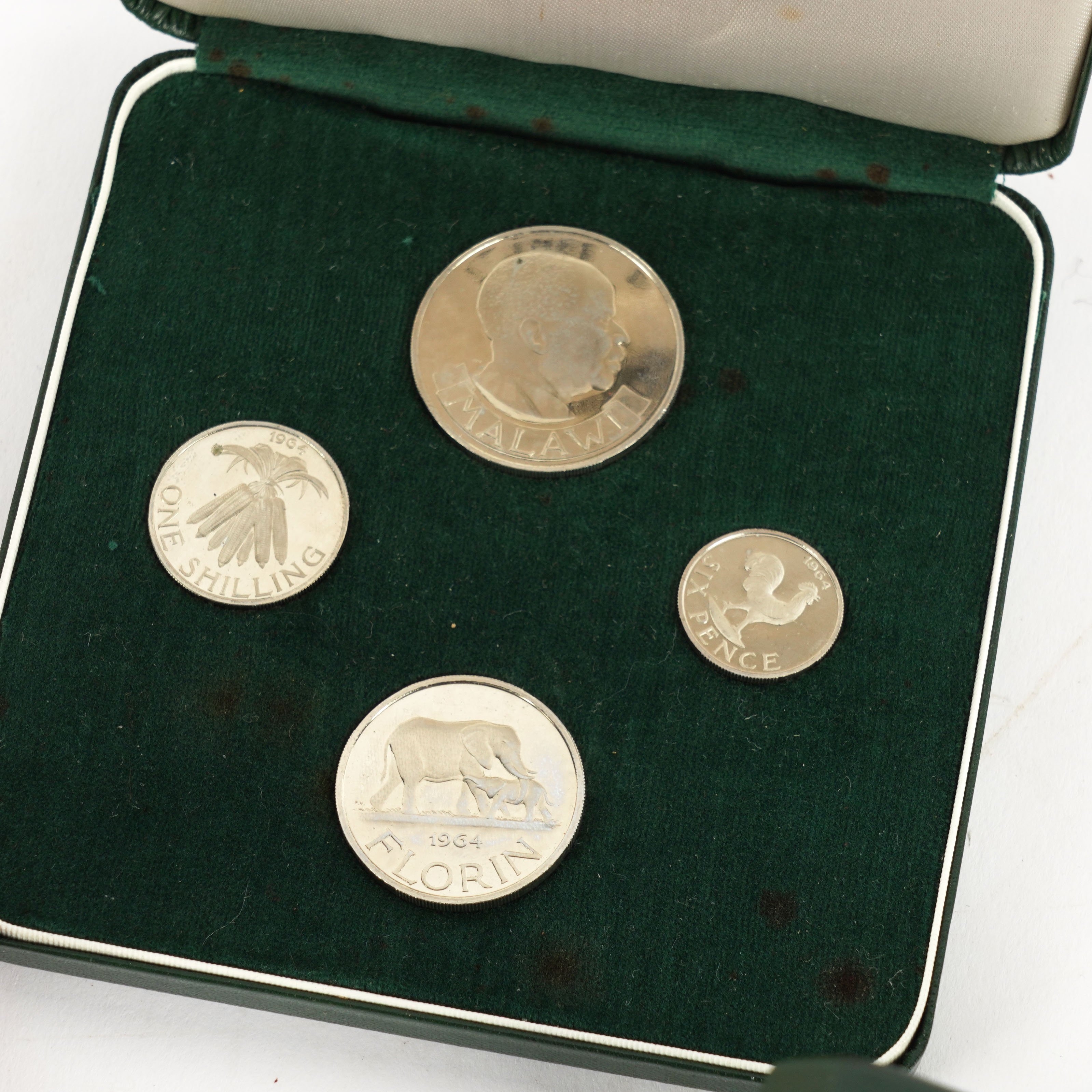 To include; a Zambia five coin proof set, a Zambia five shillings 1965, a Bhutan four coin set 1966, a Malawi four coin proof set 1964, a New Zealand seven coin proof set 1967, a St Helena twenty-five pence 1973, a Guyana five coin proof set 1967, a Gibraltar proof crown 1967 and further items