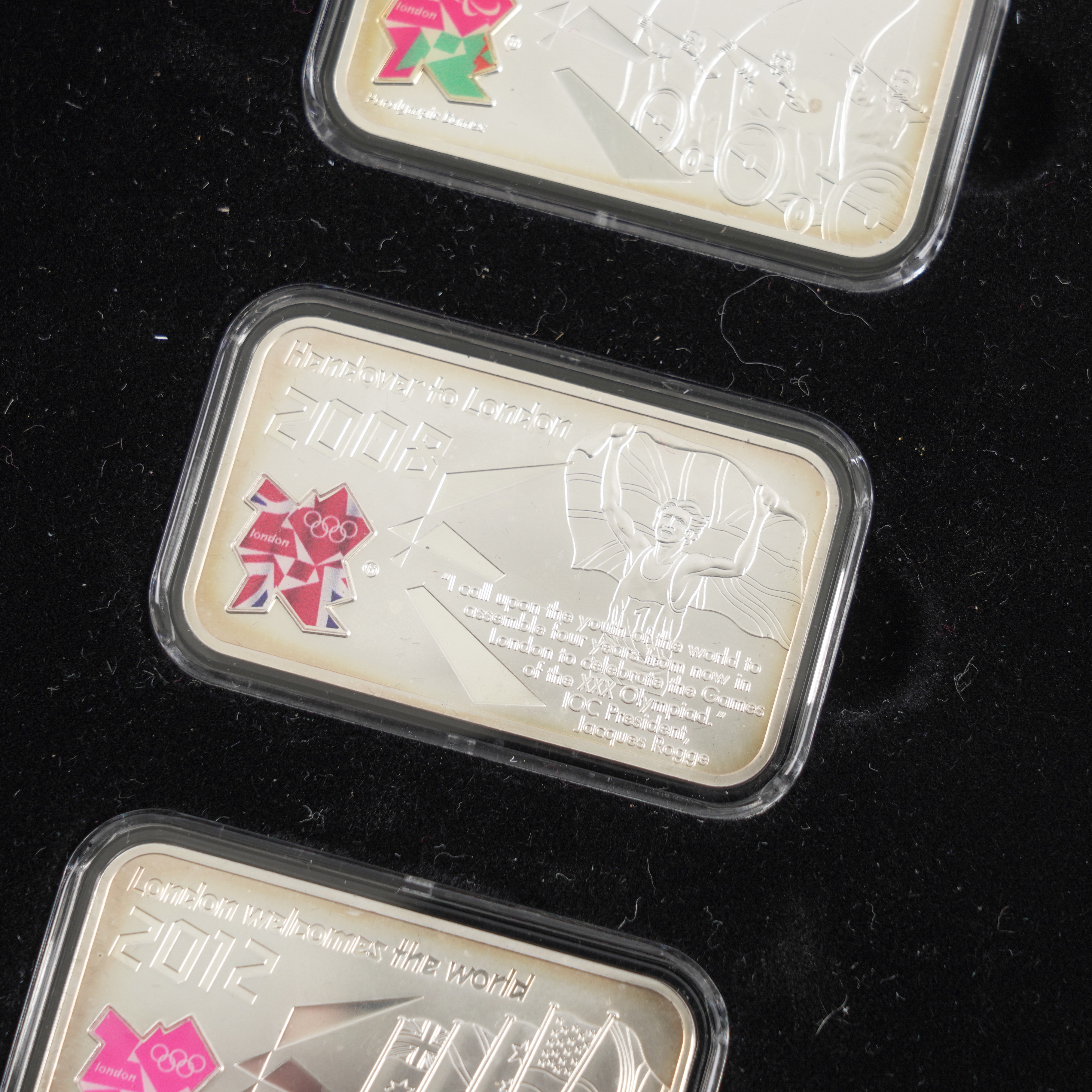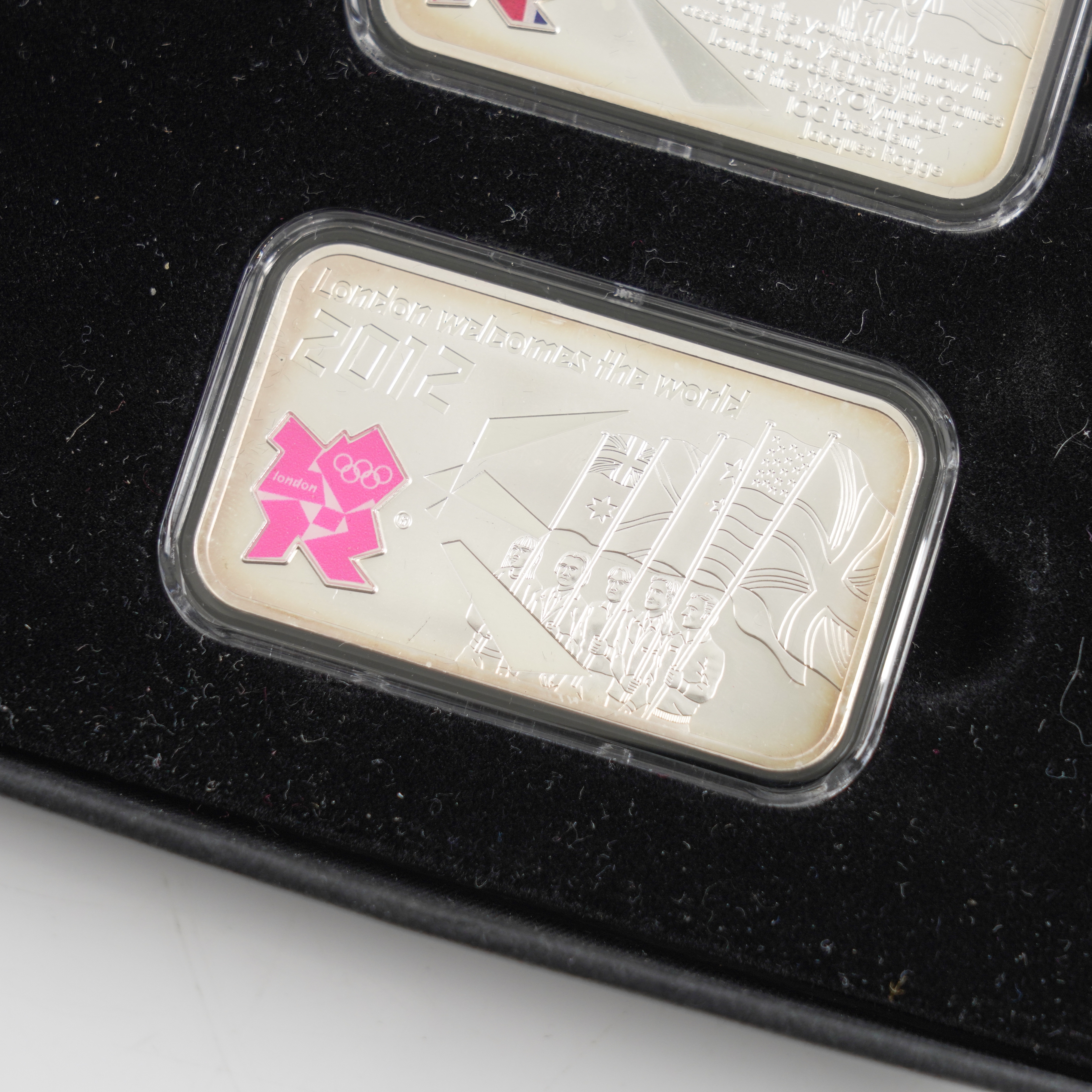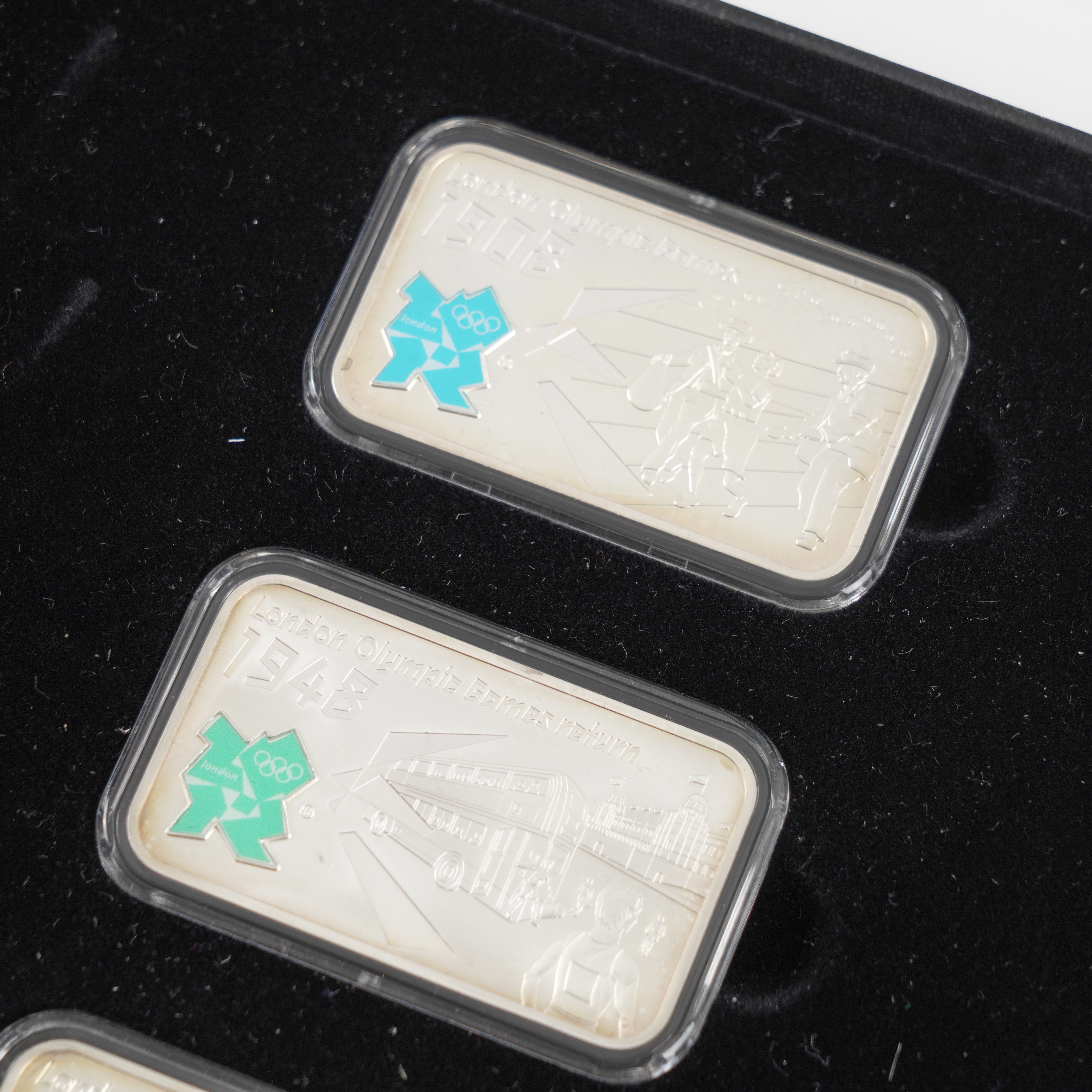 Detailed The Road To London 2012 in commemoration of The Olympic Games, the ingot are struck in silver 99.9% pure, the weight of each ingot is one ounce.