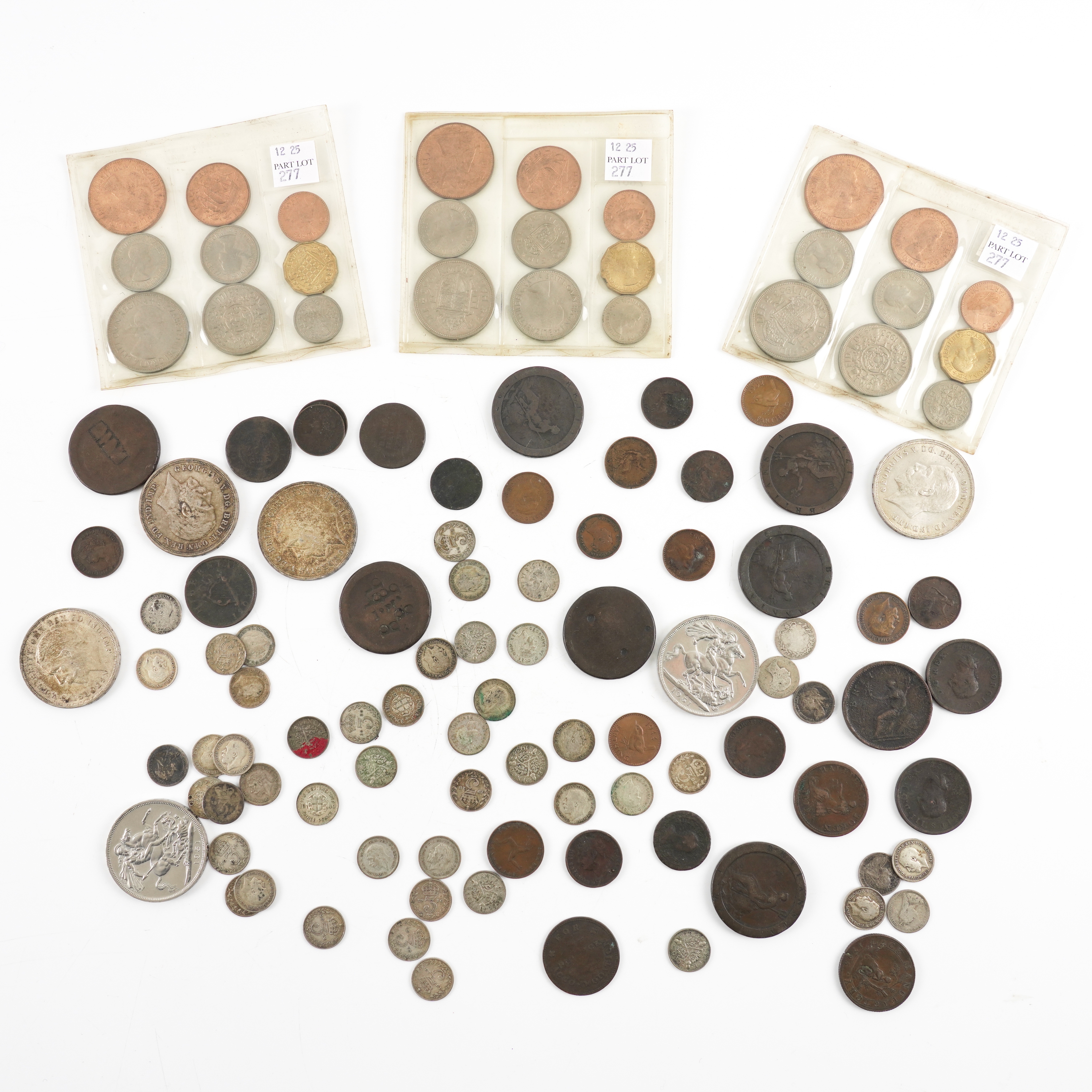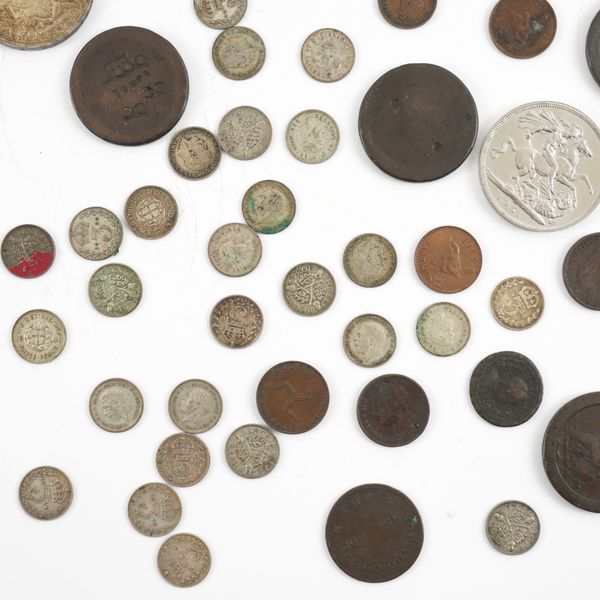 A GROUP OF MOSTLY BRITISH COINS AND A FEW TOKENS (QTY)