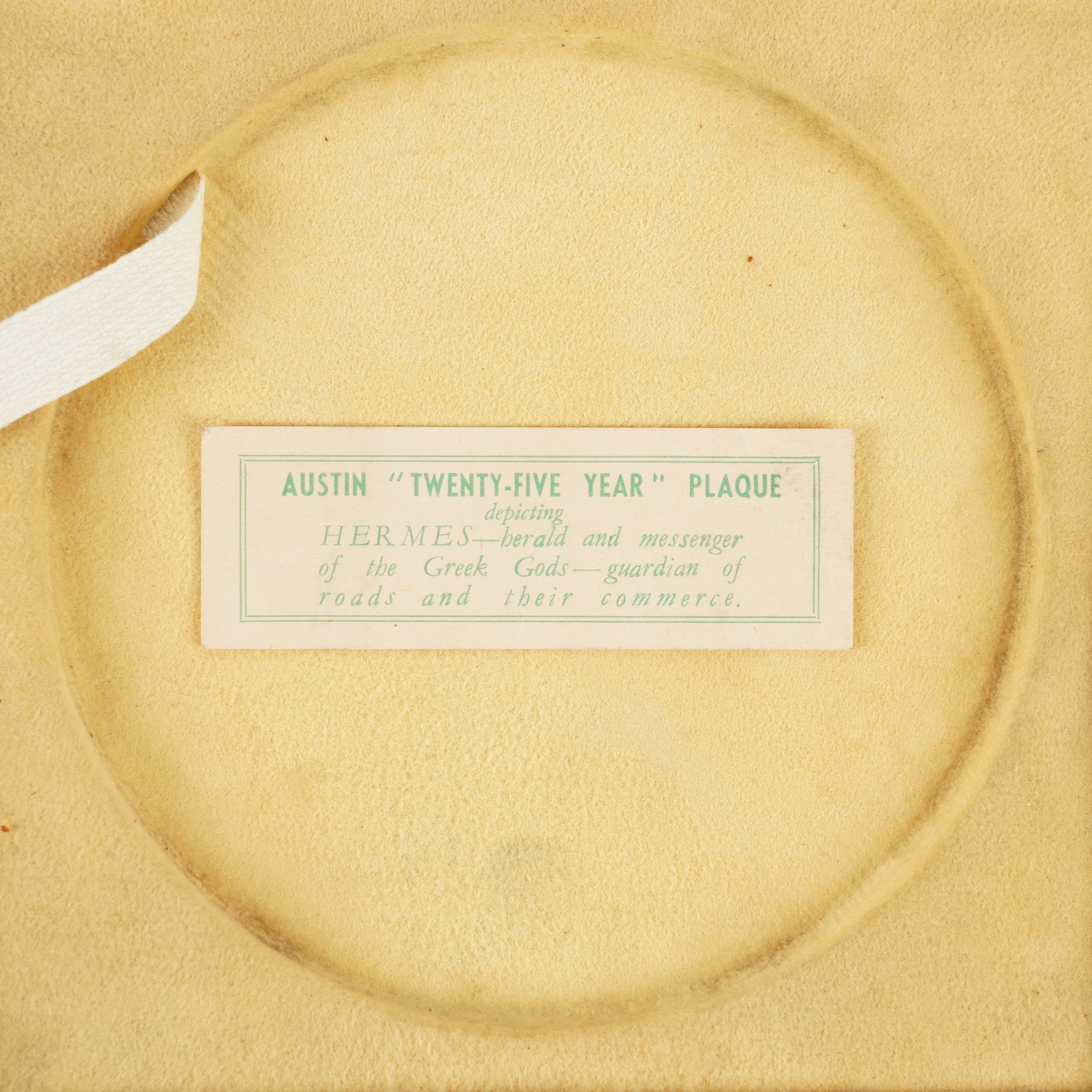 AN AUSTIN MOTORS 25 YEAR SILVER PLATED CIRCULAR PLAQUE