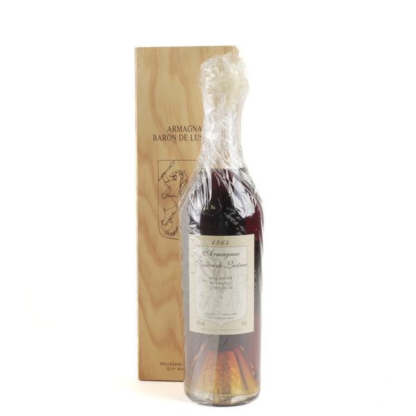 A BOTTLE OF BARON DE LUSTRAC ARMAGNAC 1964 AND FOUR OTHER BOTTLES (5)