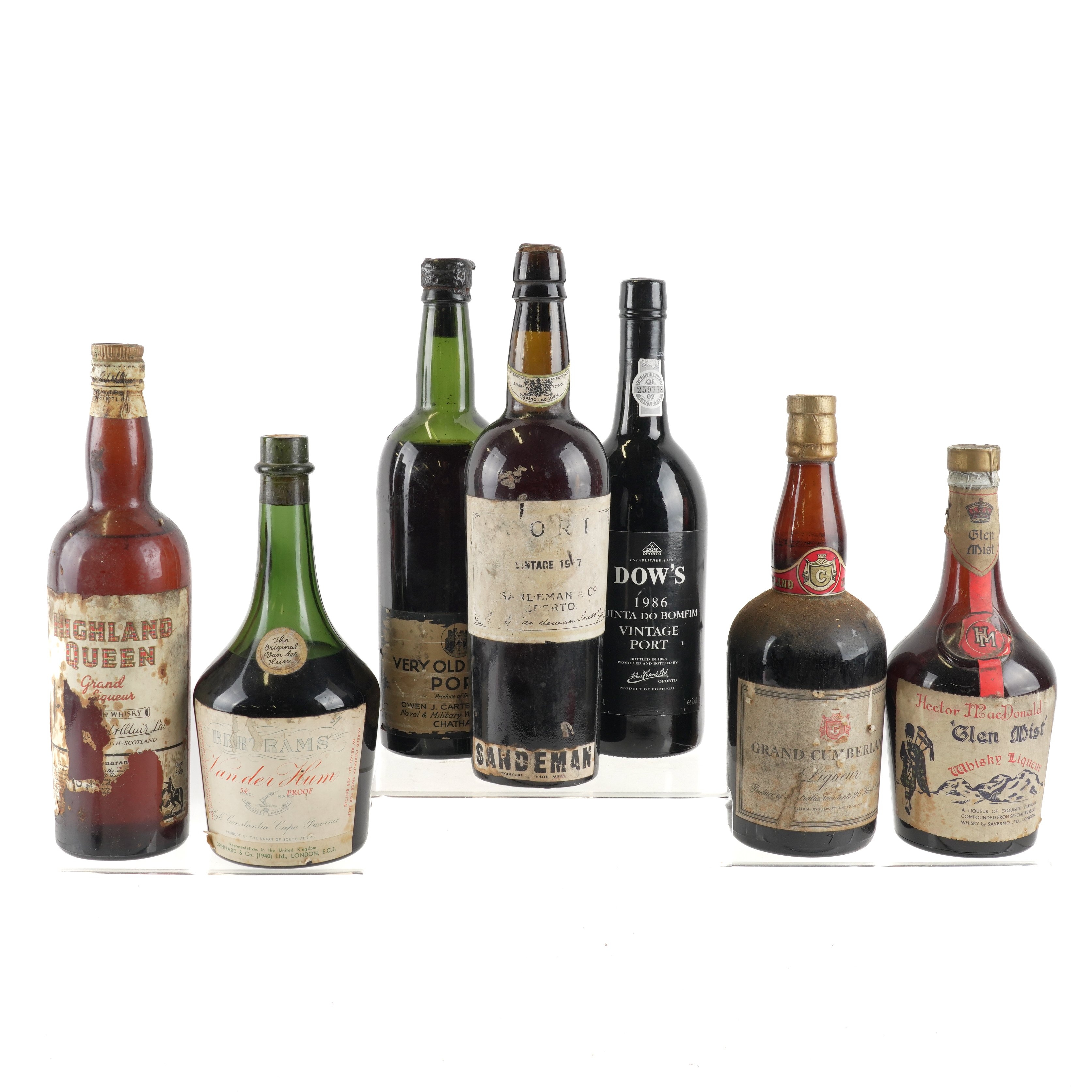 Also including a bottle of Dow's 1986 Quinta Do Bomfim Vintage Port, a bottle of Carter & Co Ltd, Chatham, Very Old Tawny Port, a bottle of Highland Queen Grand Liqueur, a bottle of Glen Mist Whisky Liqueur and two others