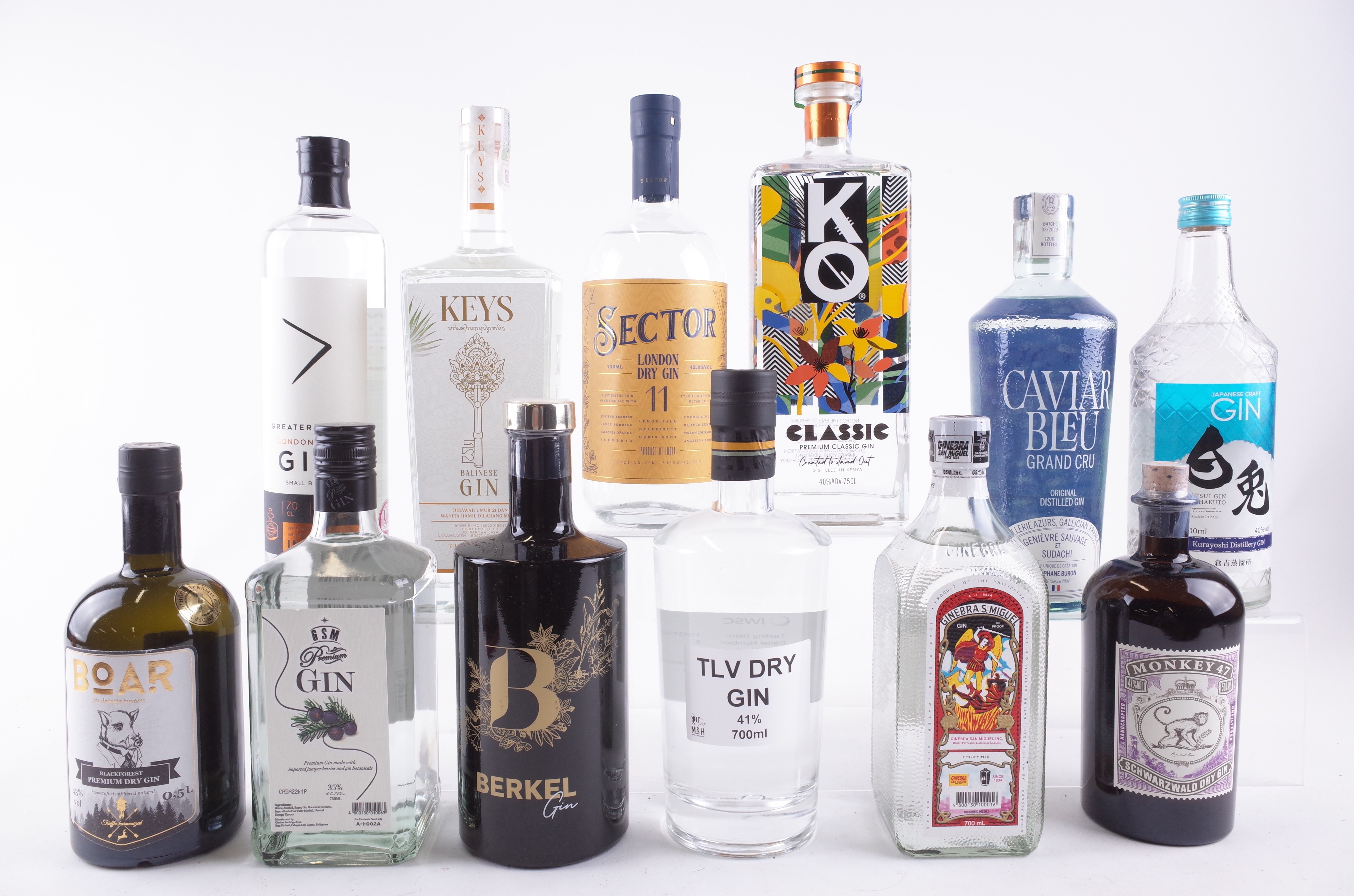 Boar Blackforest Premium Dry (50cl); GSM Premium; Berkel London Dry; M+H Distillery TLV Dry; Ginebra S Miguel; Monkey 47 Schwarzwald Dry (50cl); Kurayoshi Distillery Japanese Craft Matsui Gin The Hakuto; Caviar Bleu Grand Cru; KO Classic Premium; Sector London Dry; Keys Balinese Triple Distilled; Greater Than London Dry Small Batch