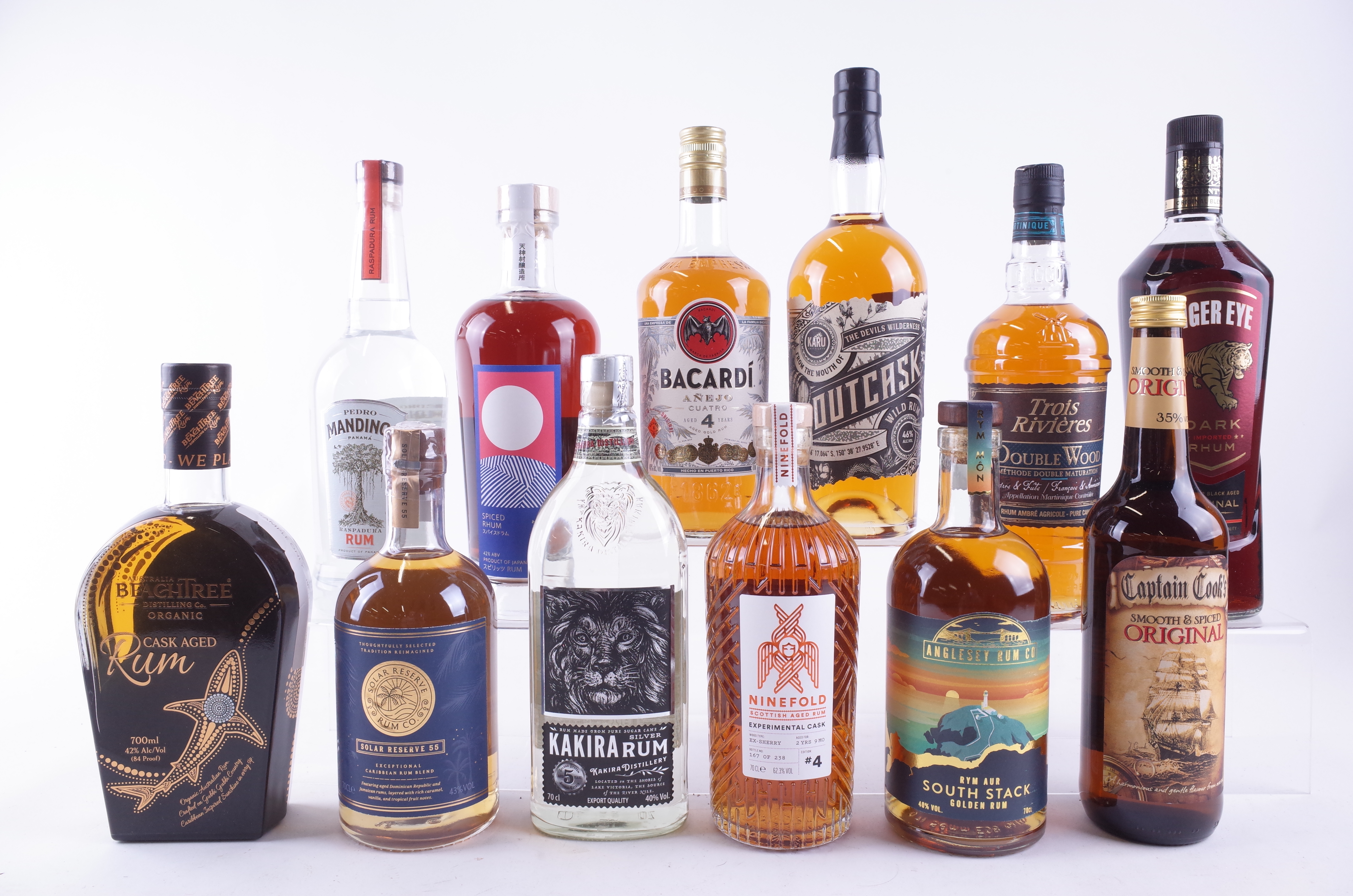 Beach Tree Distilling Organic Cask Aged; Solar Reserve Rum Co Solar Reserve 55; Kakira Distillery Kakira Silver; Ninefold Experimental Cask; Anglesey Rum Co South Stack Golden; Captain Cook's Smooth + Spiced Original; Tiger Eye Original Dark (1L); Trois Rivières Double Wood; Karu Outcask The Devil's Wilderness Wild; Bacardí Añejo Aged 4 Years; Aohara Spiced Japanese; Pedro Mandinga Paspadura