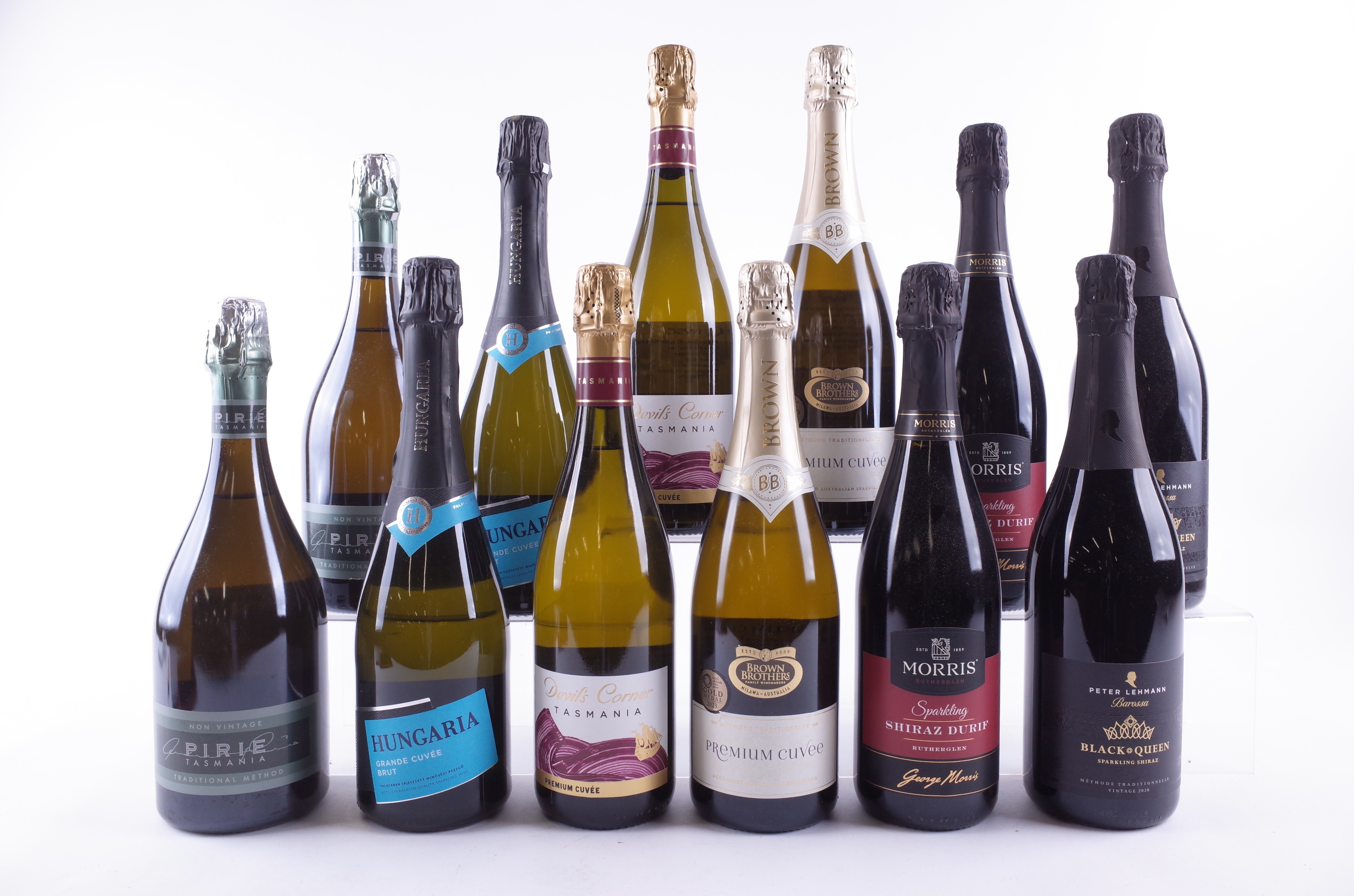 Pirie 2 x Brut NV; Törley 2 x Hungaria Grande Cuvée Brut NV; Devil's Corner 2 x Premium Cuvée Brut NV; Brown Brothers 2 x Premium Cuvée Brut NV; Morris Wines 2 x Shiraz-Durif NV; Peter Lehmann 2 x Black Queen Shiraz 2020