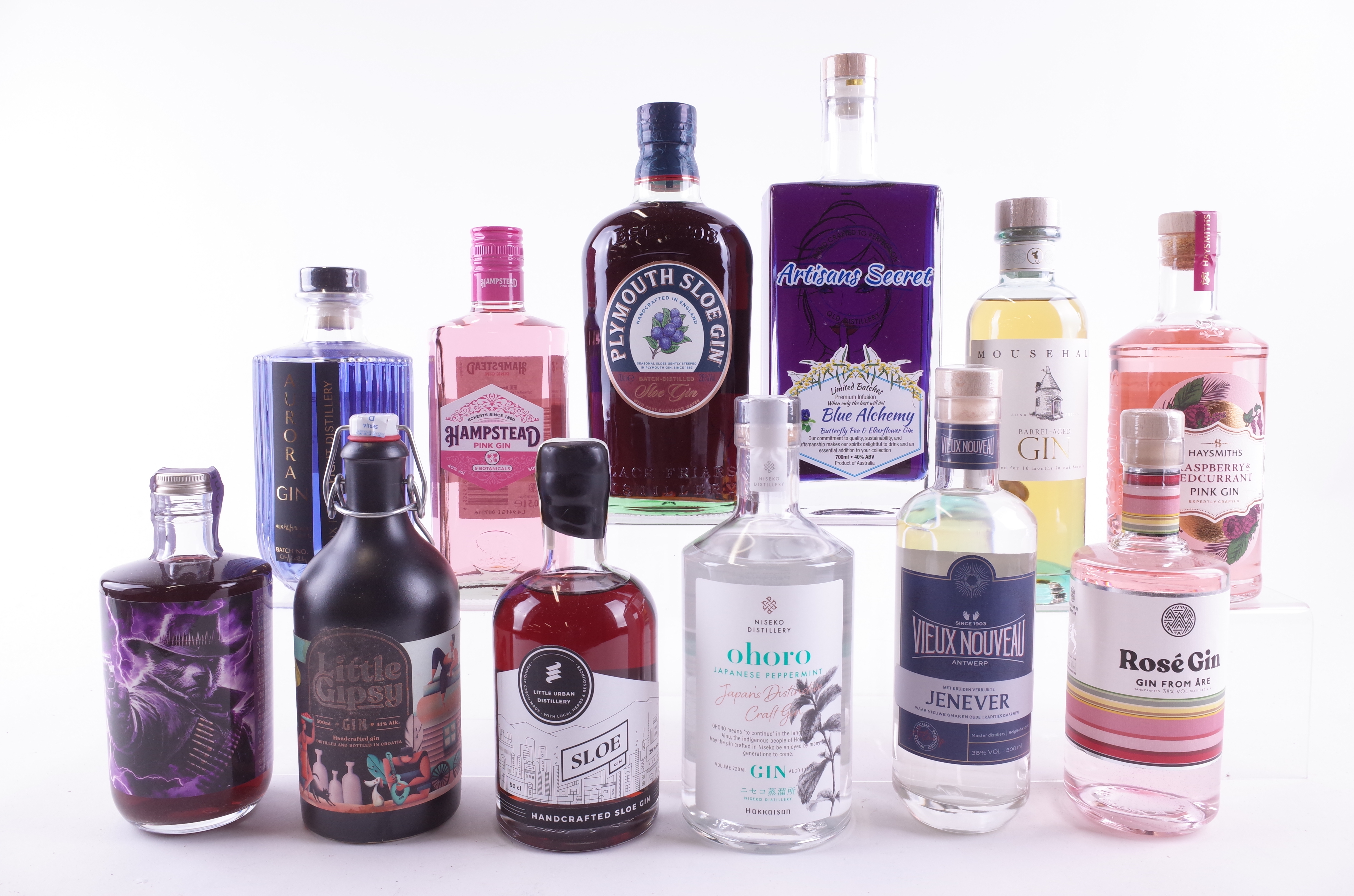 Blue Rabbit Distillery The 7th Gin Deep Purple Style Blueberry (50cl); Little Gipsy Wood Finished (50cl); Little Urban Distillery Sloe (50cl); Niseko Distillery Ohoro Japanese Peppermint; Vieux Nouveau Jenever (50cl); Åre Rosé (50cl); Haysmiths Raspberry + Redcurrant; Mousehall Barrel-Aged (50cl); Artisans Secret Limited Batches Blue Alchemy; Plymouth Batch-Distilled Sloe; Hampstead Pink (50cl); Six Point Eight Distillery Aurora