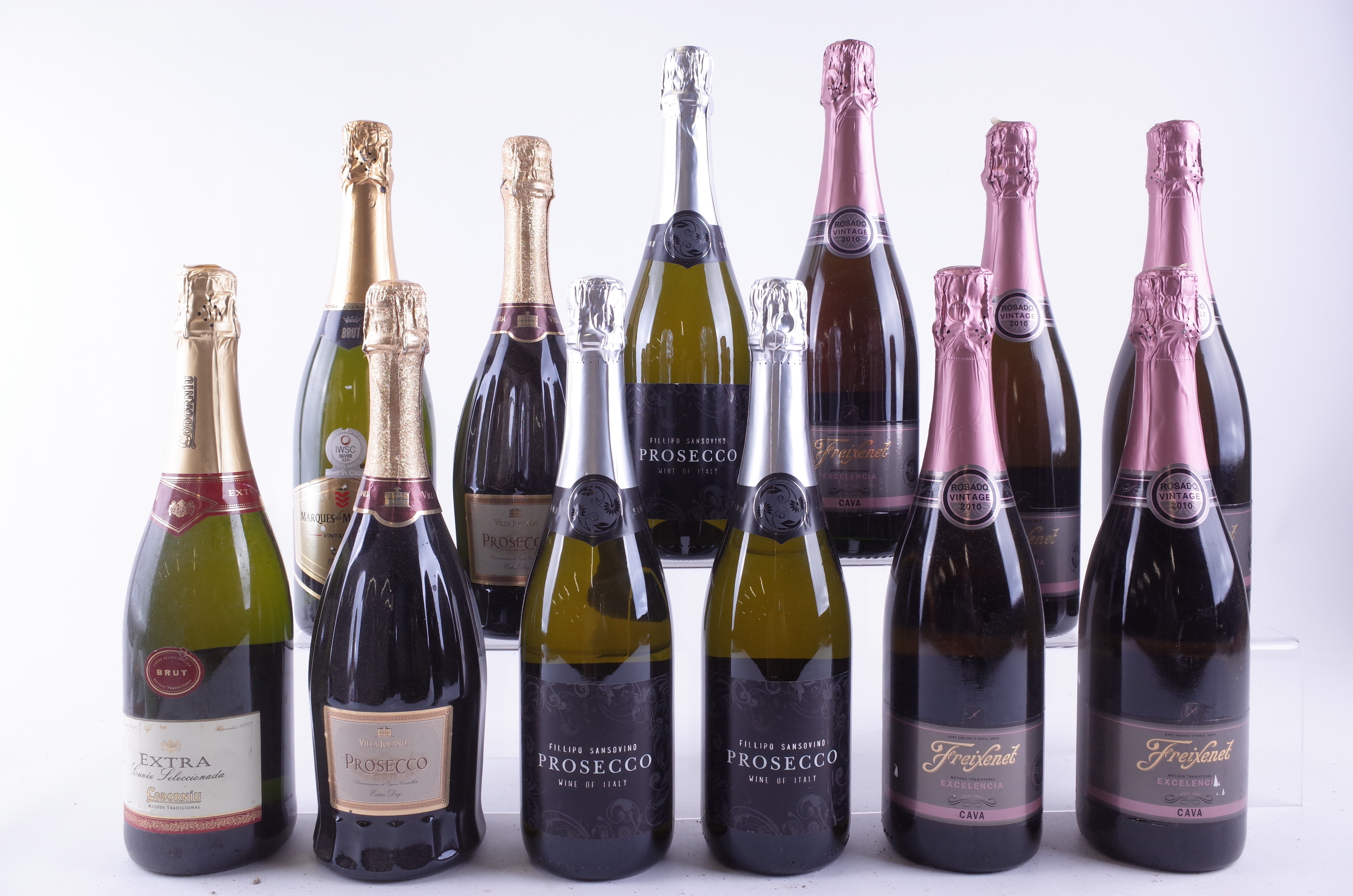 Codorníu Extra Cuvée Seleccionada Brut; Marques de Monistrol Cava 2006; Freixenet 5 x Excelencia Rosado Brut 2010; Filipo Sansovino 3 x Prosecco Extra Dry; Villa Jolanda 2 x Prosecco Extra Dry