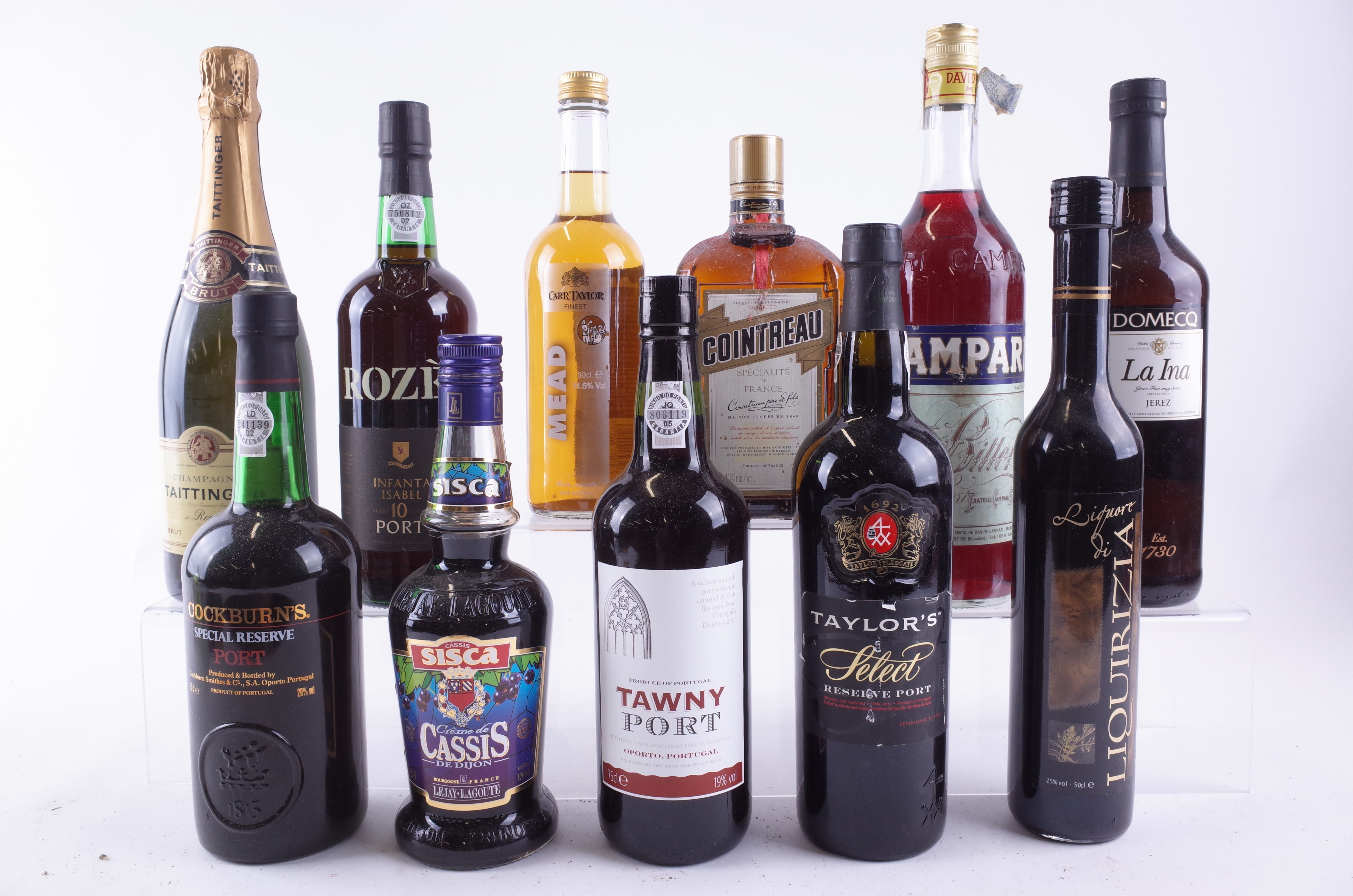 Taittinger Brut Reserve; Cockburn's Special Reserve Port; Rozès Infanta Isabel 10 YO Porto; Sisca Crème de Cassis (50cl); Carr Taylor Finest Mead (50cl); Asda Tawny Port; Taylor's Select Reserve Port; Liquore di Liquirizia (50cl); Campari Bitter (1L); Domecq La Ina Jerez; Cointreau Specialite (1L)