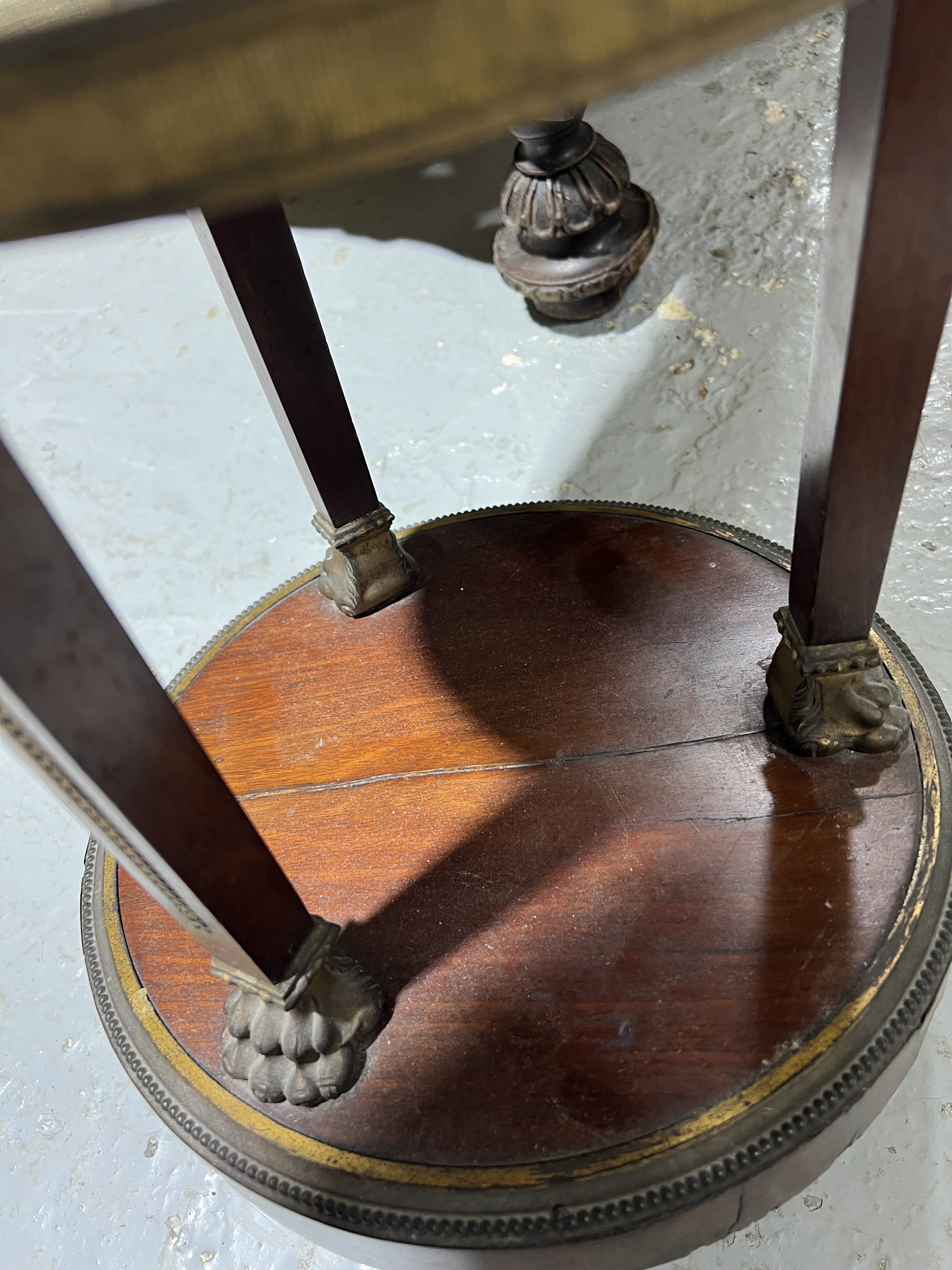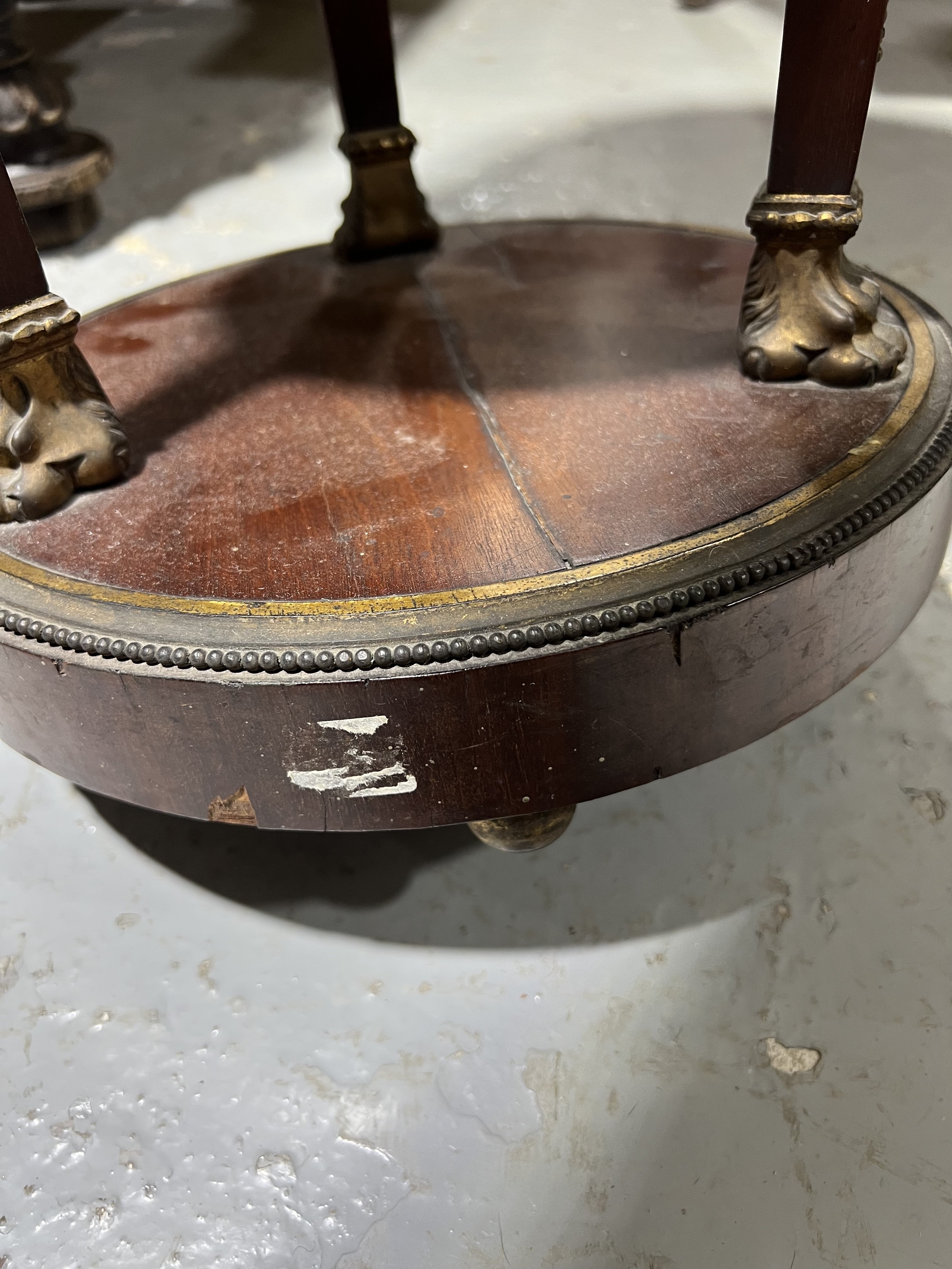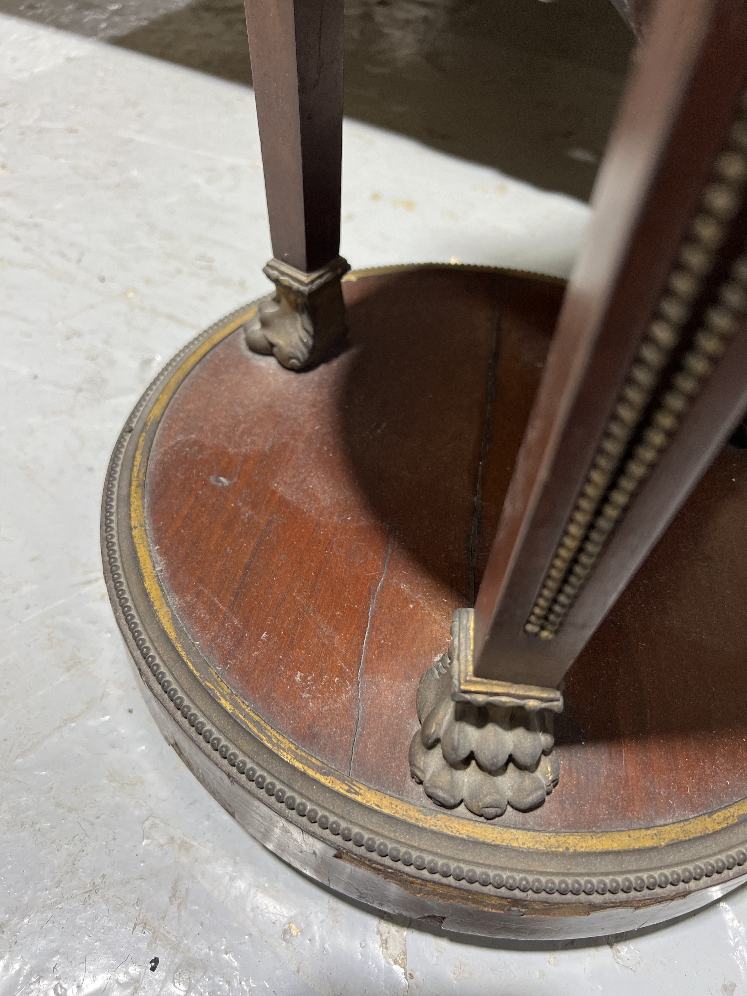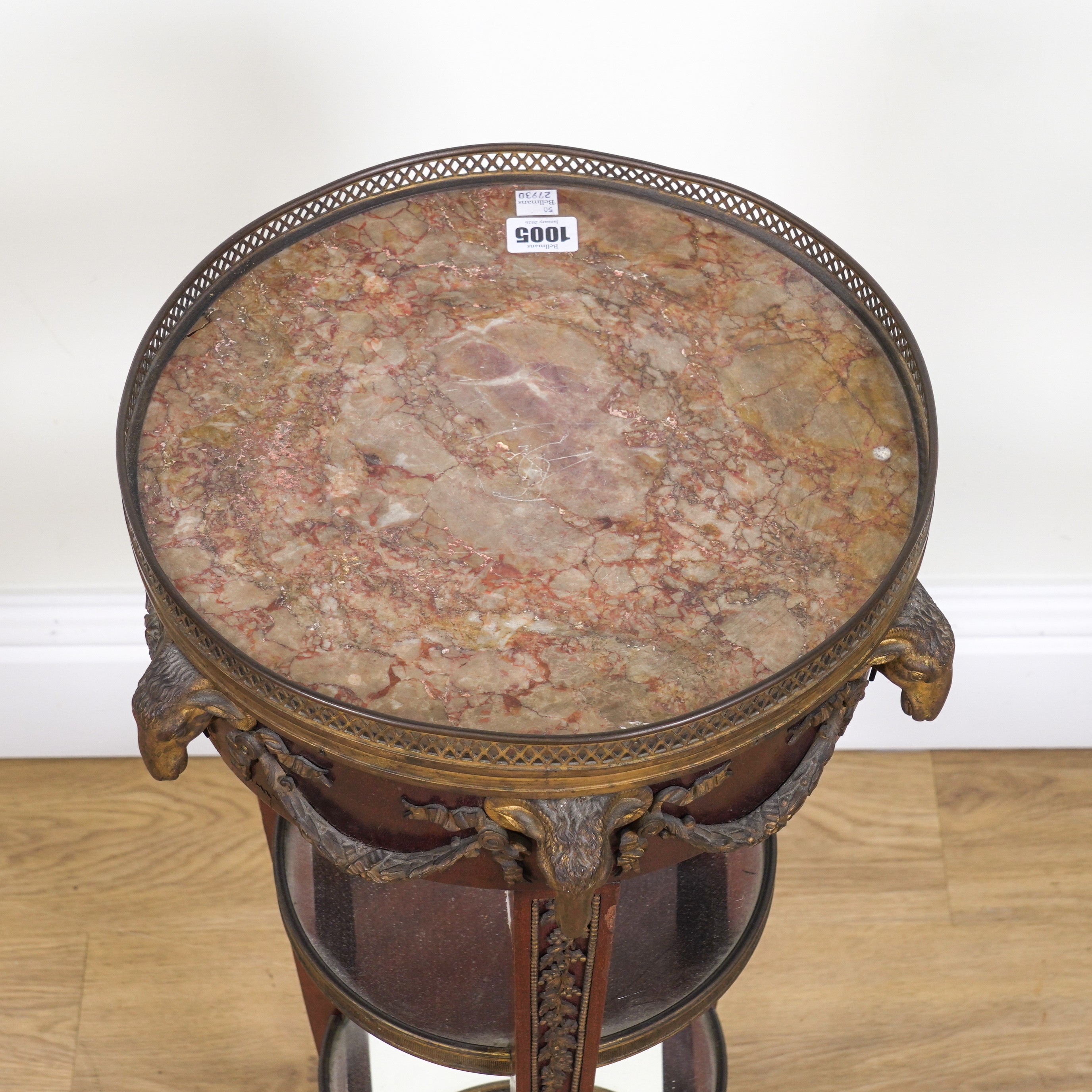 A FRENCH EMPIRE STYLE MAHOGANY GILT METAL MOUNTED THREE TIER JARDINIERE STAND