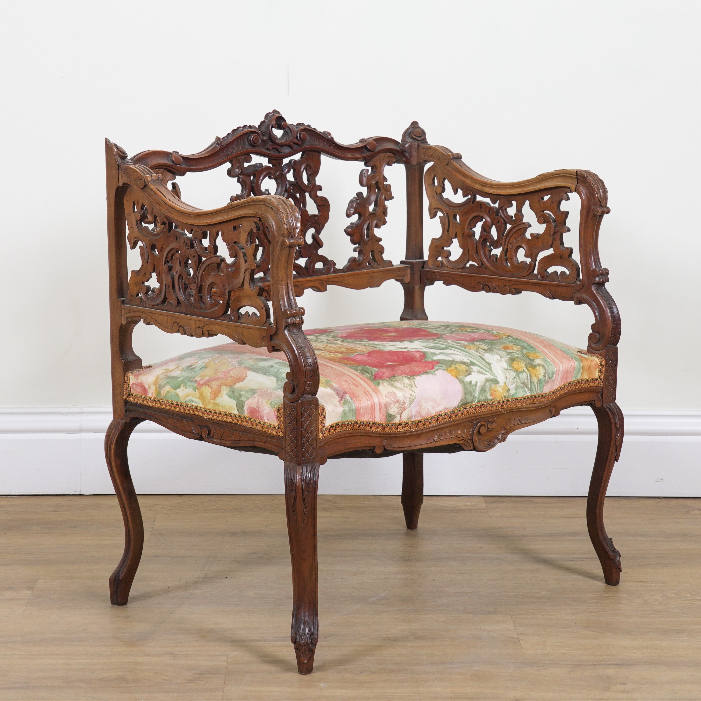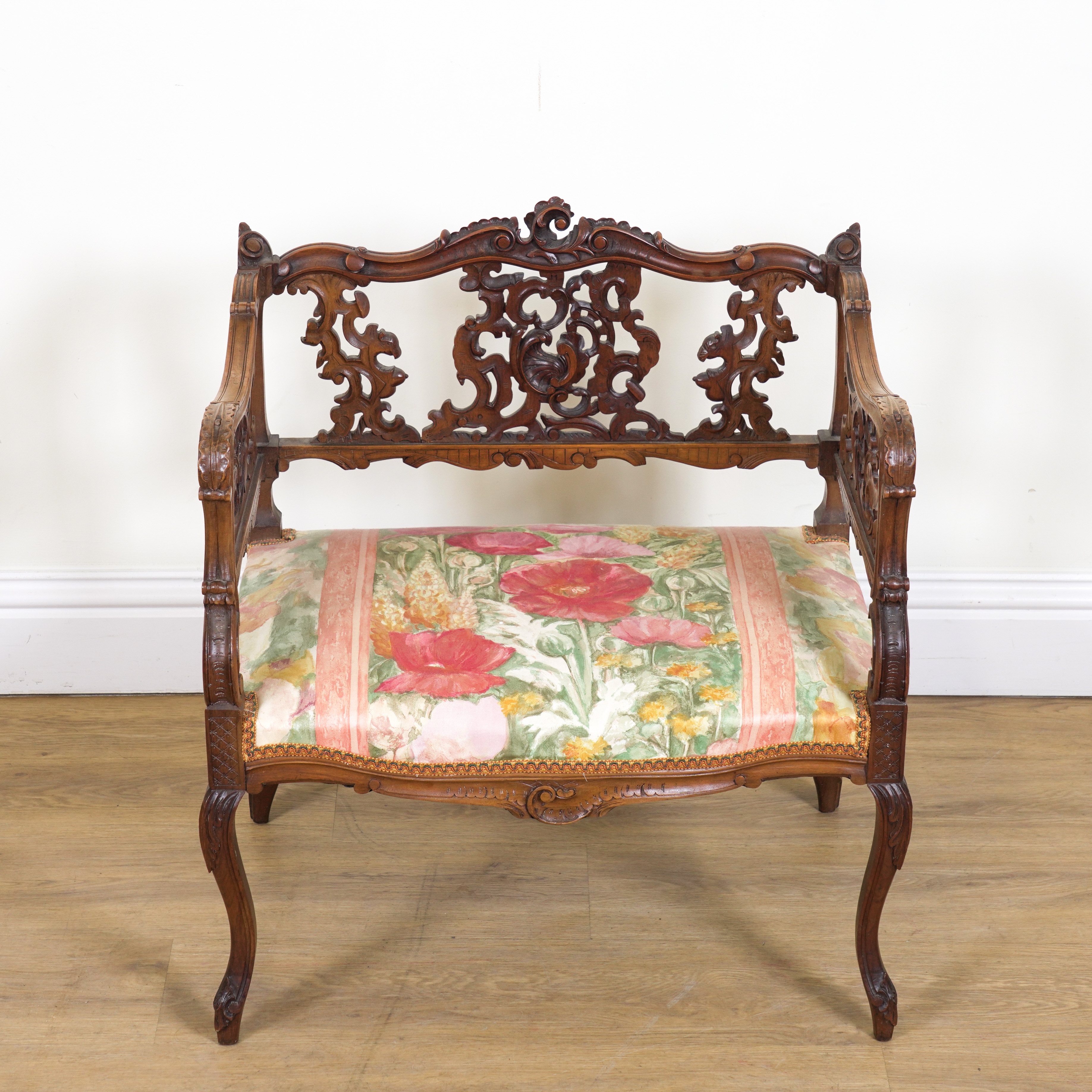 With pierced decoration on cabriole supports, 65cm wide; 68cm high