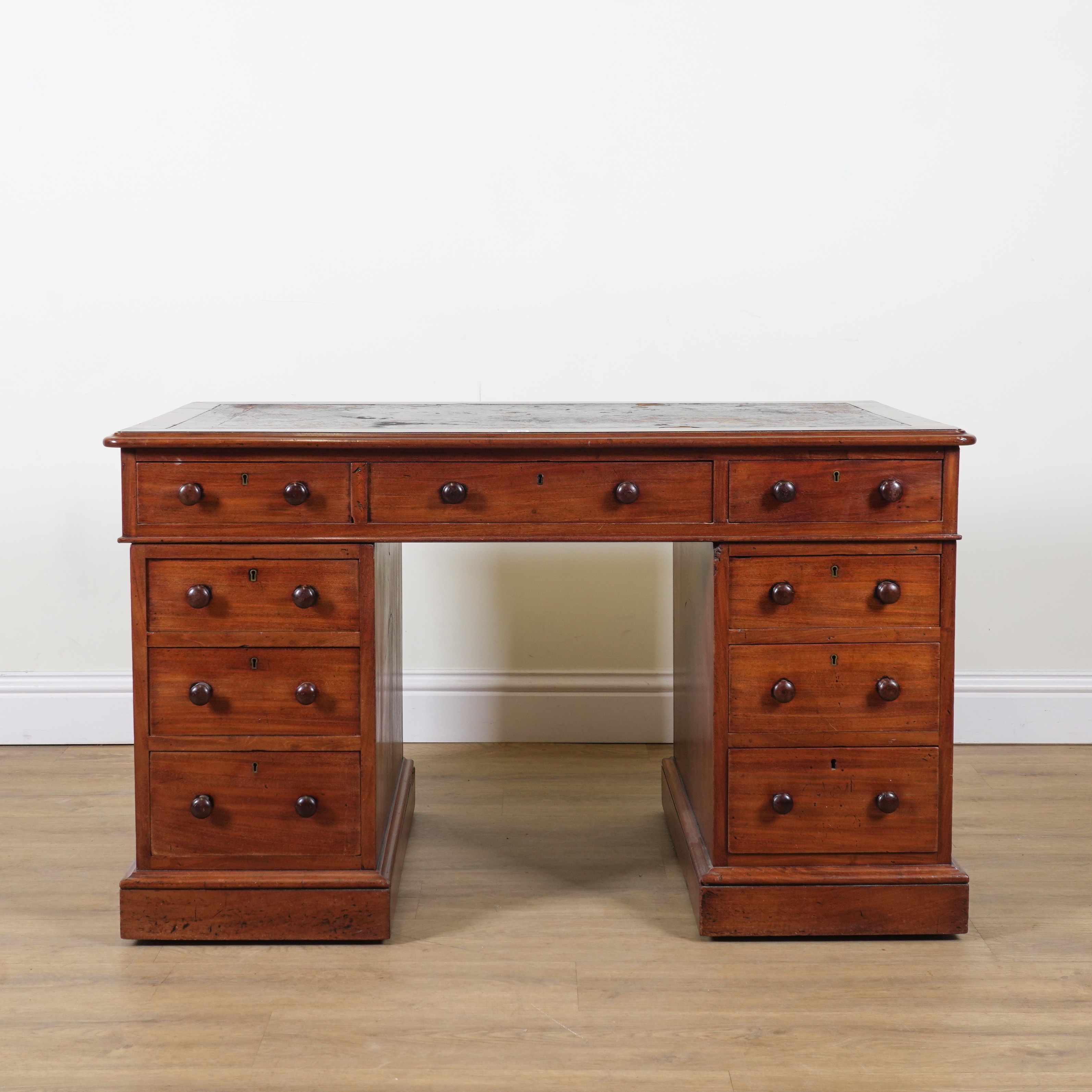 A VICTORIAN MAHOGANY PEDESTAL DESK