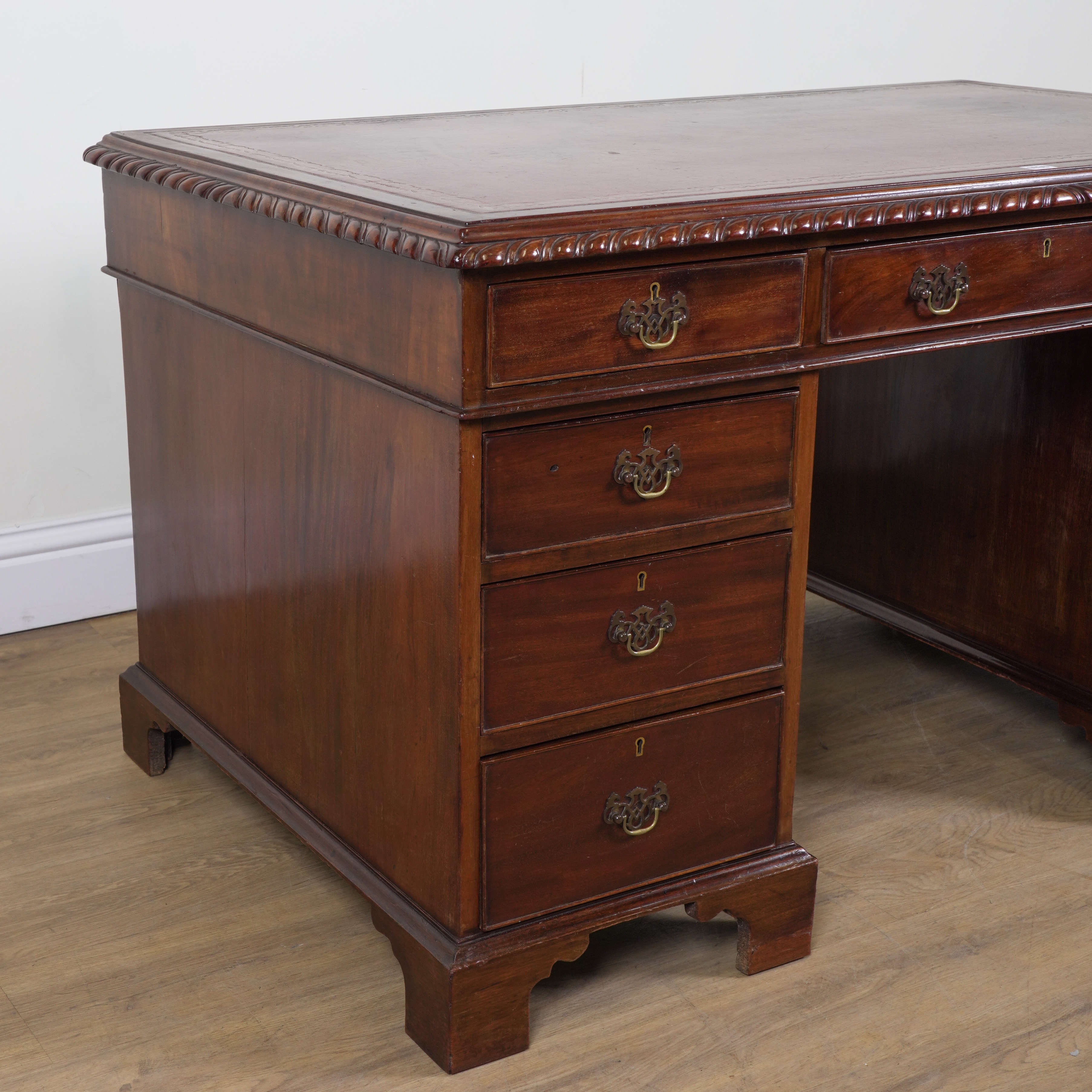 19th century, with nine drawers about the knee on bracket feet, 136cm wide; 82cm deep; 78cm high