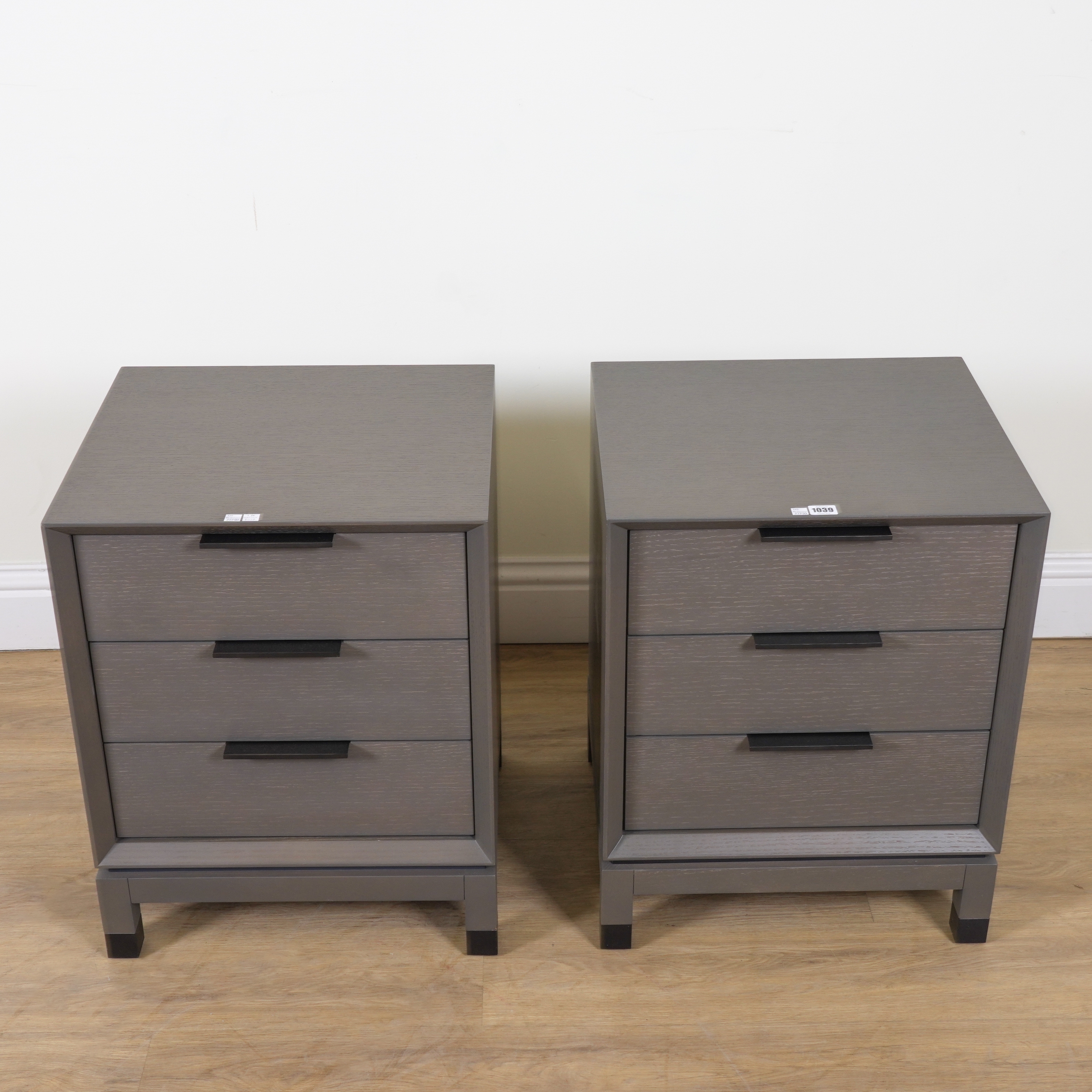 ROBERT LANGFORD, BAXTER 500; A PAIR OF GREY WASHED OAK THREE DRAWER BEDSIDE CHESTS (2)
