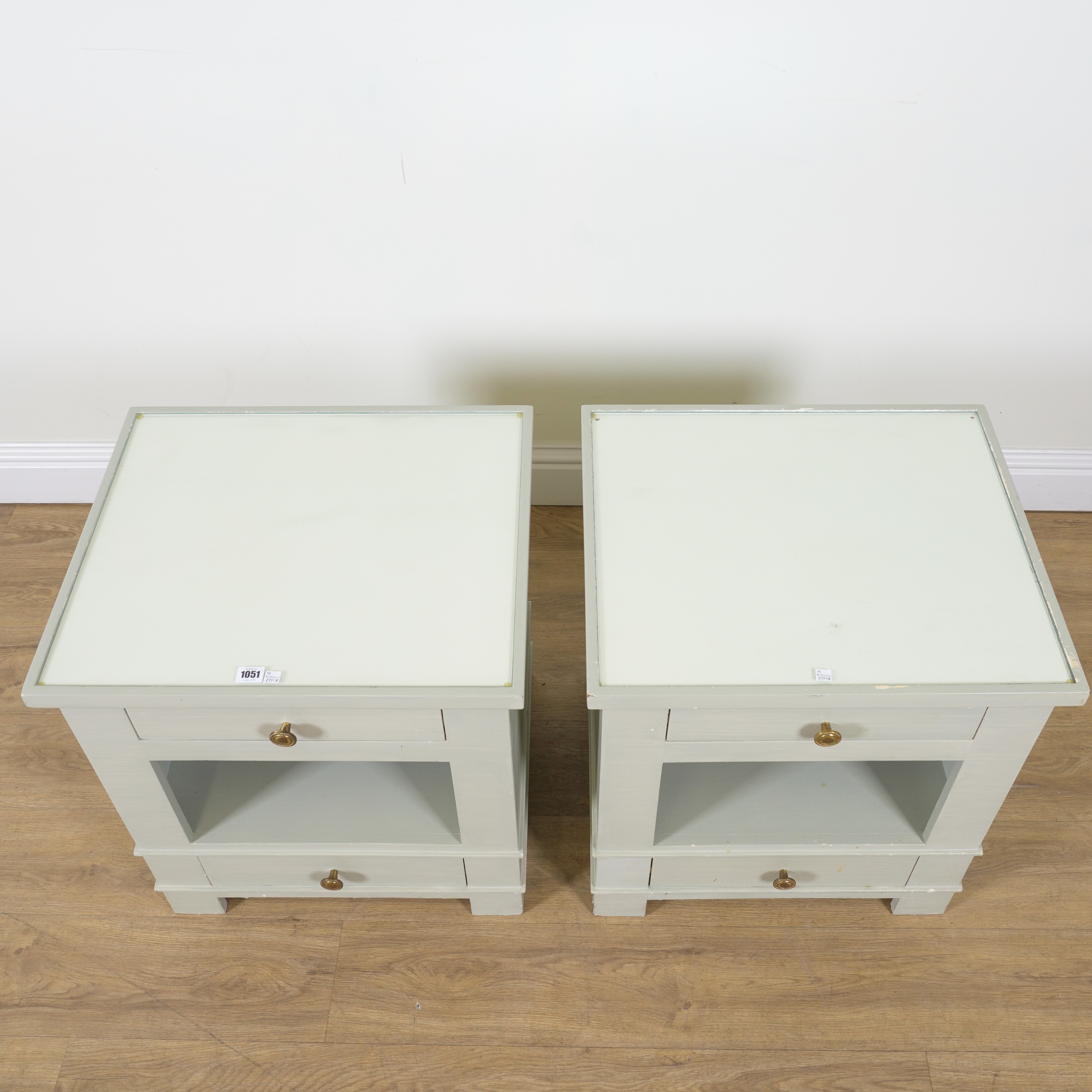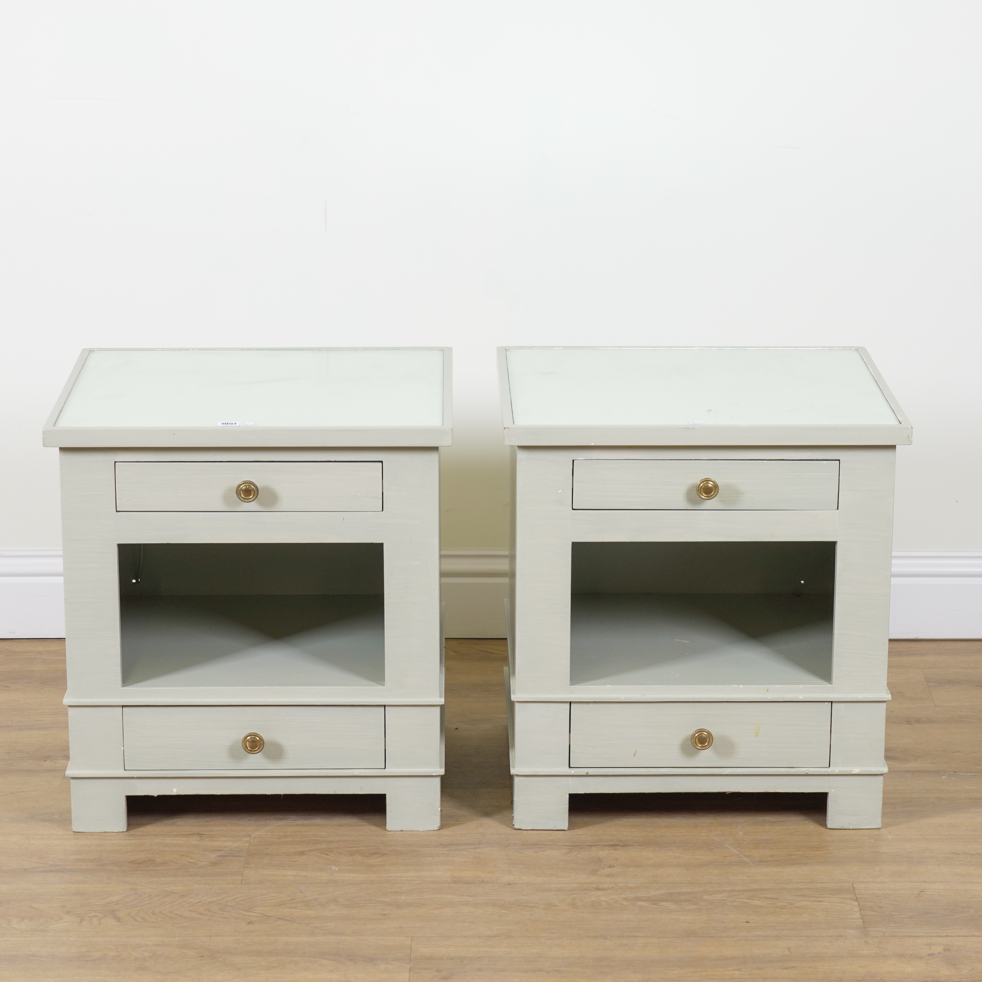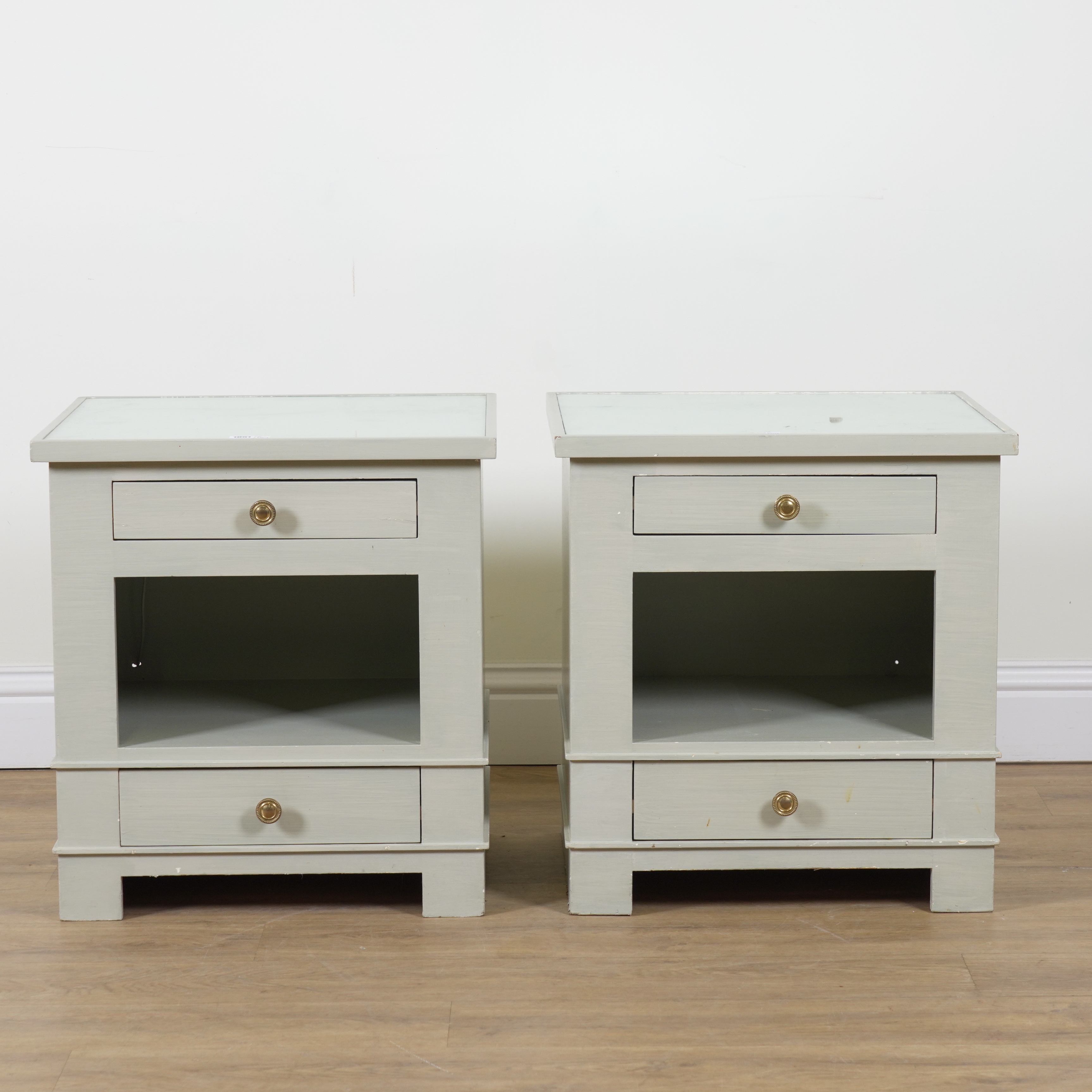 A PAIR OF GREY PAINTED TWO TIER BEDSIDE TABLES (2)