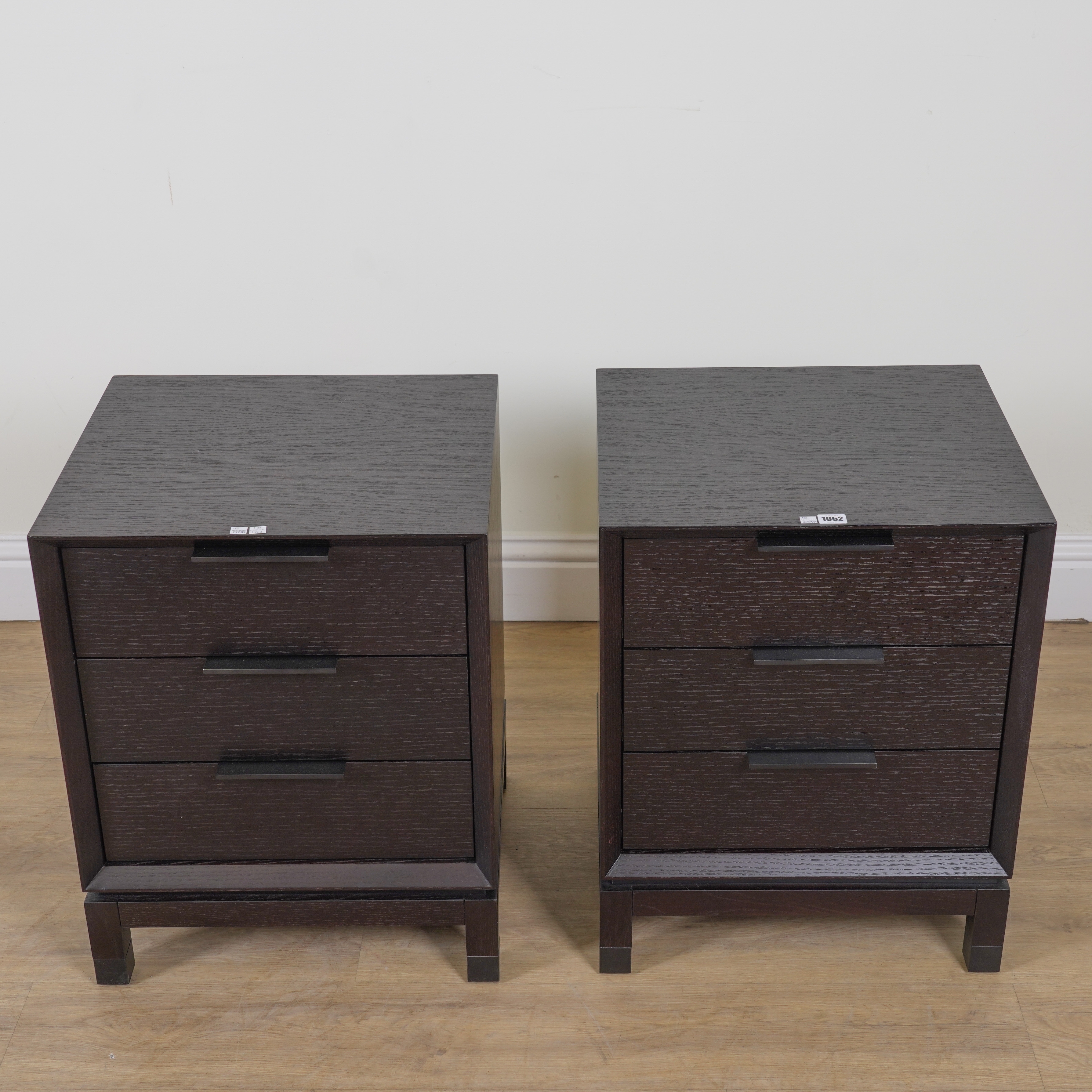 ROBERT LANGFORD, BAXTER 500; A PAIR OF BLACK WASHED OAK THREE DRAWER BEDSIDE CHESTS (2)