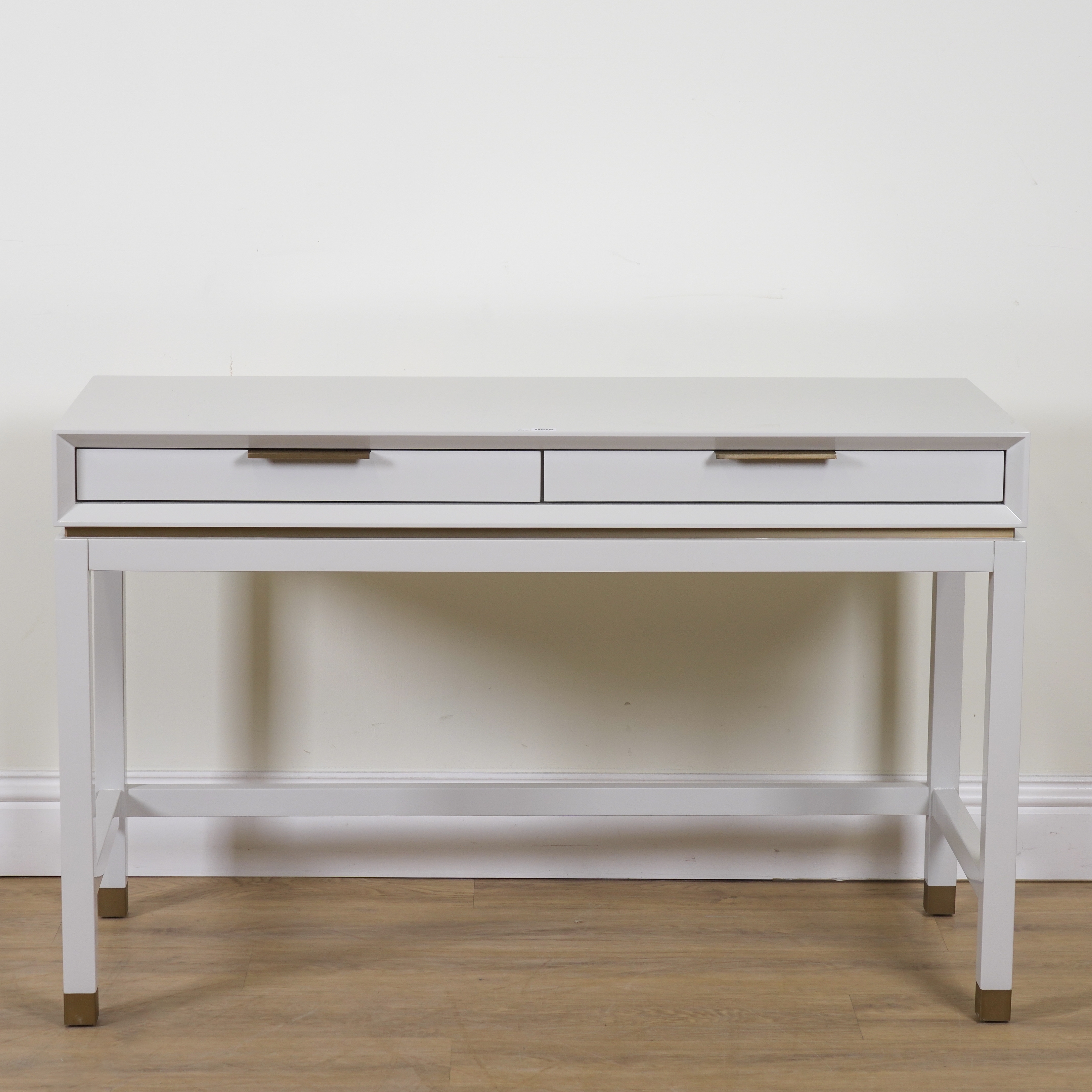ROBERT LANGFORD, BAXTER; A WHITE LACQUER TWO DRAWER DRESSING TABLE