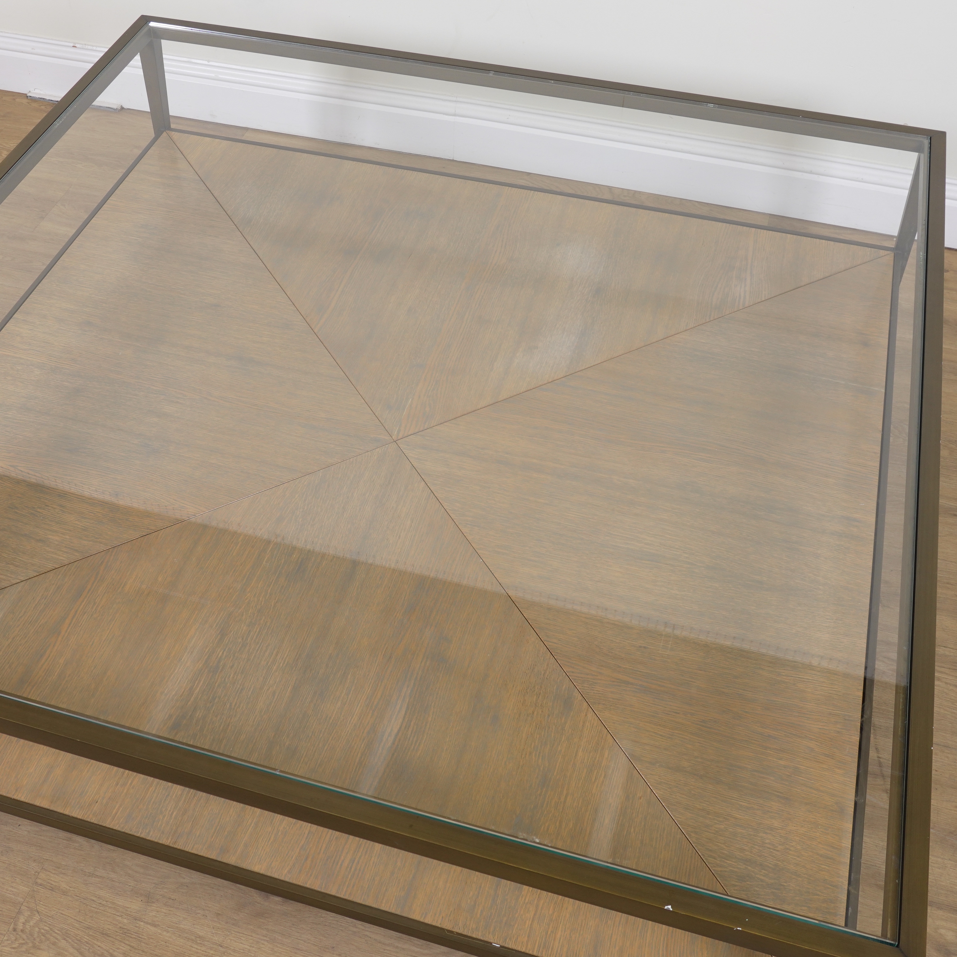 With inset glass top over hardwood platform, 150cm wide; 47cm high