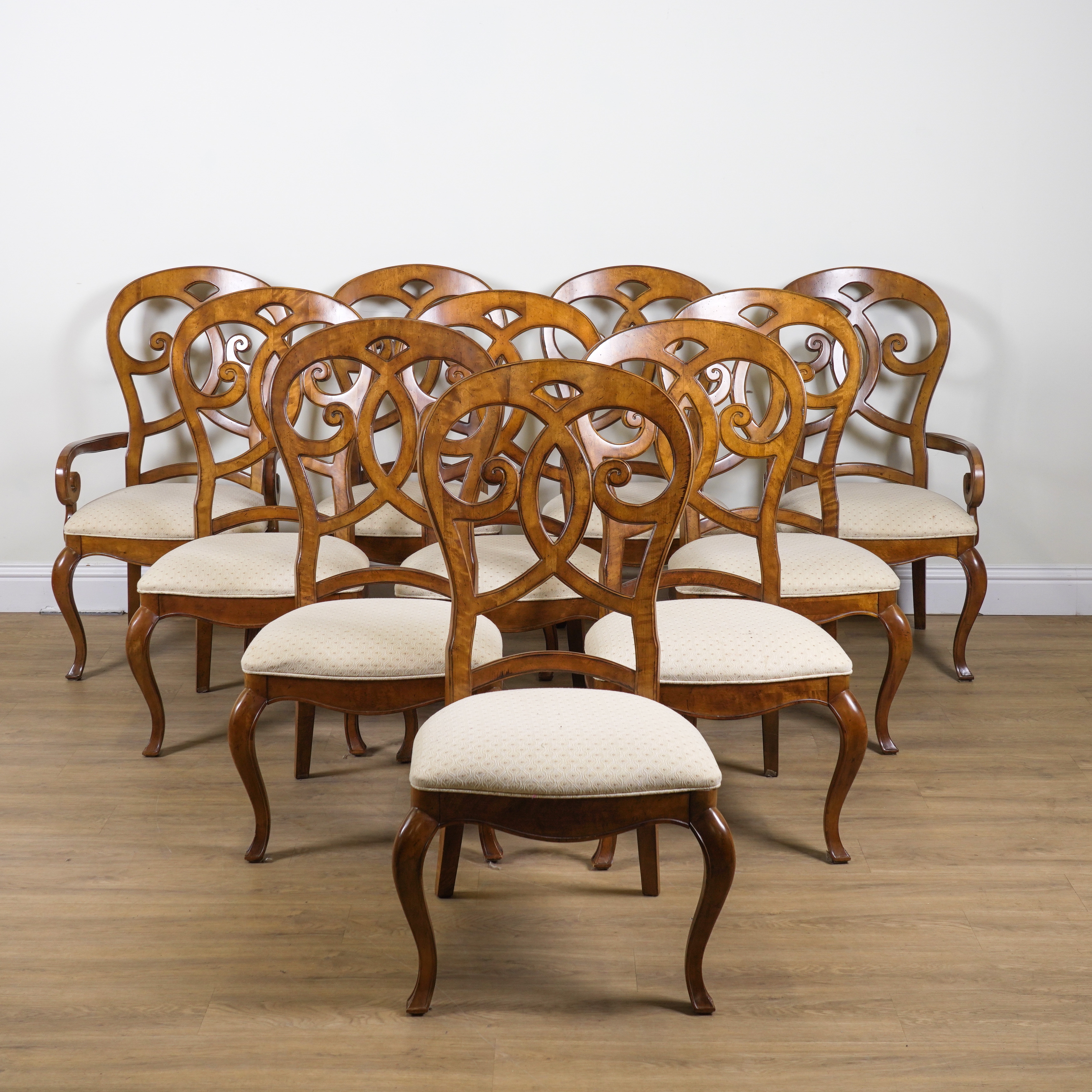 THOMASVILLE; A SET OF TEN STAINED BEECH DINING CHAIRS (10)