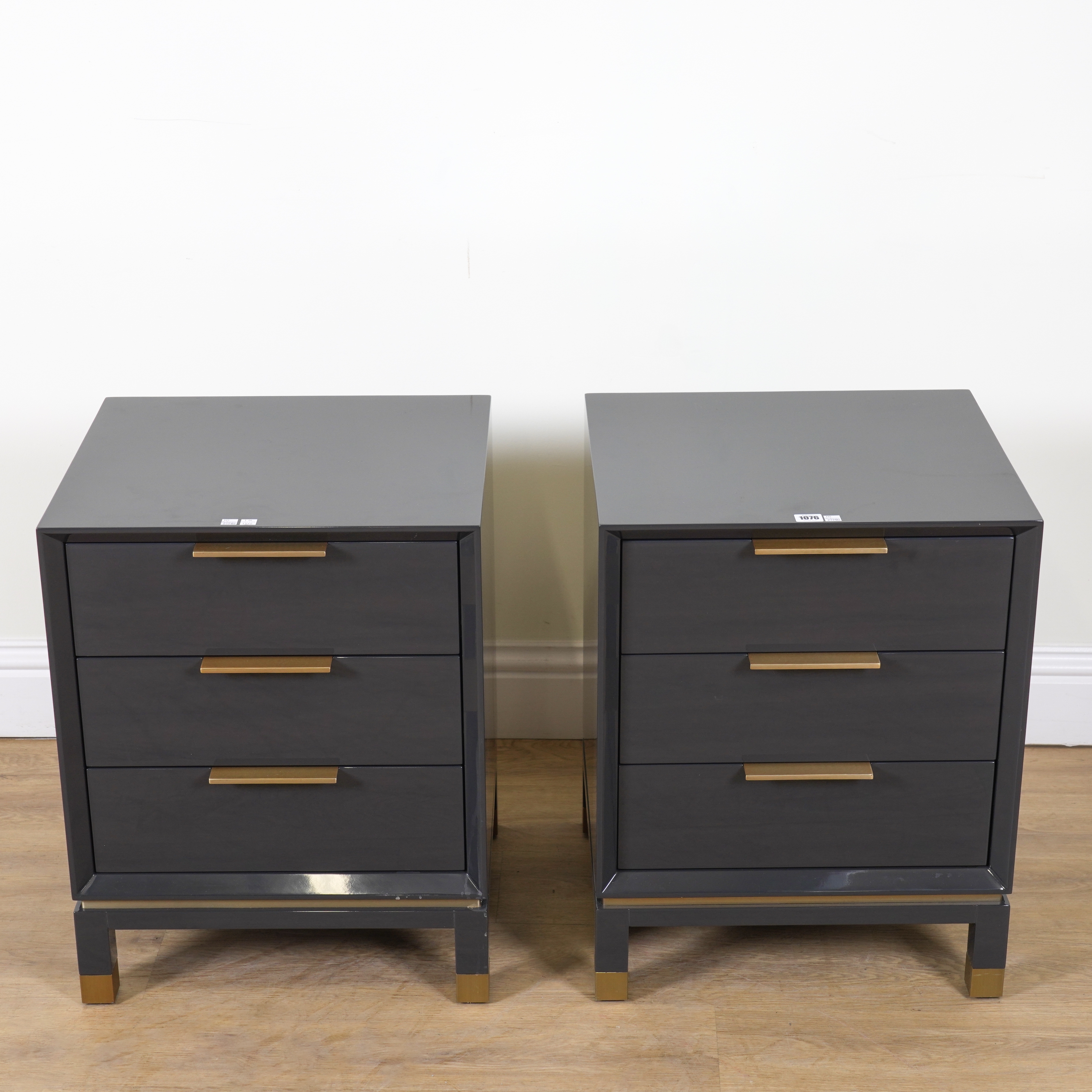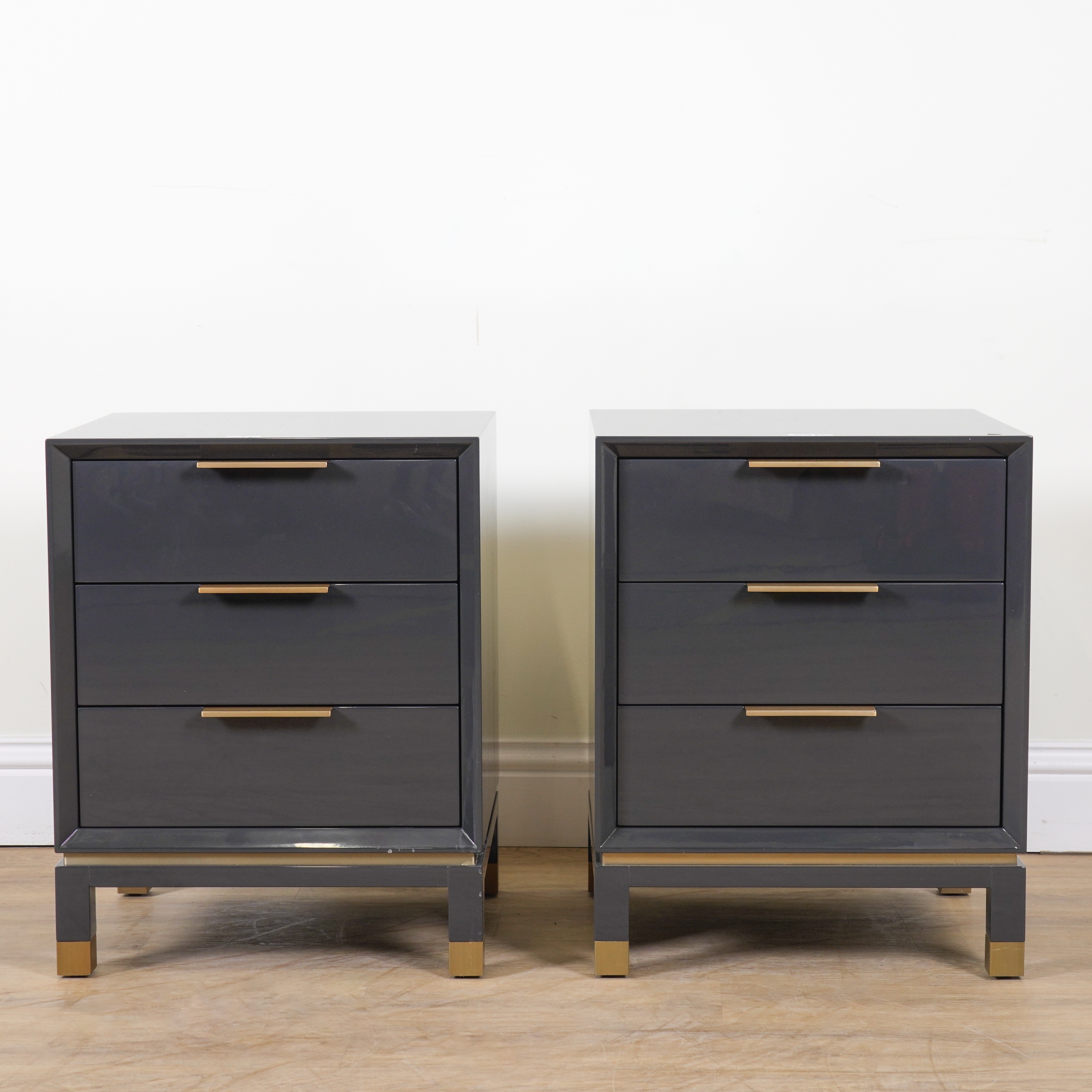 ROBERT LANGFORD, BAXTER 500; A PAIR OF GREY LACQUERED THREE DRAWER BEDSIDE CHESTS (2)
