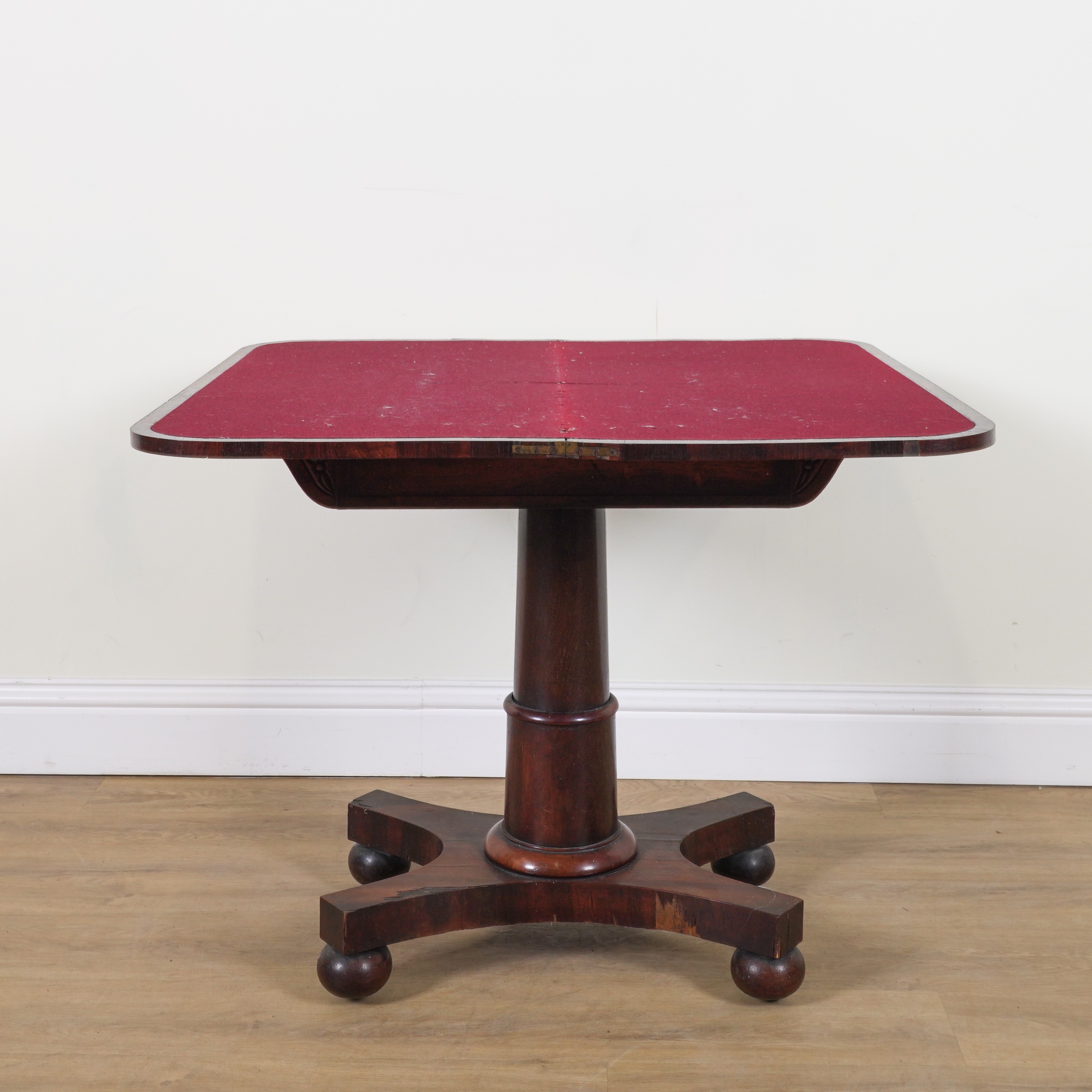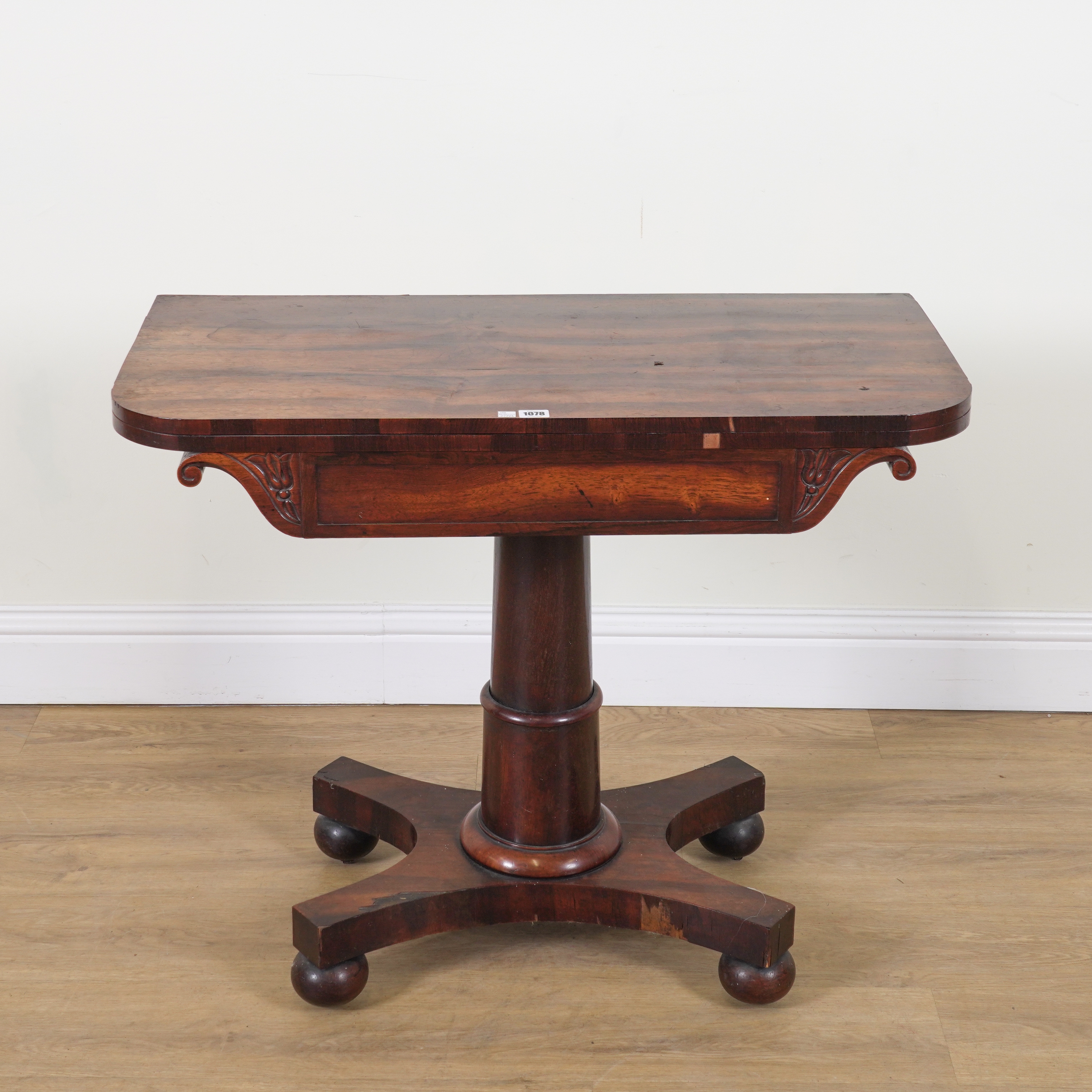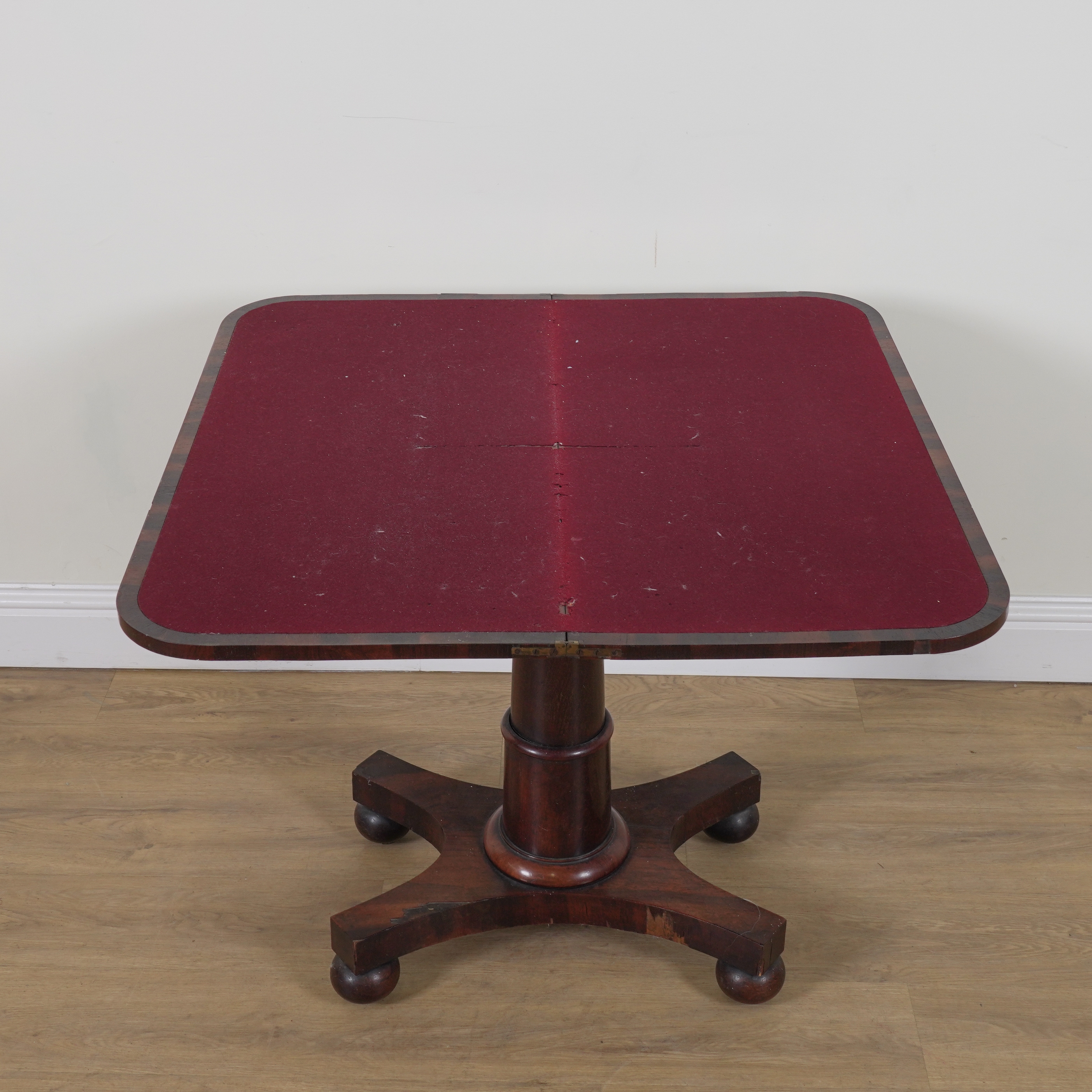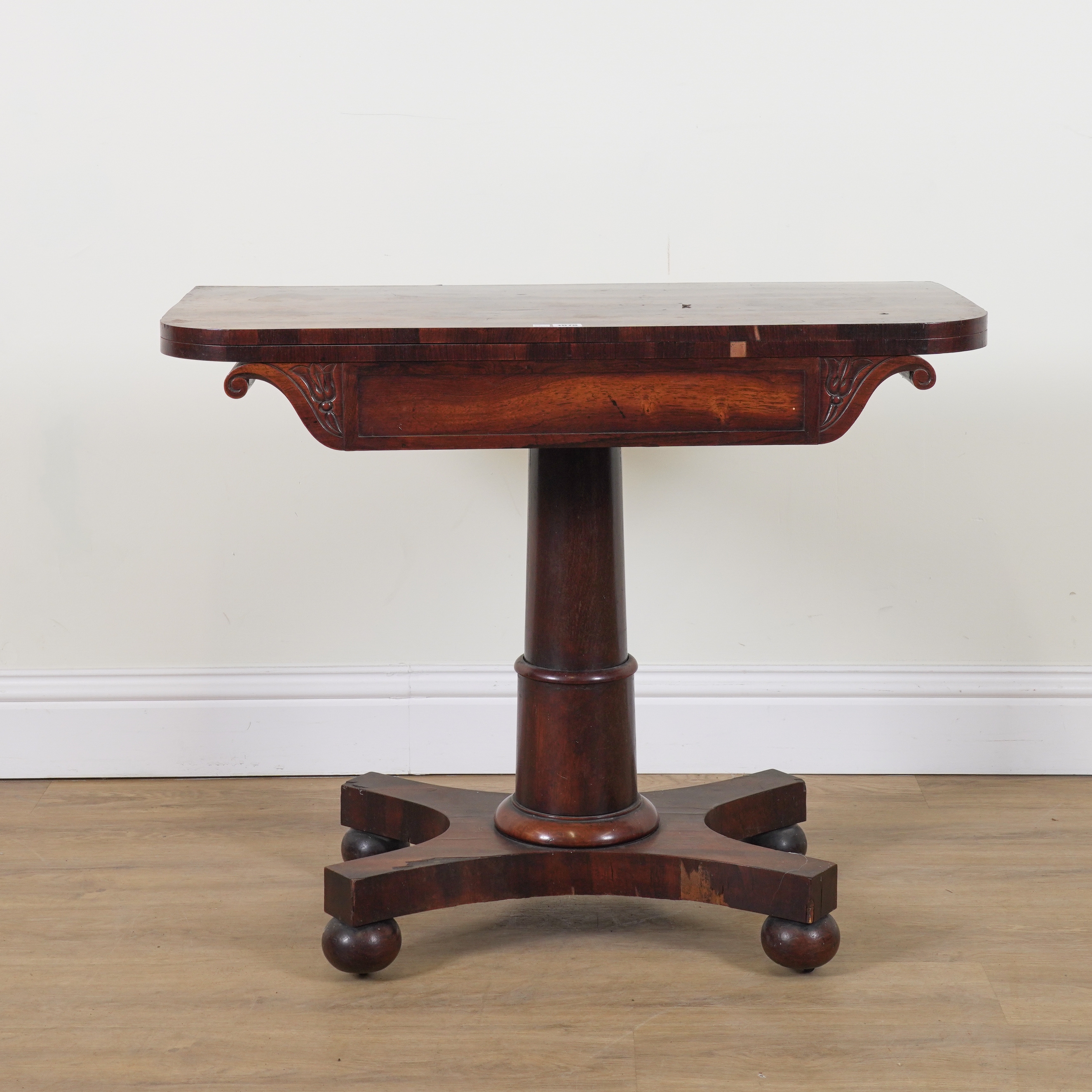 With turned column on quatrefoil base, 92cm wide; 45cm deep; 74cm high
