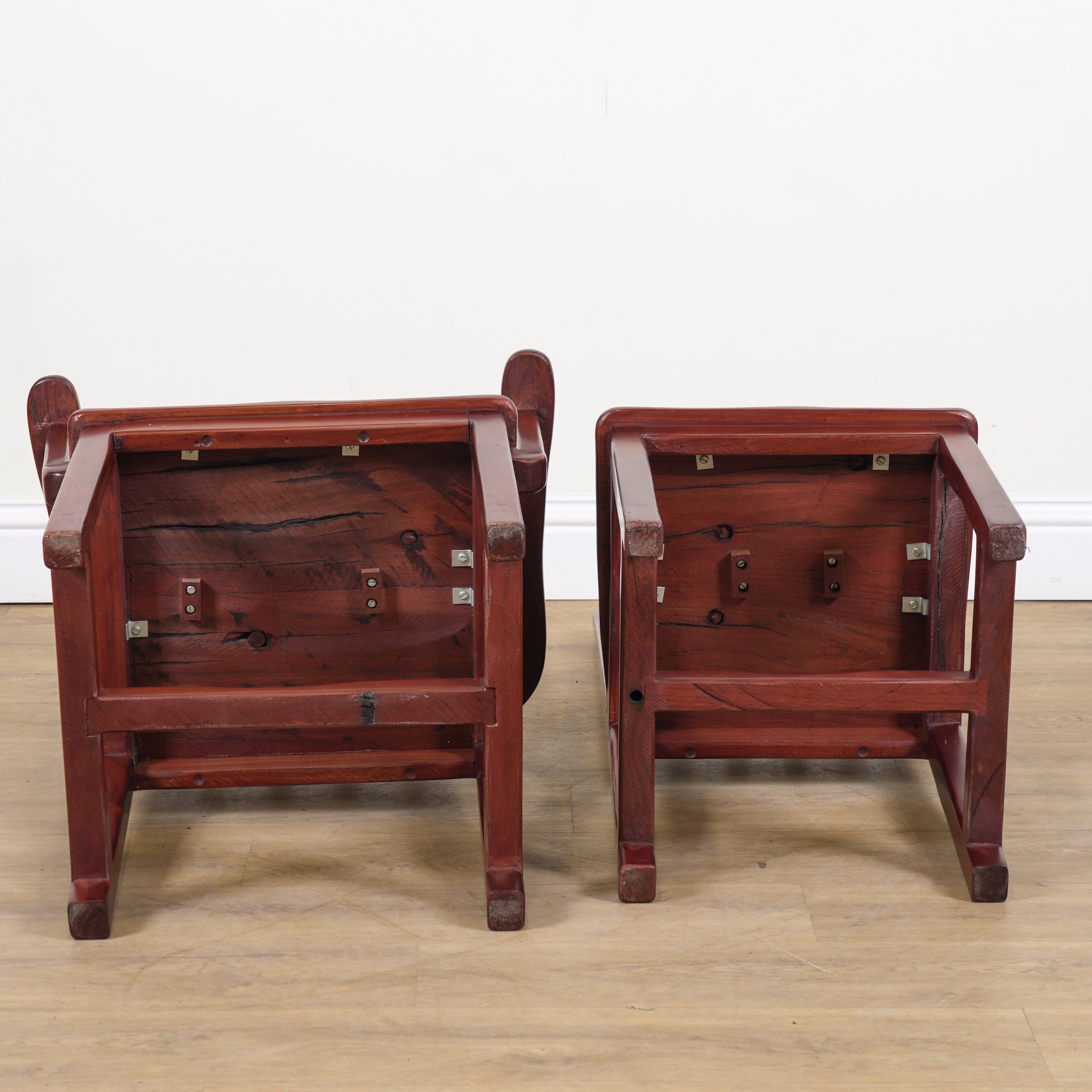 Constructed from reclaimed railway sleepers, to include a pair of carvers, 62cm wide; 112cm high