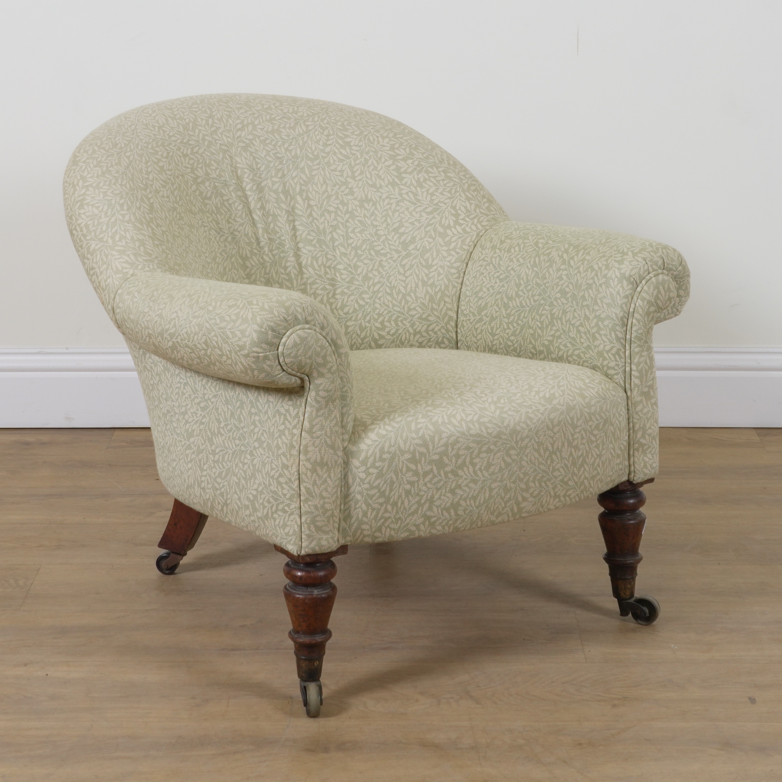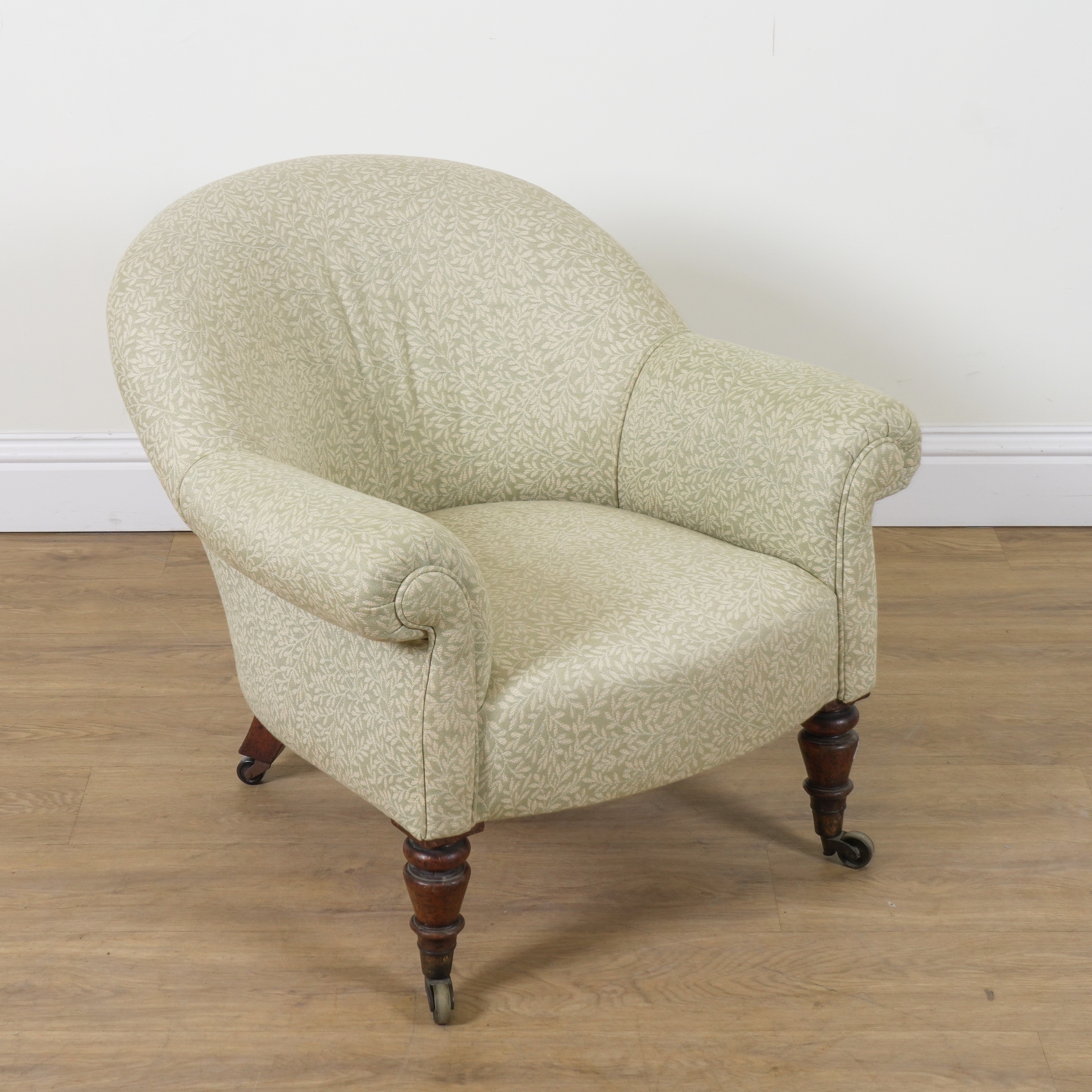 A 19TH CENTURY MAHOGANY FRAMED TUB ARMCHAIR