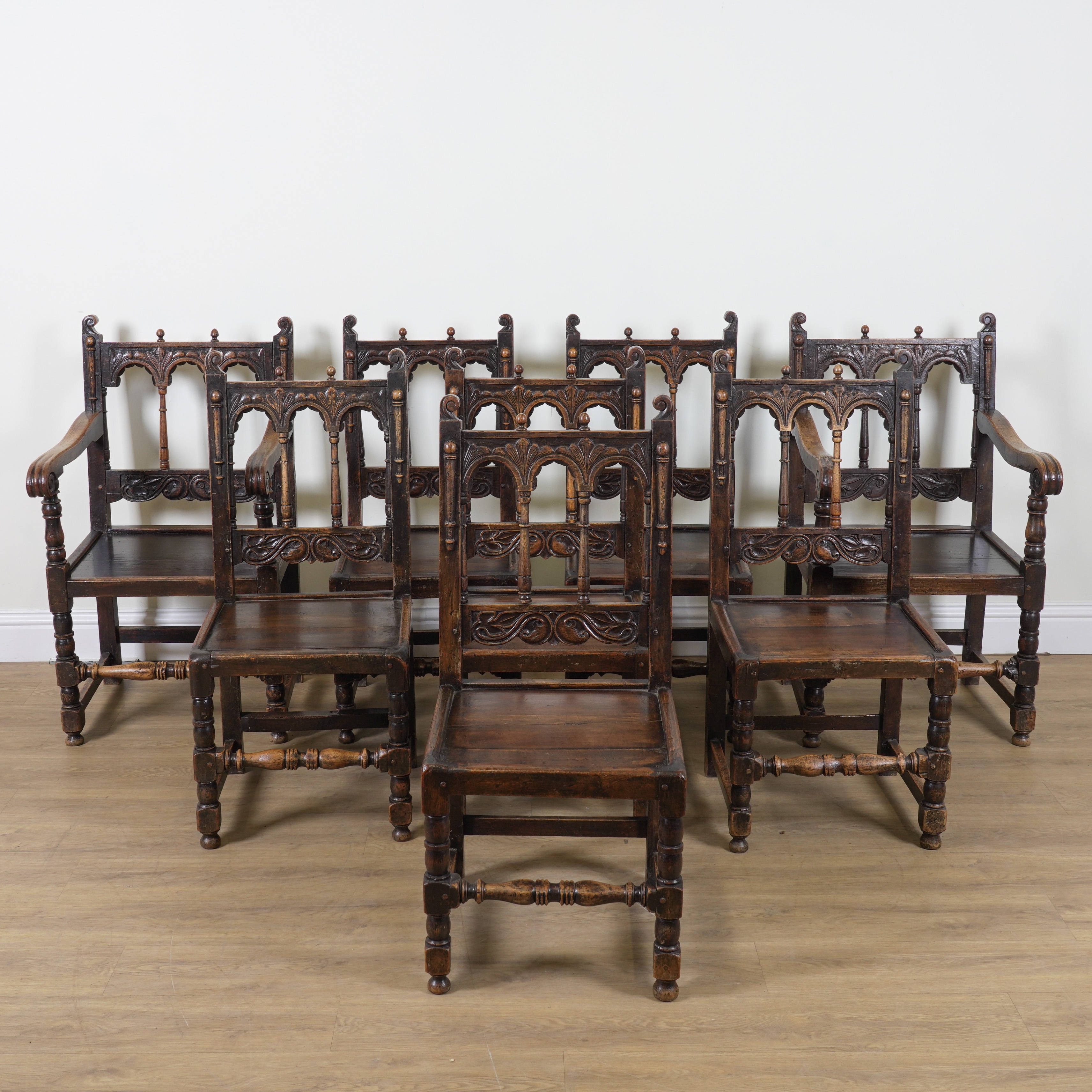 A SET OF EIGHT 17TH CENTURY STYLE OAK DINING CHAIRS (8)