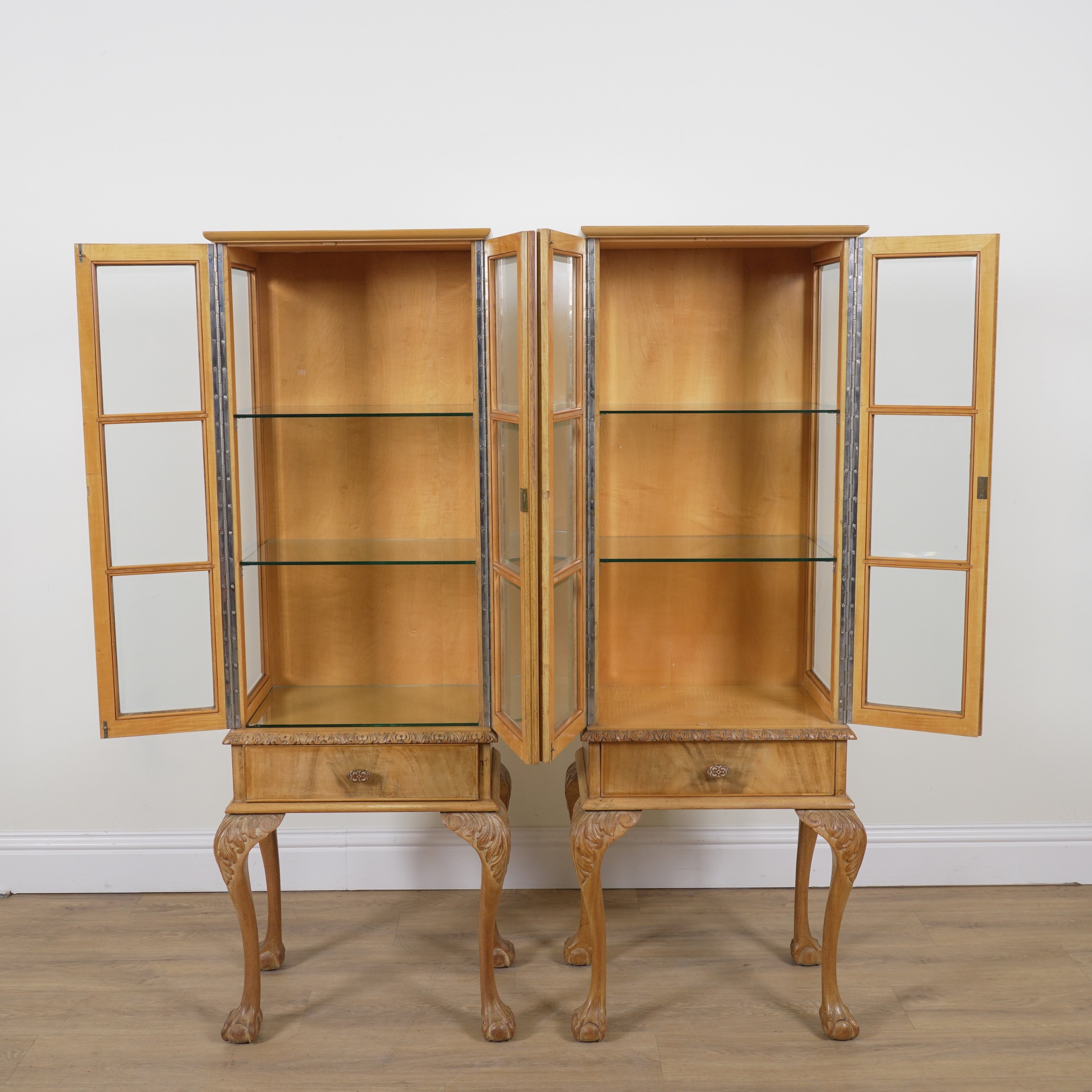 A PAIR OF VICTORIAN STYLE WALNUT DISPLAY CABINETS (2)