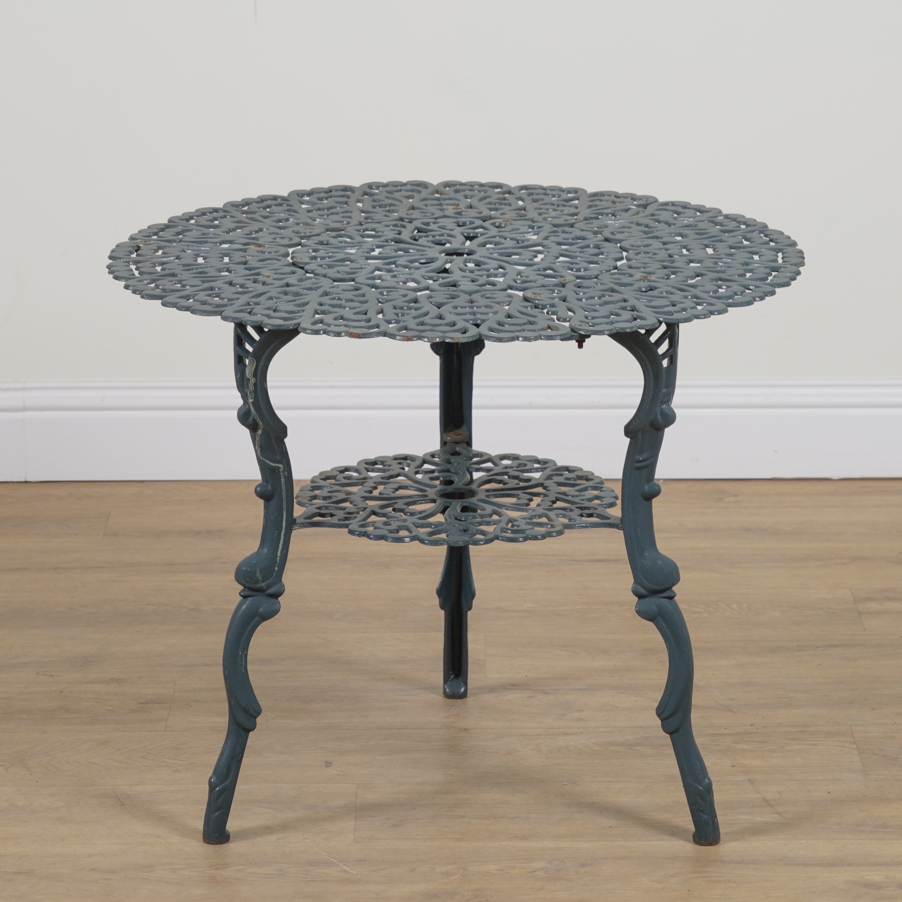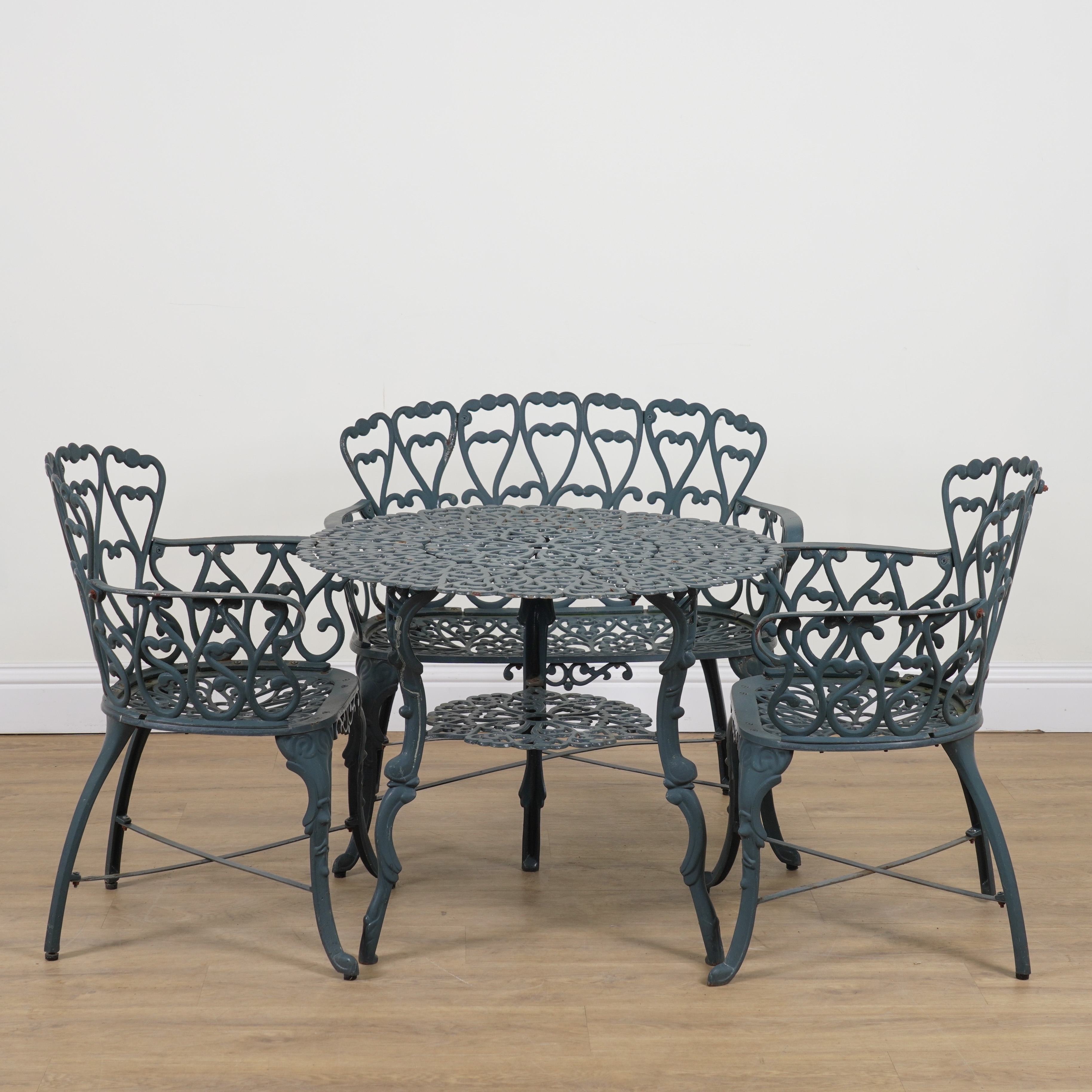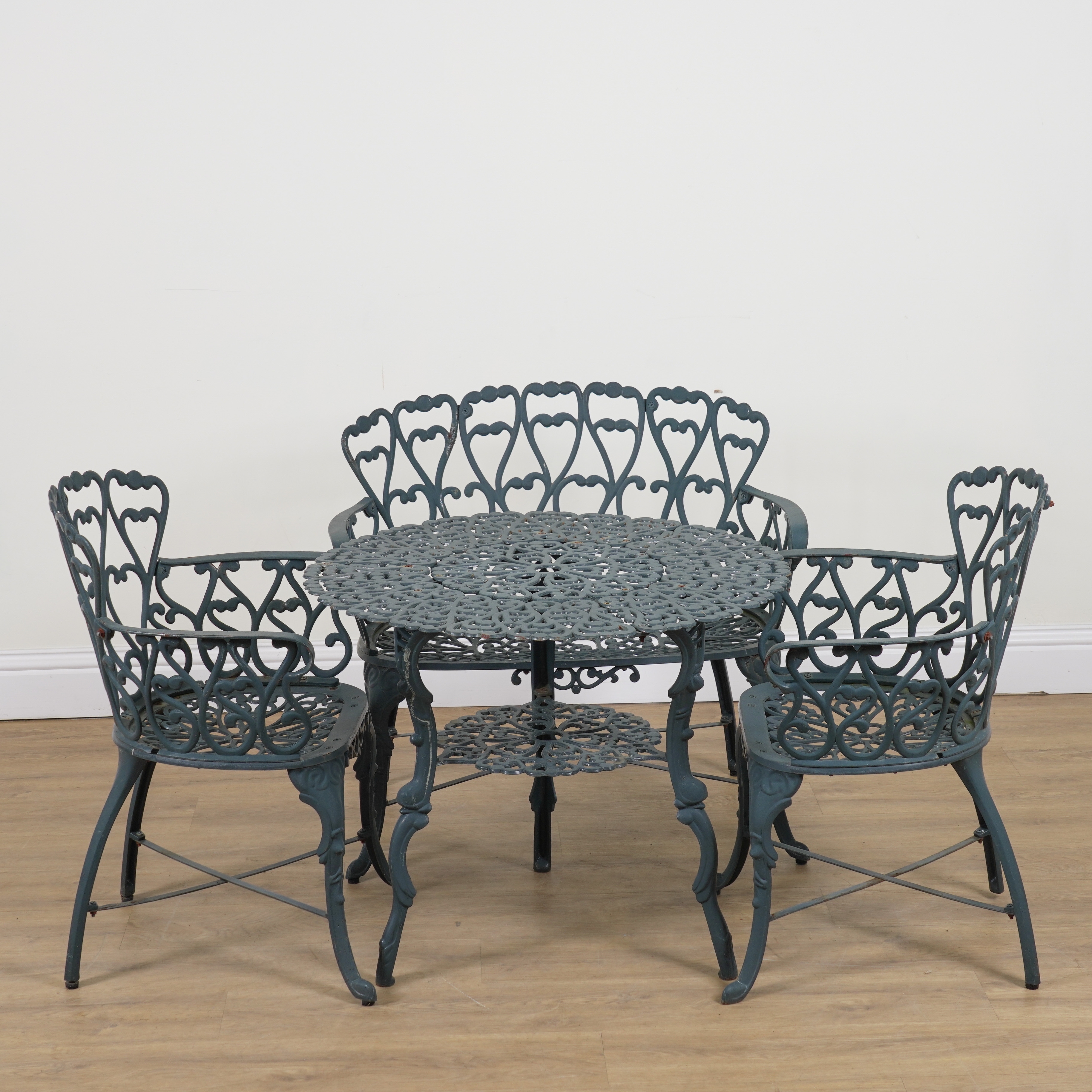 A SUITE OF GREEN PAINTED METAL GARDEN FURNITURE (4)