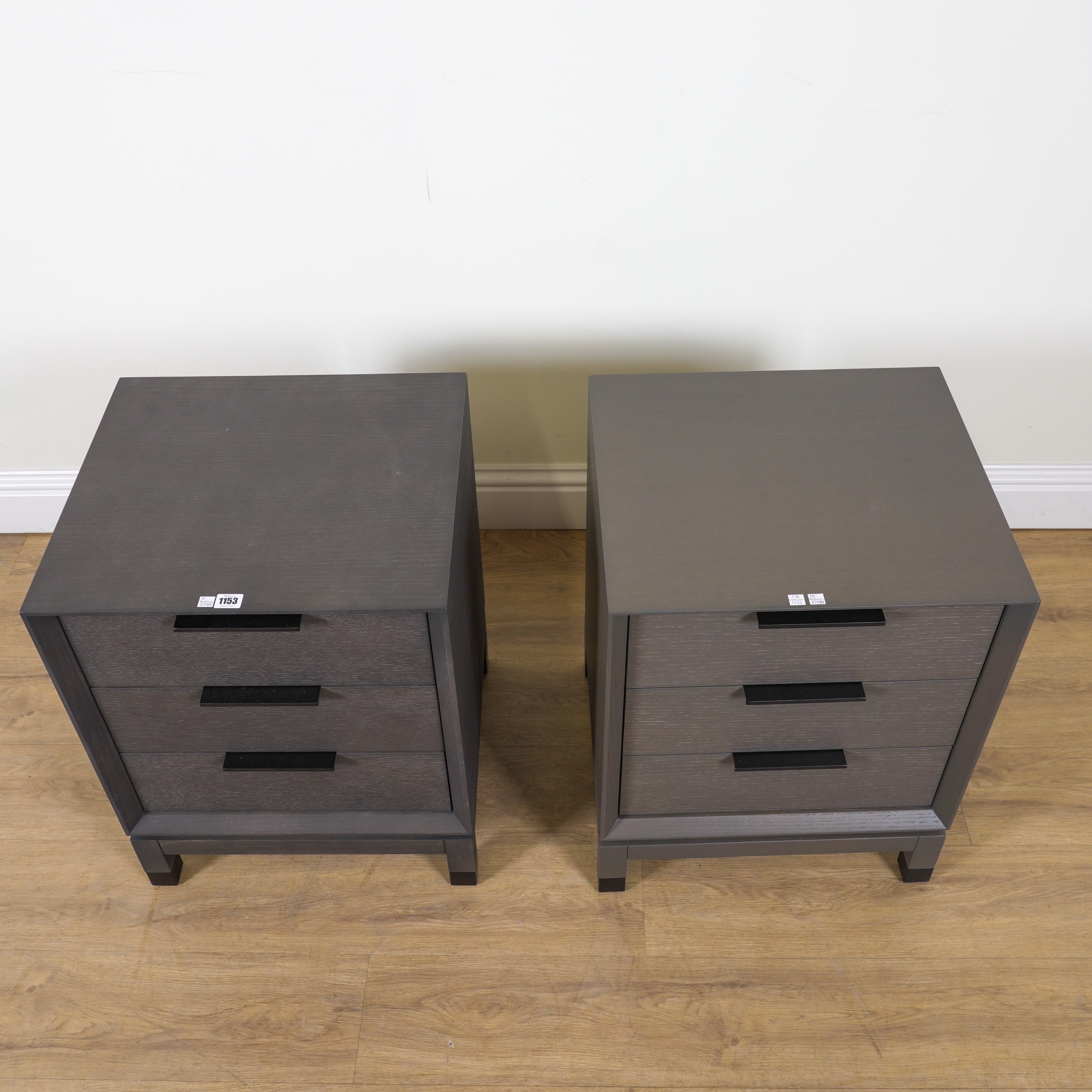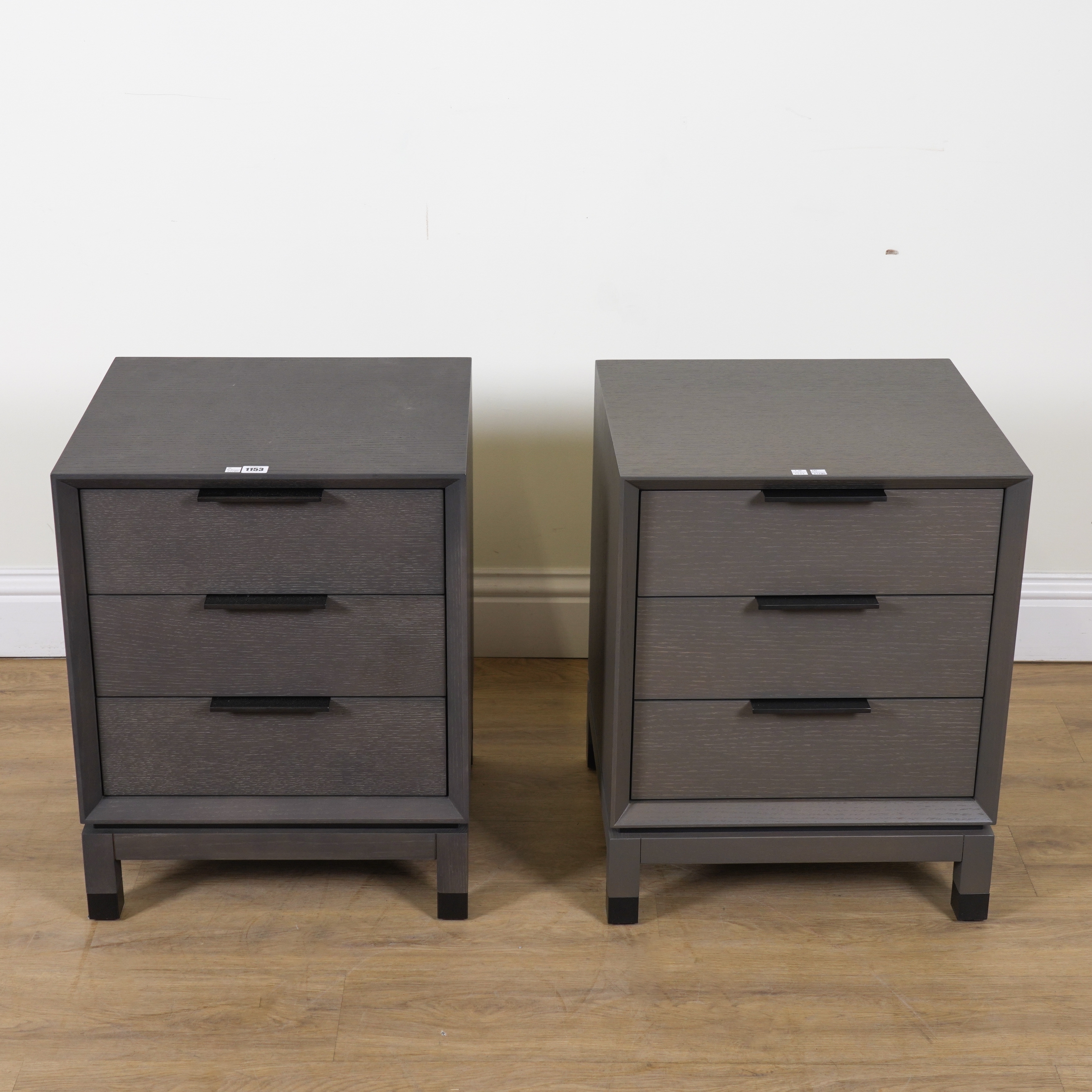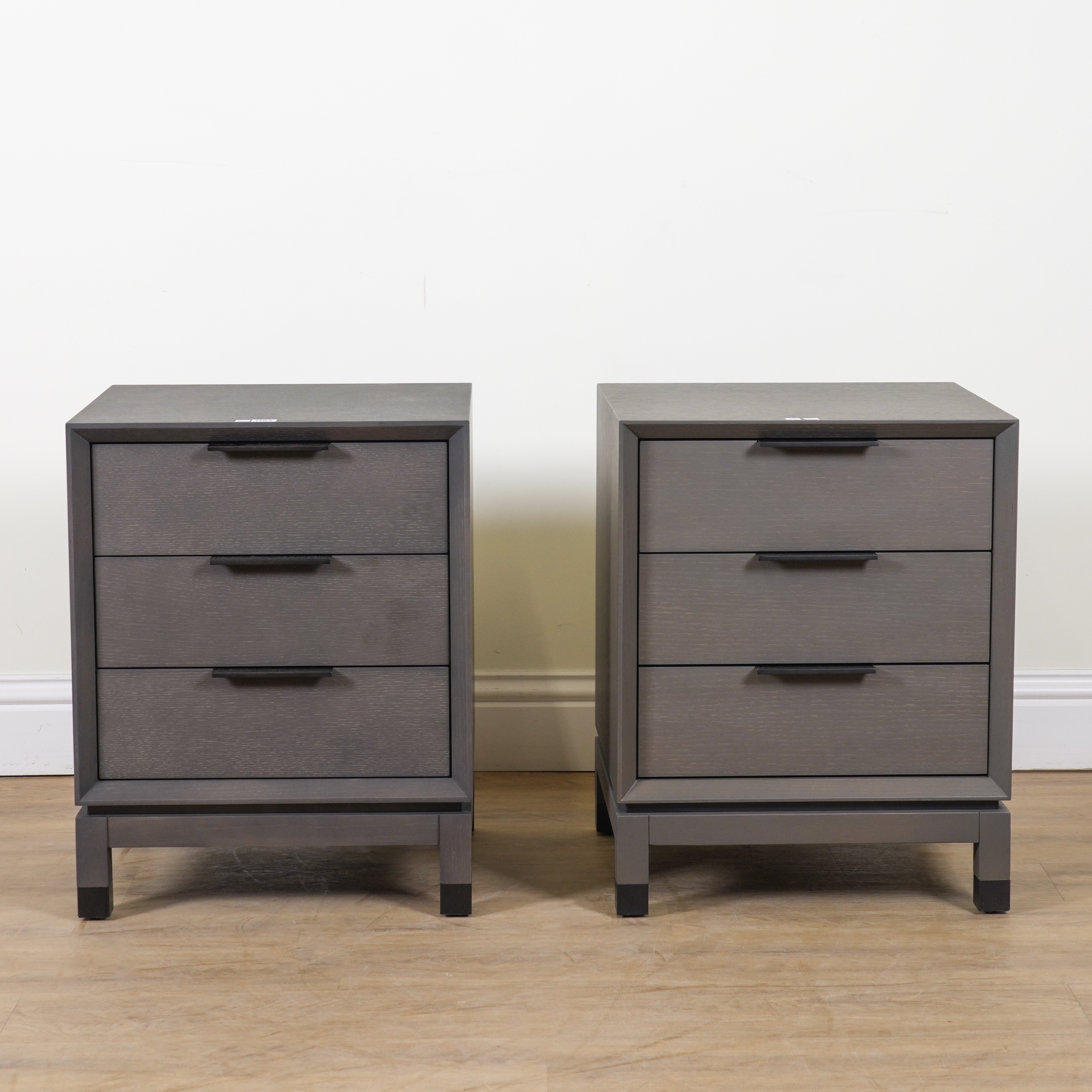 ROBERT LANGFORD, BAXTER 500; A PAIR OF GREY WASHED OAK THREE DRAWER BEDSIDE CHESTS (2)